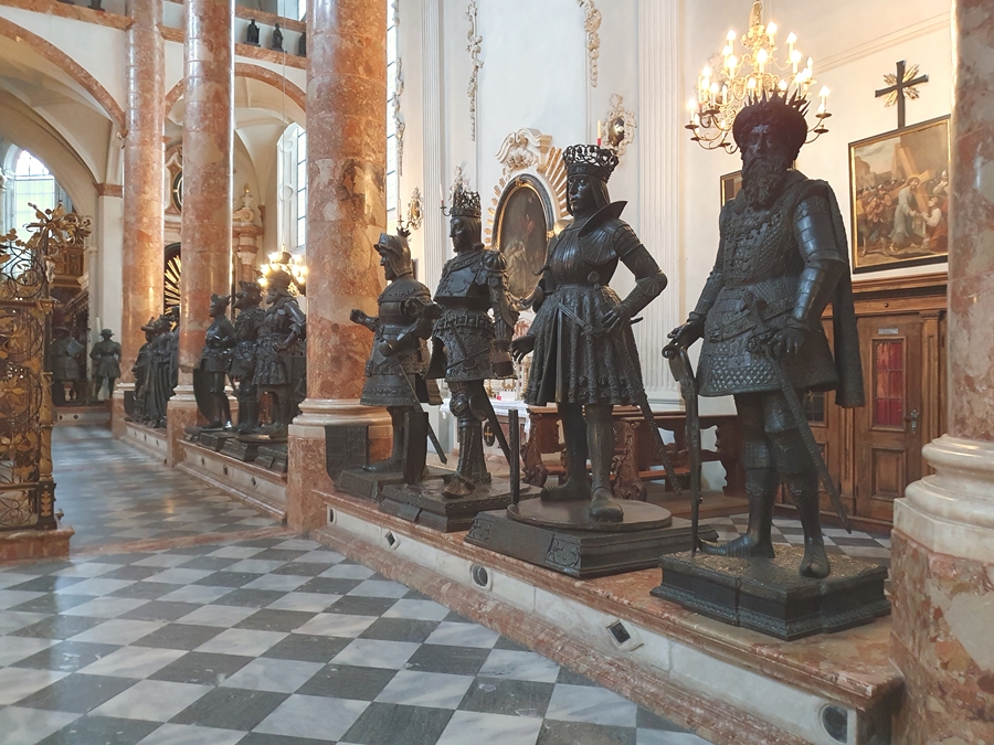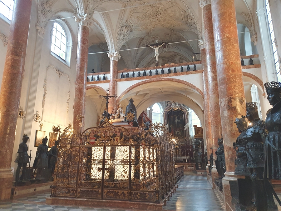In der Hofkirche wird das Grabmal von Kaiser Maximilian I von 28 überlebensgroßen Bronzestatuen, den „Schwarzen Mandern“ umgeben. Die prunkvollen Gitter, Steinreliefs, der Fürstenchor und die mehr als 450 Jahre alte Ebert-Orgel macht die Hofkirche zu einem besonderen Juwel.