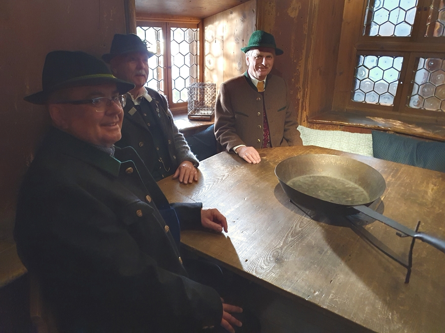Ein Treffen mit Alexander Schatz, Landesverbandsobmann vom Tiroler Landestrachtenverband ergab sich aus ebenso, wie zwischendurch eine Kaffeepause. Zu einer solchen lud Alex die bayerischen Gäste ein.