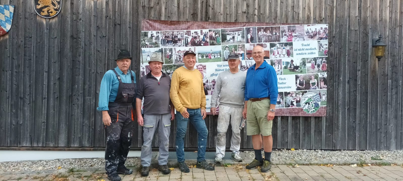 Tageweise sind dem Aufruf des Landesvorsitzenden zehn fleißige, ehrenamtliche Helfer gefolgt (allesamt rüstige Rentner!) und haben neben dem Augustinerstadl auch den Sockelbereich des Bildungshauses und Teile des Depots einen neuen Anstrich gegeben. Zwei Helfer mussten aufgrund des Wetters absagen.