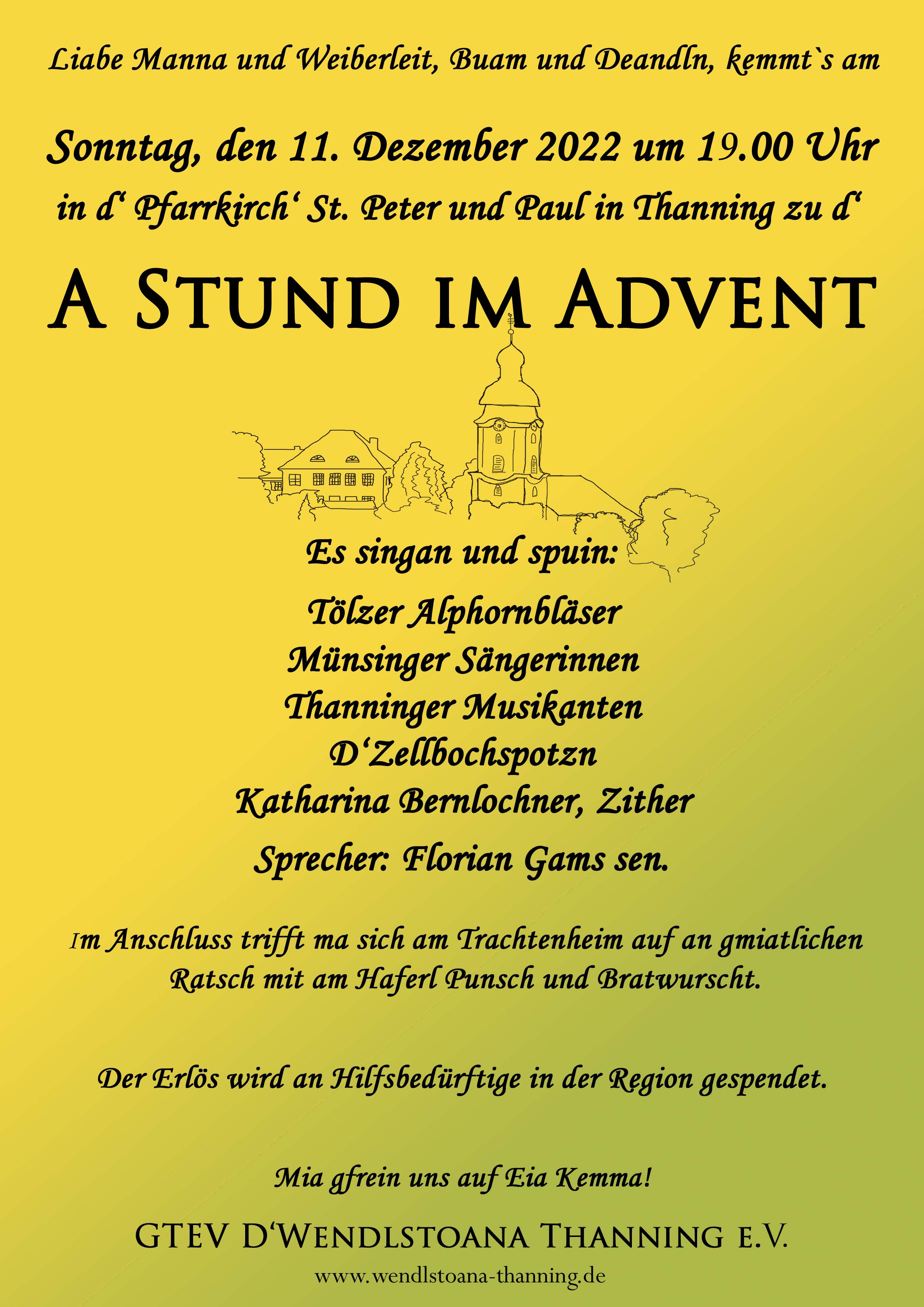 Am 03.12.22 findet in der Lengmooser St. Ägidiuskirche ab 19.30 ein Adventsingen statt. Organisiert hat es wie jedes Jahr Margit Berger, Musikwartin des GTEV Allmannsau-Lengmoos (Gauverband I).