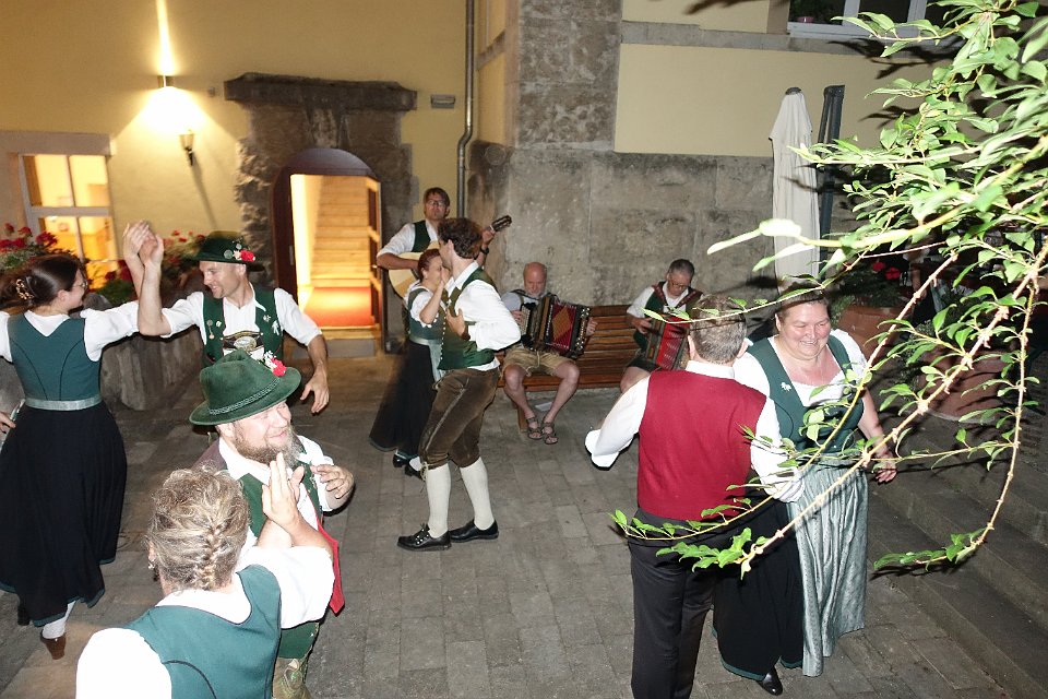 Unermüdlich wurde bis in die späten Abendstunden getanzt, sich unterhalten und Musik gespielt. Dass es mit der Zeit dunkel wurde, tat dem keinen Abbruch. Doch auch der schönste Abend mit Wiedersehens- und Lebensfreude musste auch einmal zu Ende gehen, um am nächsten Tag bei der Stadtrundfahrt mit dem City-Train oder bei dem Stadtrundgang mit Führung durch Dieter Müller, mit dabei sein zu können.