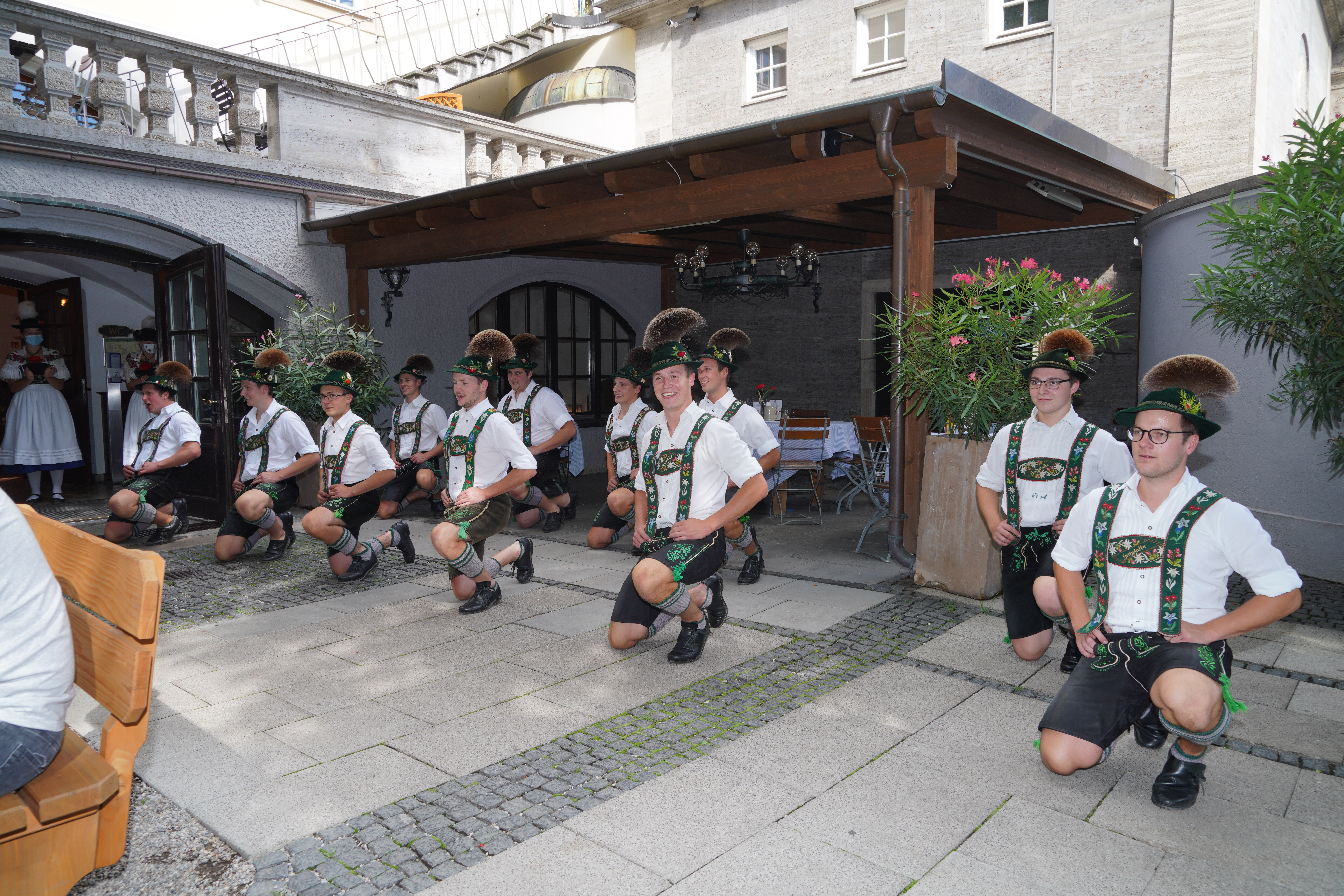 Bei schönstem Wetter machten sich am Freitag, den 4. September die Aktivplattler und Alphornbläser des Trachtenvereins „Hochplatte“ Buching zusammen mit einer Tanzlmusik auf den Weg in die Landeshauptstadt. Zusammen durften sie im Rahmen des Projektes "Sommer in der Stadt" im Biergarten des Löwenbräukeller den Nachmittag gestalten.