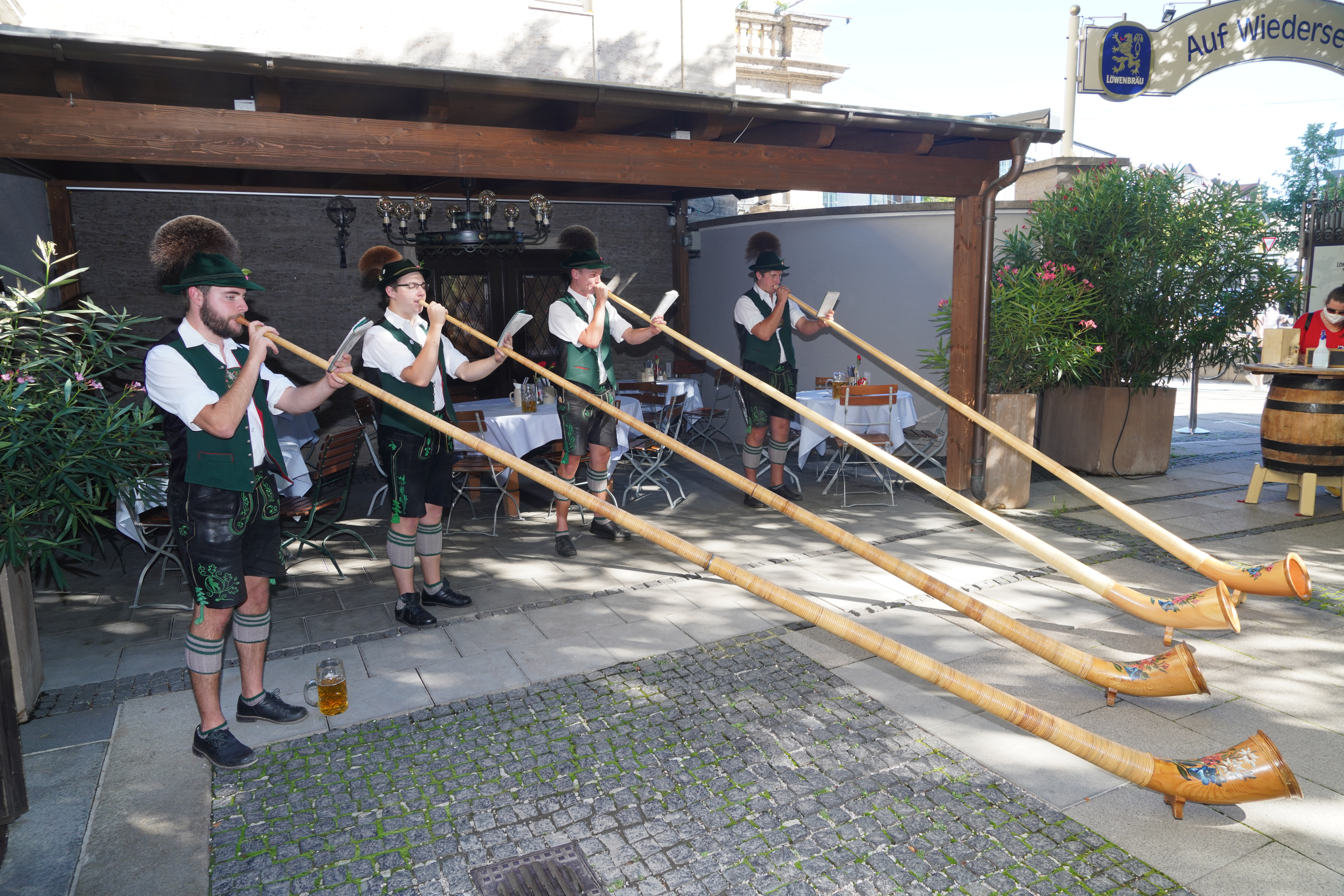 Auch ein Stück bayrische Heimat wurde den Zuschauern im Biergarten mitten in der Großstadt durch Alphornklänge vermittelt.