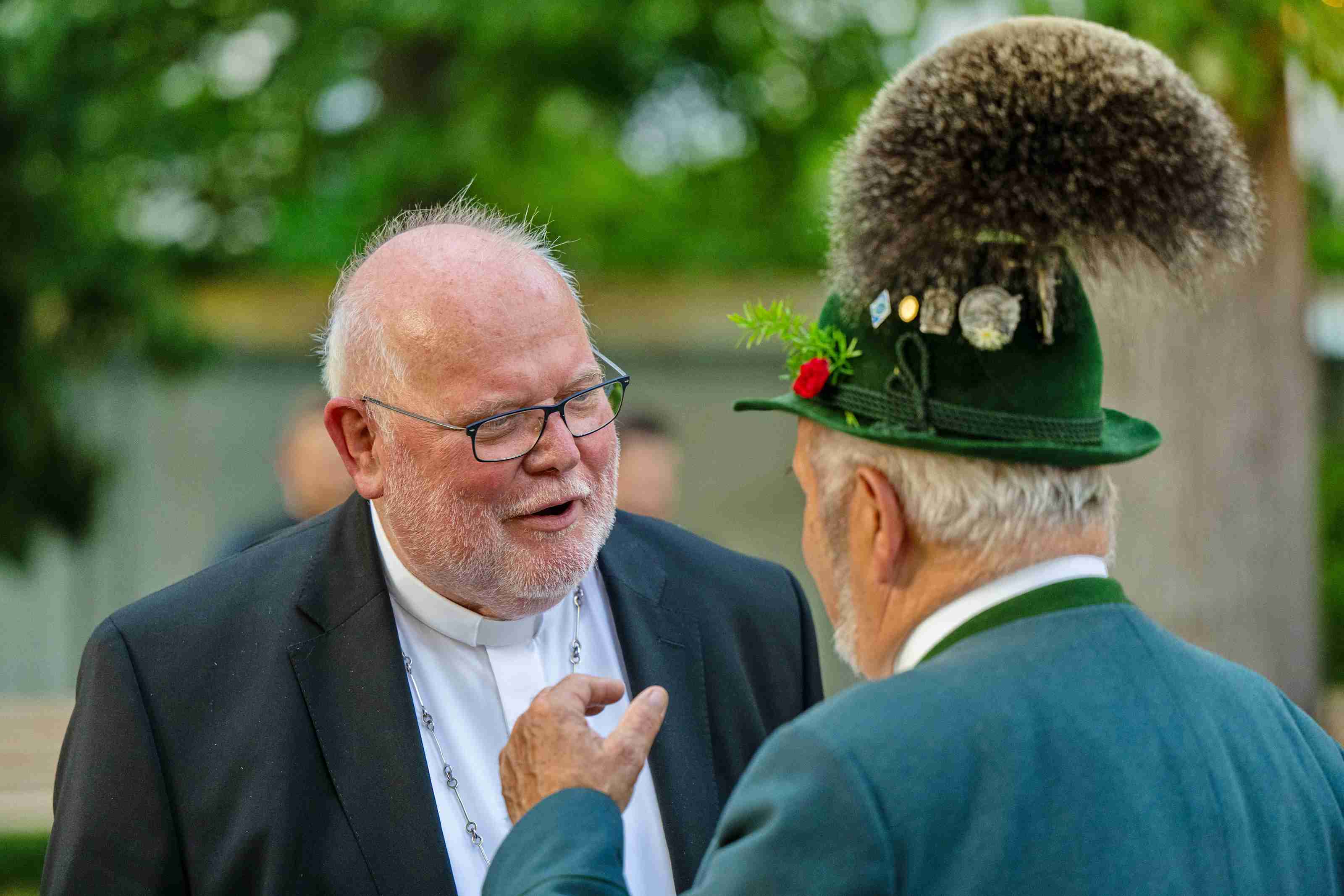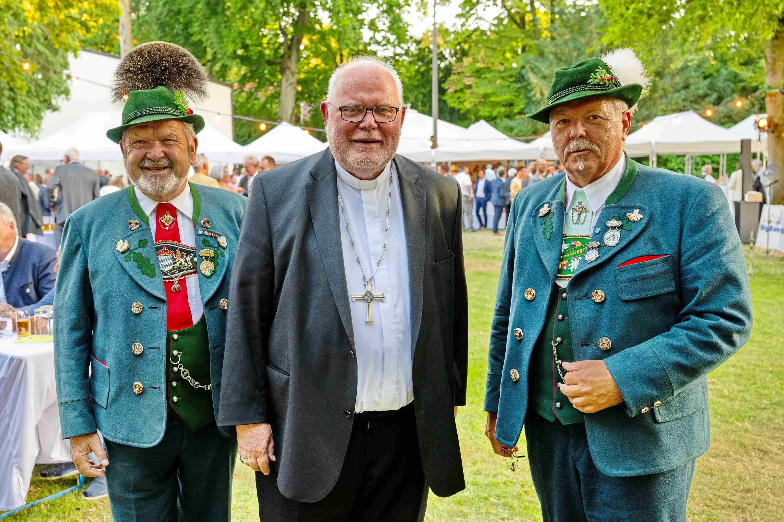 Kirche, Glauben, Tracht und Brauchtum gehören nicht nur zusammen, sie brauchen auch einander, um im Alltag und bei all den gesellschaftlichen Aufgaben bestehen zu können - dies bekräftigten einmal mehr bei einem Sommerempfang im Park von Schloss Suresnes bei der Katholischen Akademie in München der gastgebende Kardinal Reinhard Marx gegenüber Günter Frey und Max Bertl, den Landesvorsitzenden und Ehrenvorsitzenden des Bayerischen Trachtenverbandes.