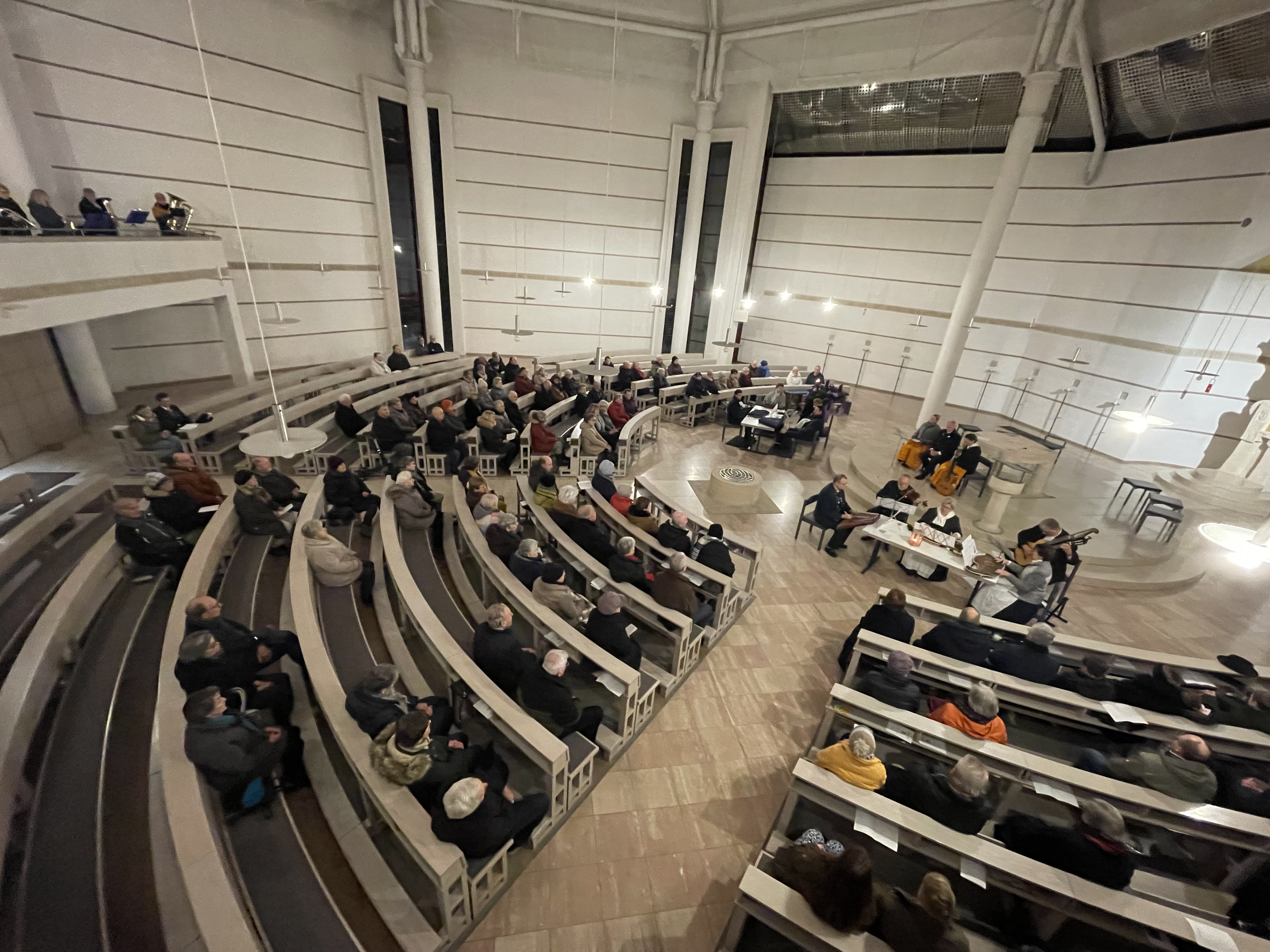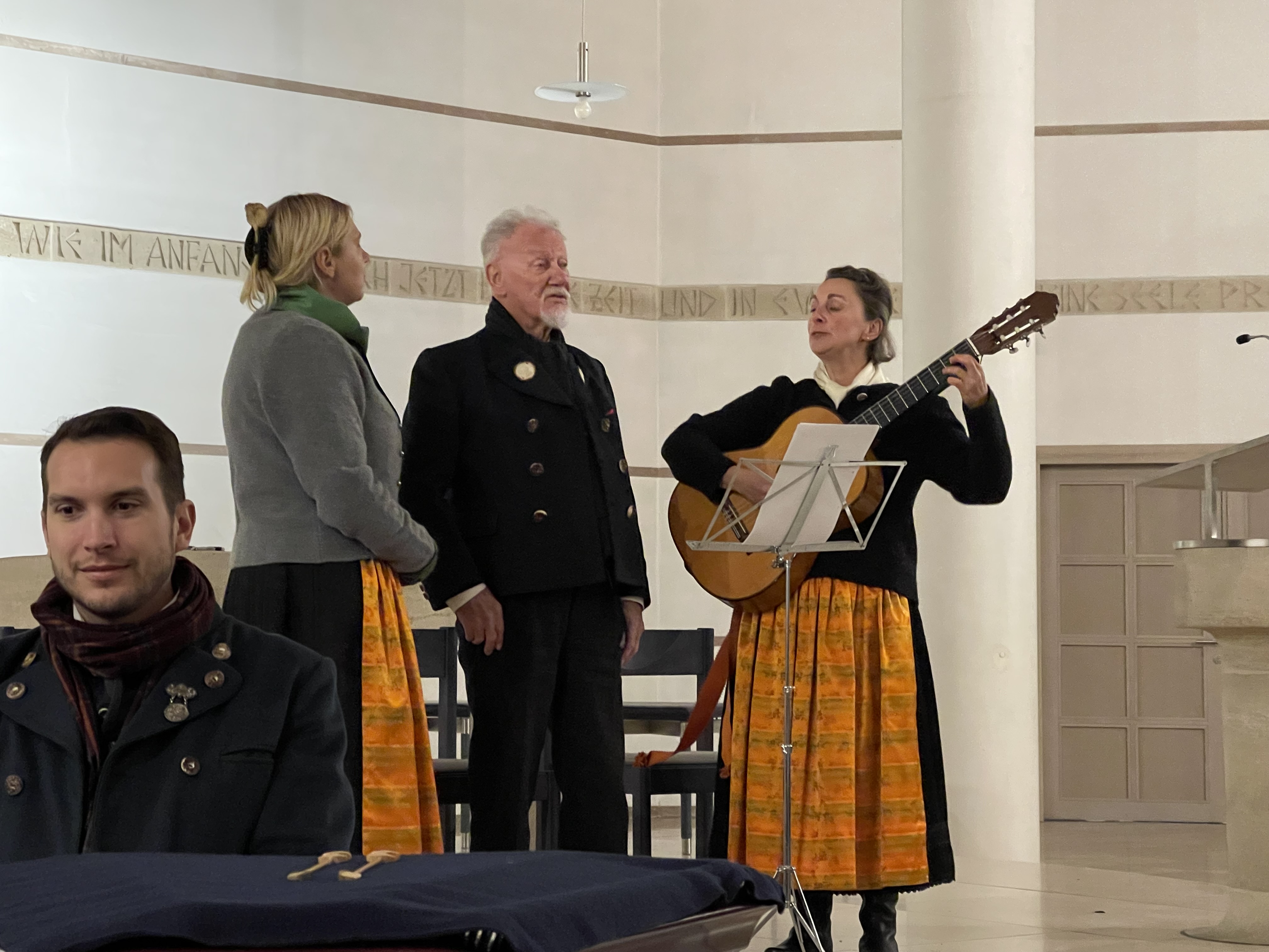 Ein besonderer Genuss waren die gefühlvoll gesungenen Lieder des Christian Dreig’sang. Die Geschichten von Herrn Diakon Dr. Esch rundeten das knapp neunzig-minütige Programm ab. Nach dem Segen und einem gemeinsamen „Vaterunser“ sangen alle „Tochter Zion“.
