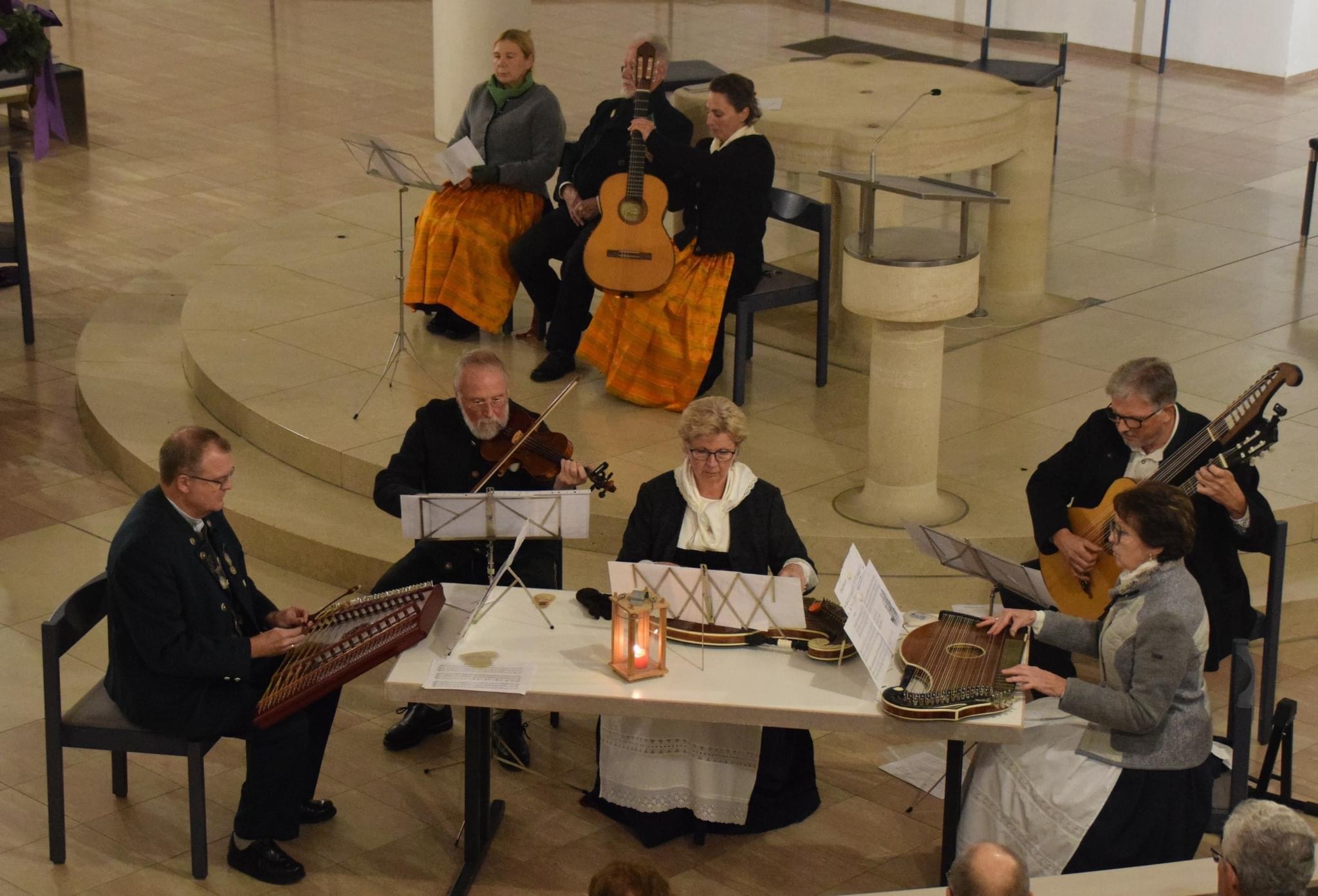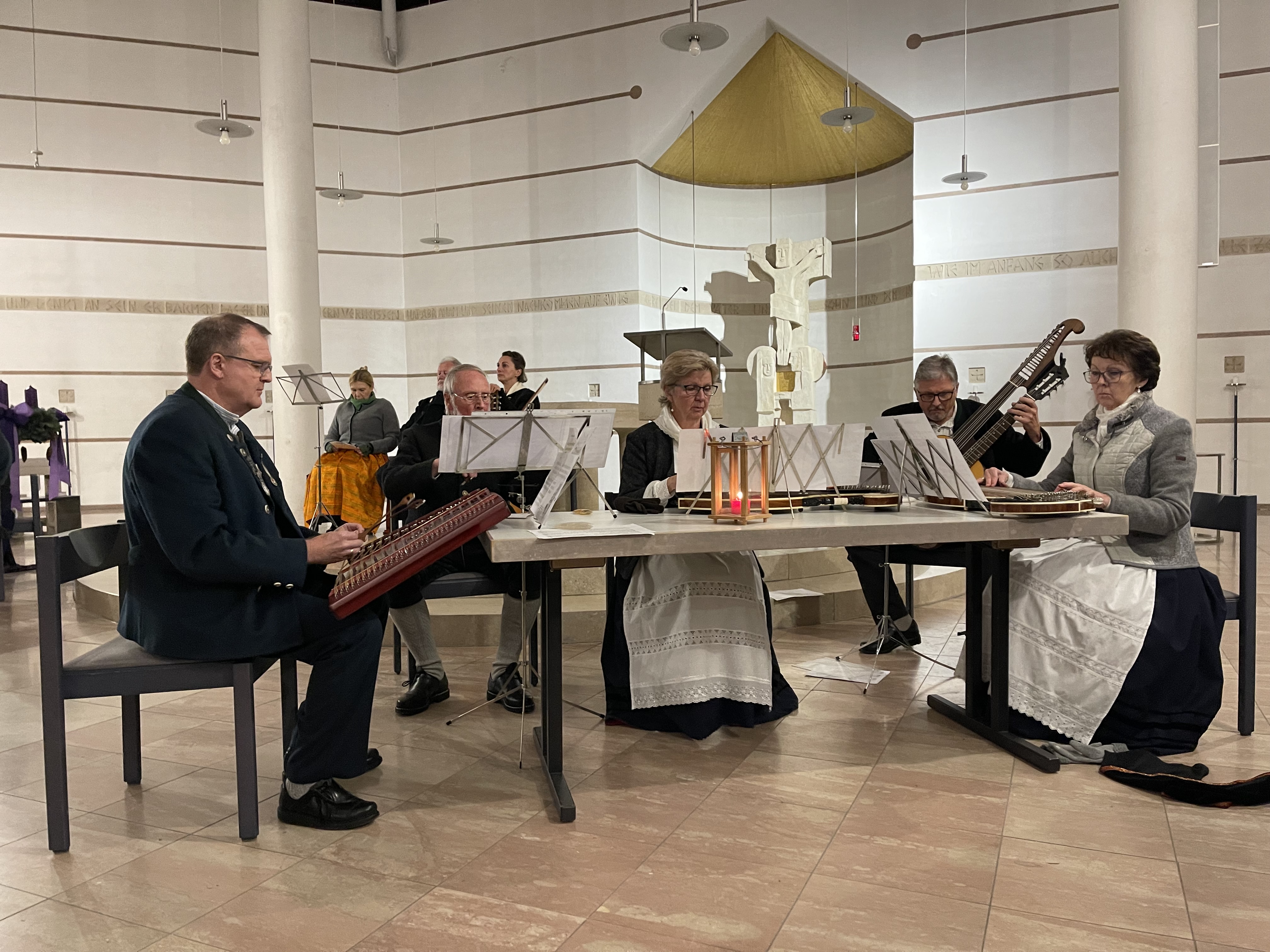 Mit ruhigen Menuetten und Weisen der Feichtecker Musi und der Volksmusikgruppe konnten die Zuhörer zur Ruhe kommen. Neben den Gruppen des Vereins waren der Kirchenchor St. Ulrich und die Bläser des Blasorchesters Königsbrunn im Programm mit eingebunden.