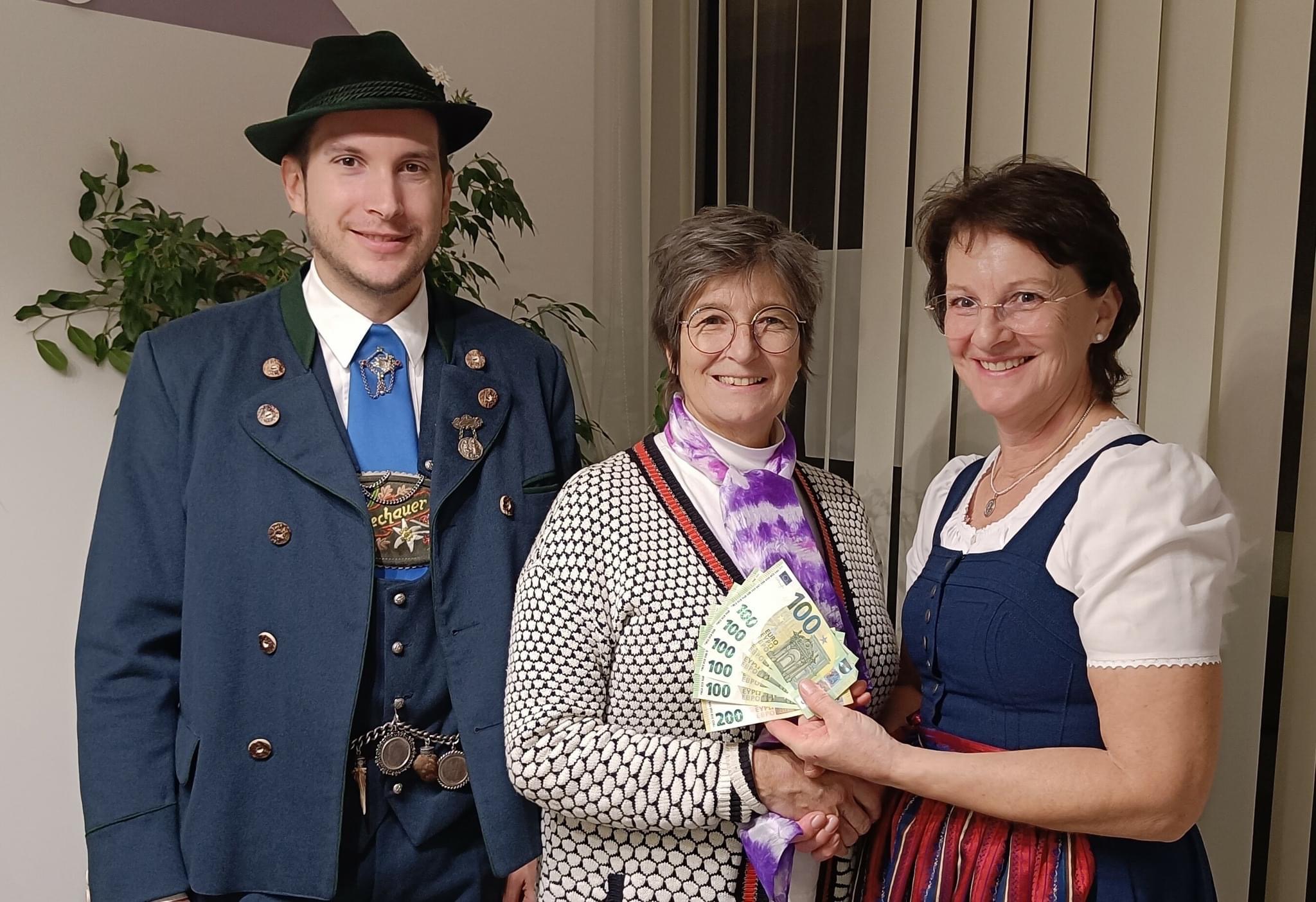 Mit großer Freude konnten Volksmusikwartin Gabriele Straßner und deren Sohn Daniel in diesem Jahr 700 € an Frau Dr. Sigrid Pforr, Vorsitzende des Hospizverein Christrose übergeben.