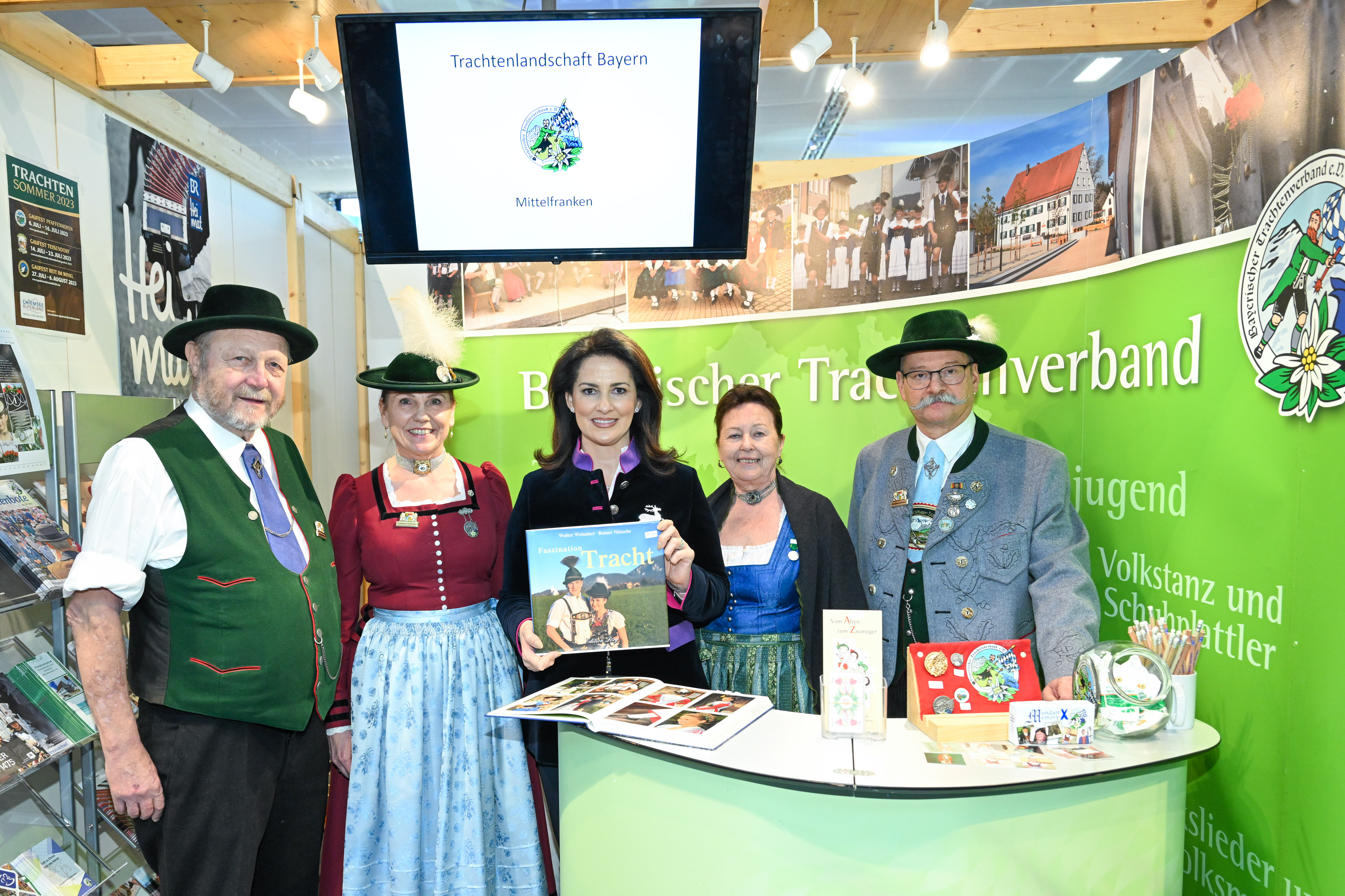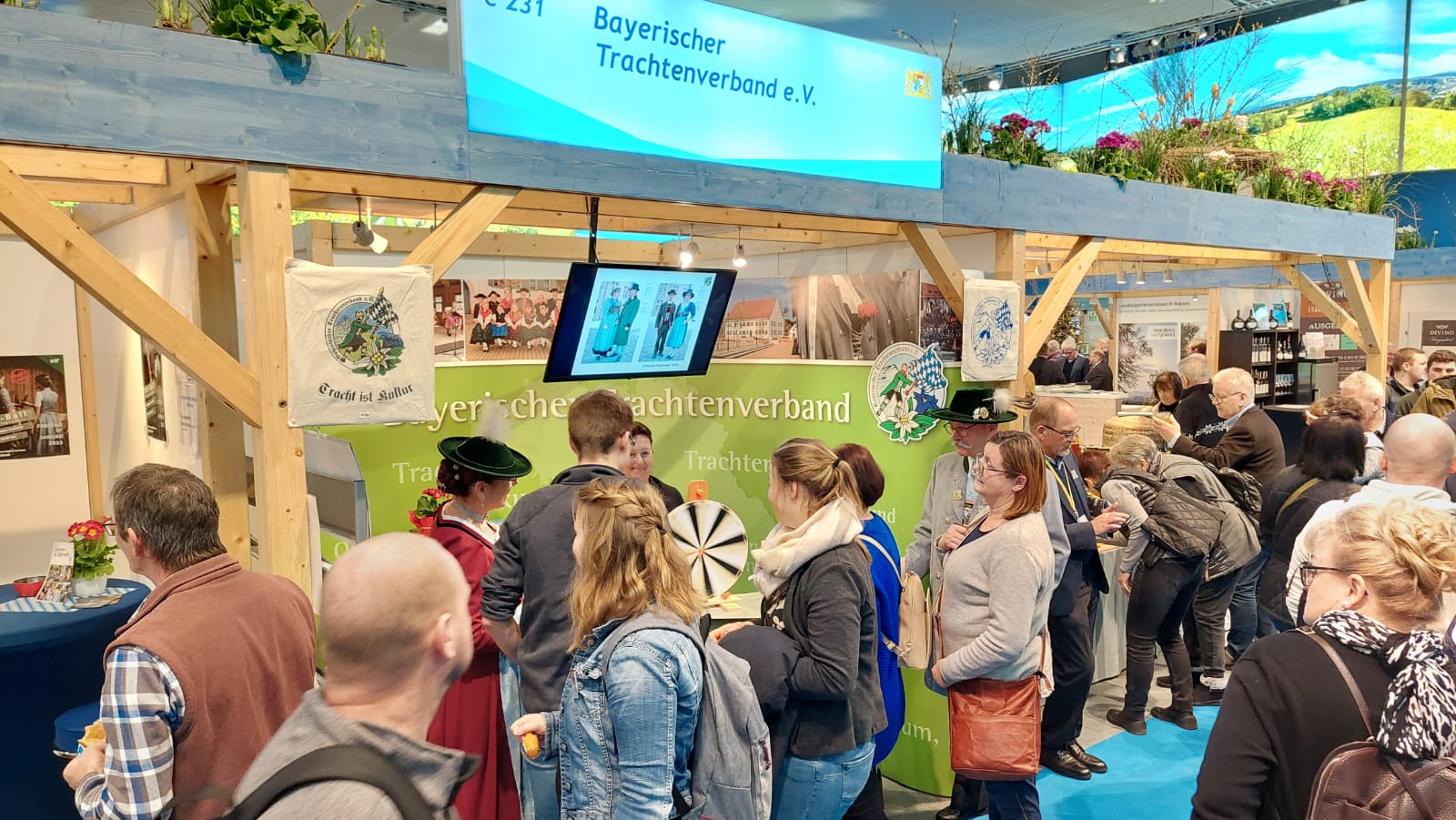 Am Stand C231 in der Bayernhalle (22B) holen sich Besucher Auskunft über Gau- und Bezirksfeste, kleineren oder größeren Ereignissen usw., Anschauungsmaterial in Form von Büchern oder DVD hilft weiter. Das Trachtenkulturzentrum Holzhausen mit dem neu gestalteten Museum wird ebenfalls beworben. Erstmals konnten heuer die Standbetreuer Annelies und Walter Weinzierl unter Mitwirkung der Ziacherin Hildegard Hoffmann Brandenburger Kindern bayerische Volkstänze lernen, welche diese dann im Biergarten der Bayernhalle unter großem Beifall der Besucher aufführten. Dieses Experiment wird 2024 wiederholt, eine Schulklasse hat sich bereits gemeldet. Die Standbesatzung aus den Reihen des Bayerischen Trachtenverbandes freut sich über guten Besuch!