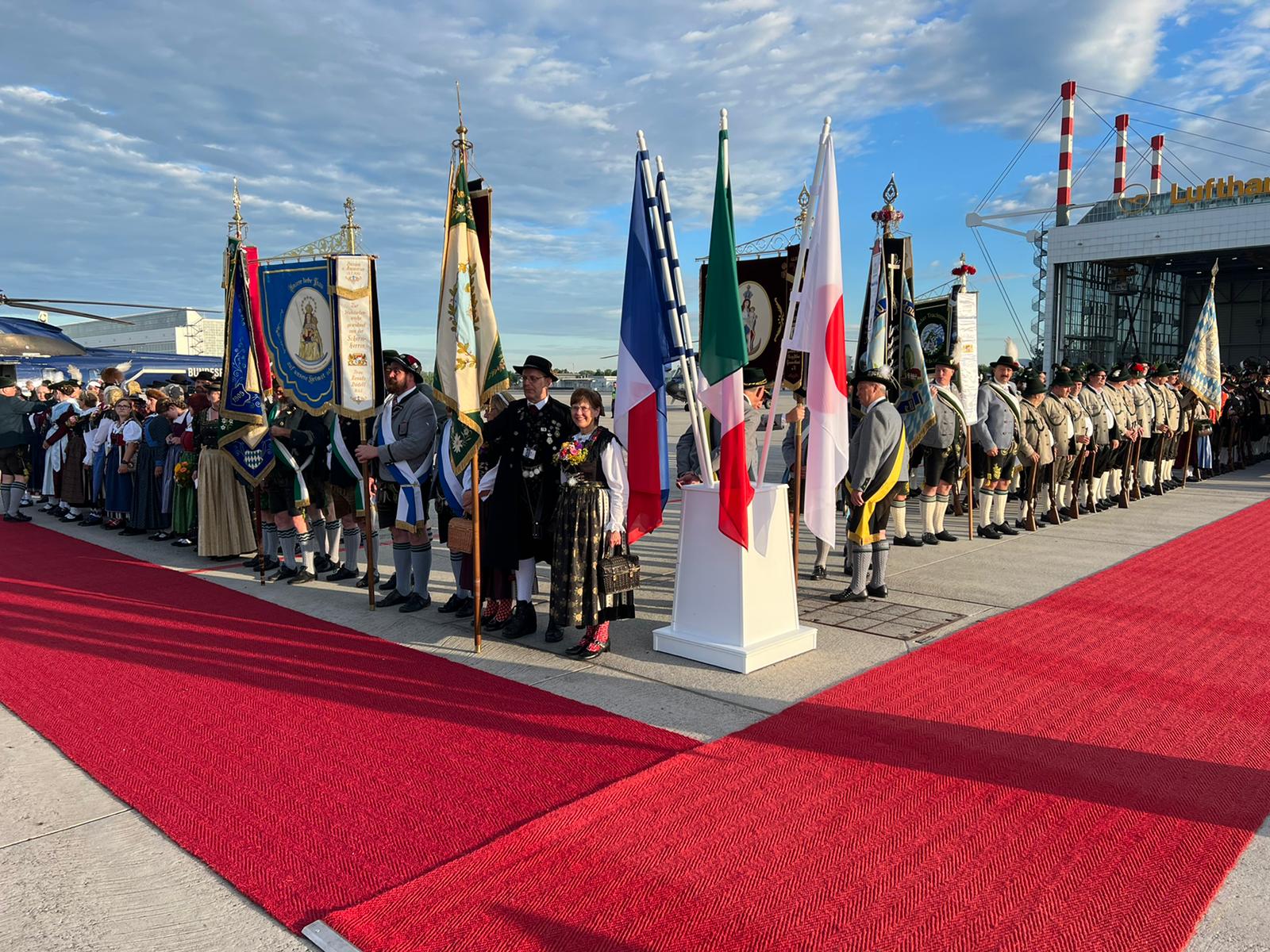 Mit Blasmusik, Trachtlern und Gebirgsschützen werden in diesen Tagen auf dem Münchner Flughafen die Staatsgäste aus aller Welt empfangen, die für den Gipfel "G 7" anreisen - davon dieser Bilderbogen vom Sonntagmorgen.