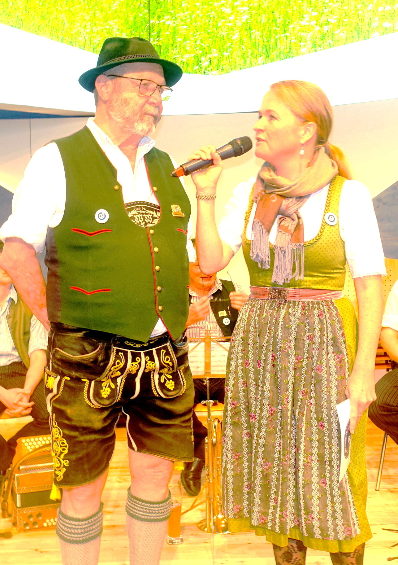 Auch Landesvorsitzender Günter Frey machte sich im Rahmen einer Auftritts- und Ausflugsfahrt des Trachtenvereins Sulzschneid im Oberen Lechgau ein Bild vor Ort und resümierte: „Blasmusik und Trachten, gerade in der Vielfalt Bayerns und aus all unseren 22 Gauverbänden werden von den Berlinern und Messebesuchern hoch geschätzt. Mit all den Aktivitäten tragen wir dazu bei, dass weitere Sympathien für das Urlaubsland Bayern entstehen“. Erfreulich ist es auch für Landesschriftführerin Hildegard Hoffmann und Landesehrenkassier Walter Weinzierl, die zusammen mit ihren Ehepartnern Christian und Anneliese den Informationsstand betreuen, dass die Messebesucher nicht nur gerne Musik hören und Trachten anschauen, sondern dass sie auch viel über den Bayerischen Trachtenverband wissen wollen. So gibt es zahlreiche Unterlagen am Stand zu den heurigen Trachtenfesten in Bayern, zum Trachtenkulturzentrum im niederbayerischen Holzhausen sowie zu Bildbänden und Publikationen. Bei einigen Bühnen-Interviews auf der Bühne im Bayernhallen-Biergarten konnte Walter Weinzierl mit der Moderatorin Regina Wallner aus Prien auf die Größe und Besonderheiten des Bayerischen Trachtenverbandes mit seinen 751 in ihm zusammengeschlossenen Trachten- und Heimatvereinen aufmerksam machen. Für eine weitere Aufmerksamkeit sorgte der Trachtler Peter Mock mit geschickt-geschnitzten Edelweiß aus Zirbenholz.