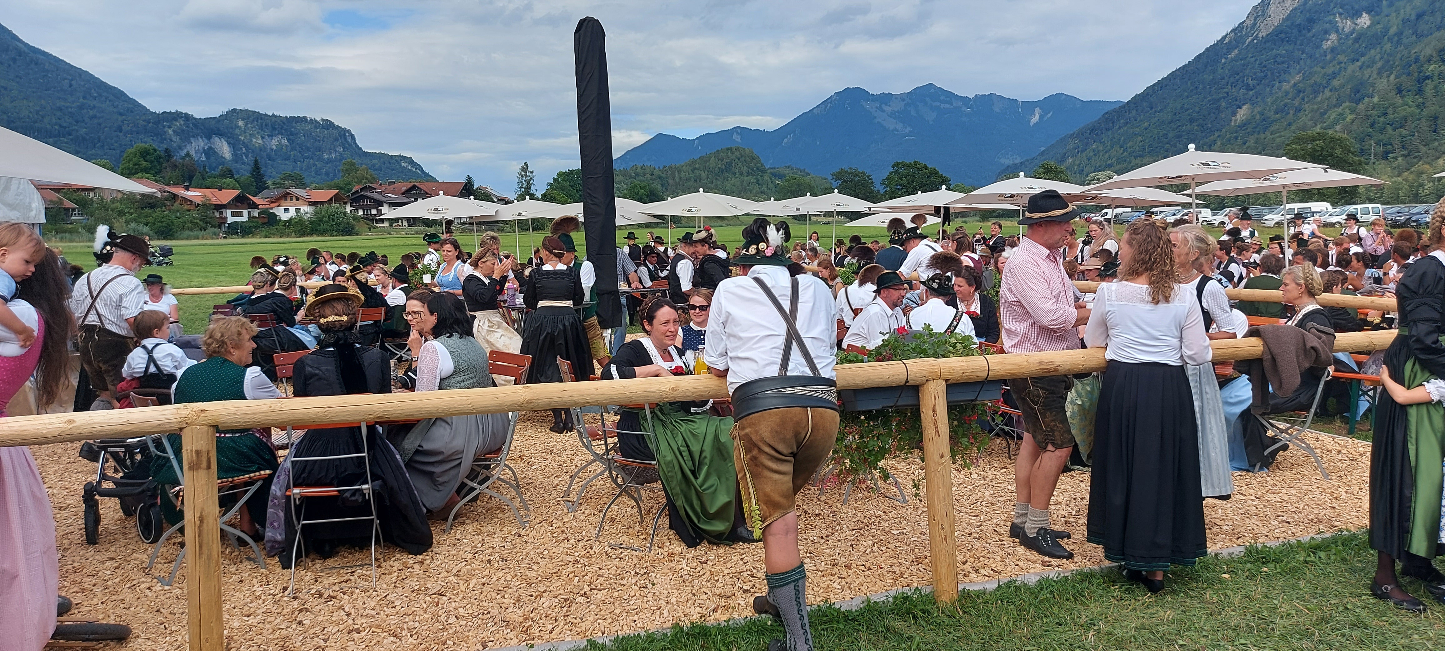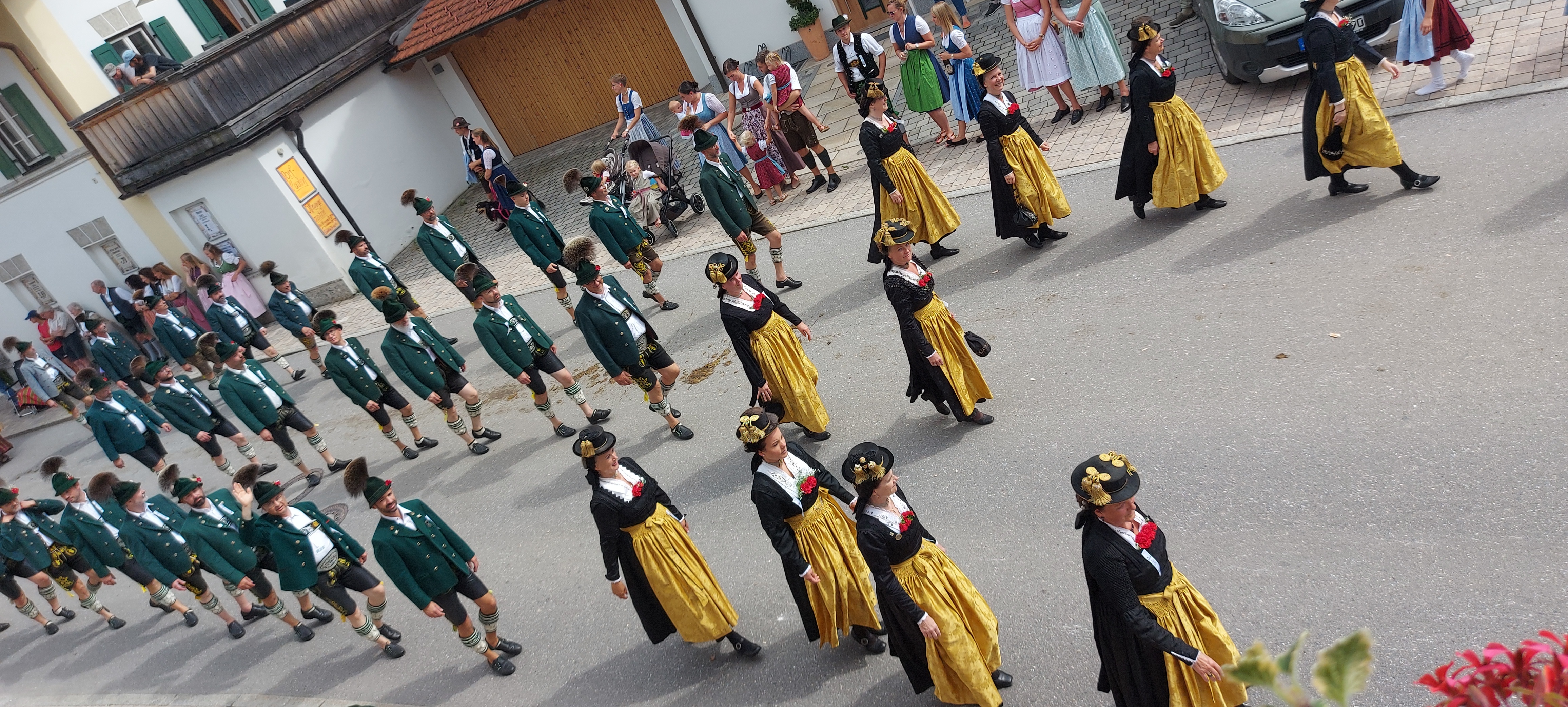 Der Gaufestsonntag in Schleching hielt, was man sich versprochen hatte. Bereits bei der Feldmesse am Achendamm waren die Vereine besonders zahlreich vertreten, am Nachmittag beim Festzug nahmen dann genau 4016 Trachtler teil. Es war eine große Freude, eine Wiedersehensfeier nach zwei entbehrungsreichen Jahren.