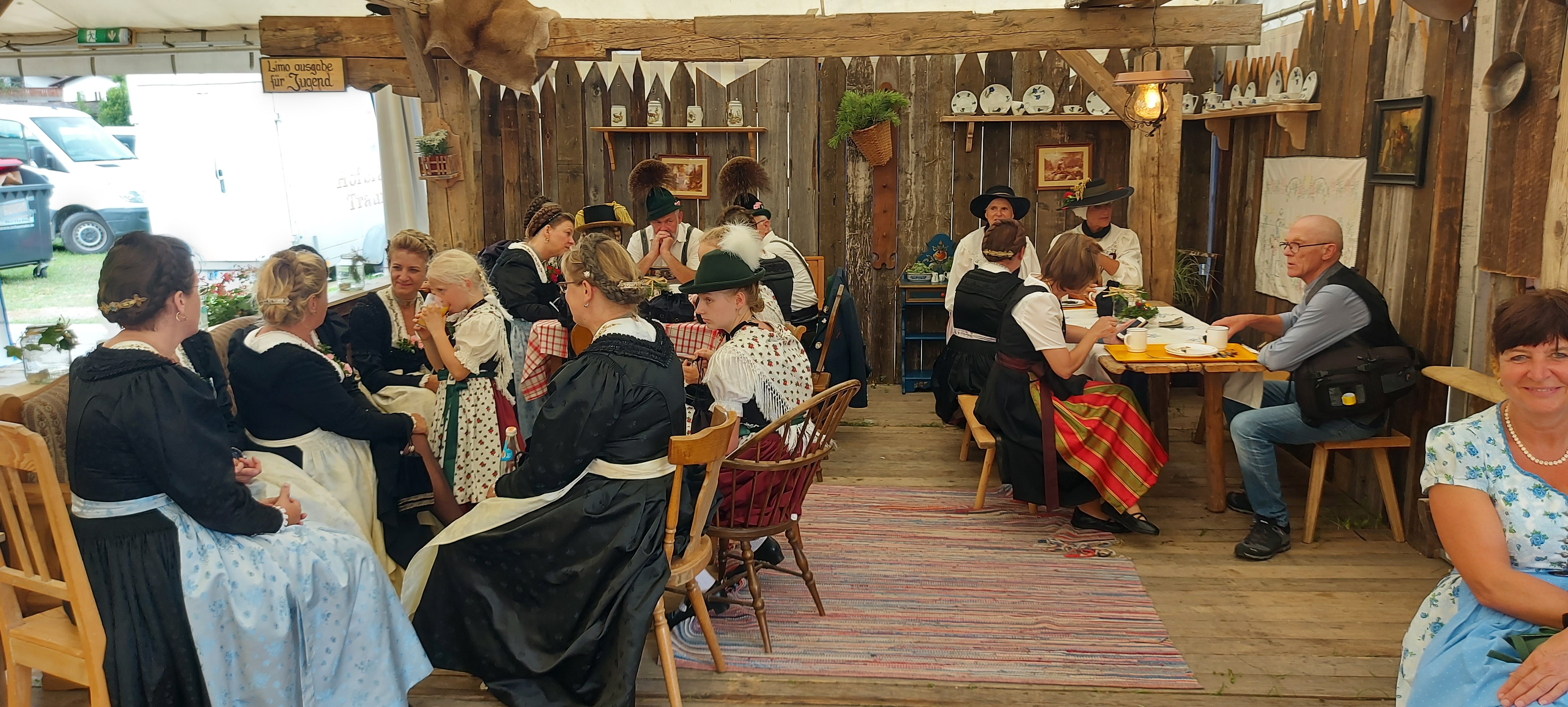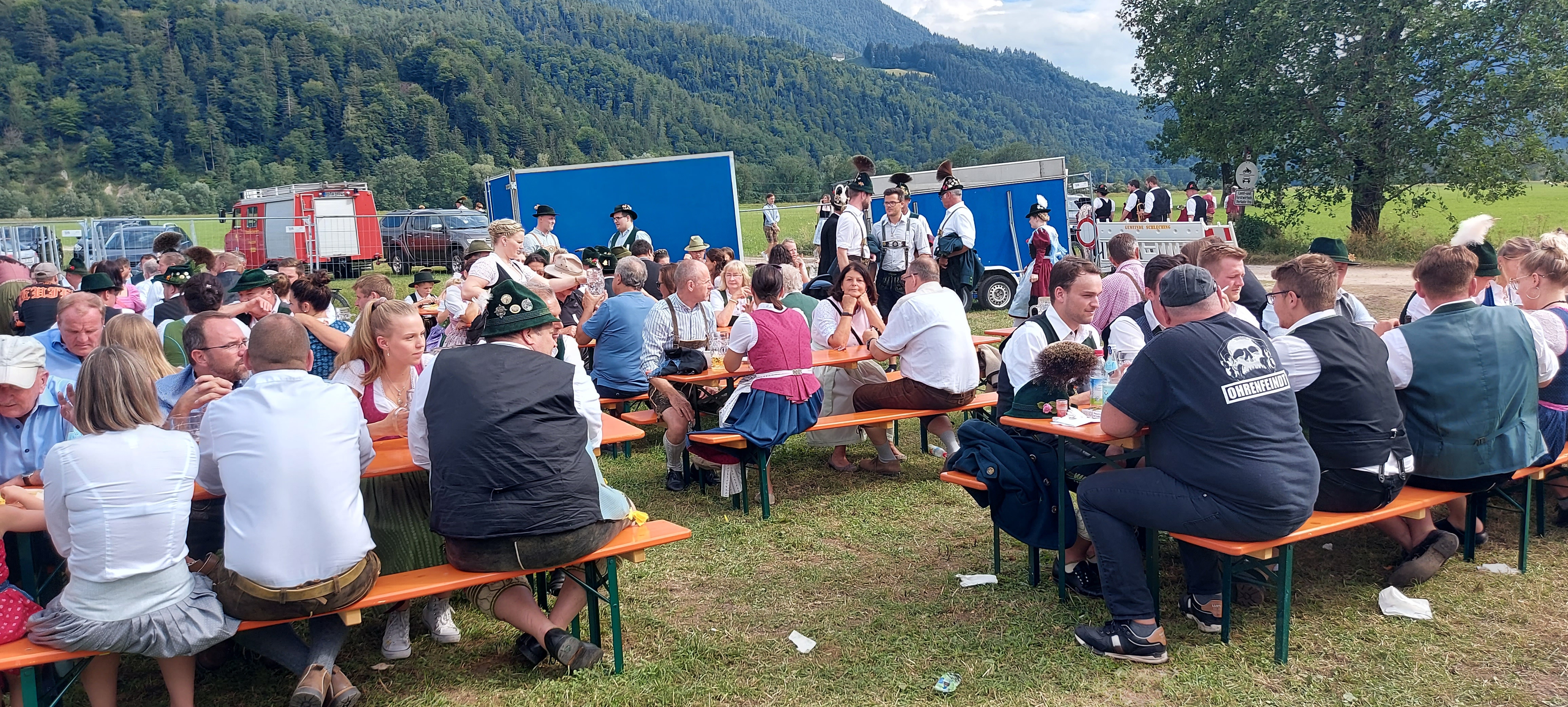 Rund um das Festzelt hatten die Schlechinger noch zusätzliche Bierzeltgarnituren für ca. 2000 Trachtler und Besucher aufgestellt, die gerne aufgesucht wurden, das Kaffeezelt und die Bar hatten ebenfalls extra Außenbereiche. Auch aus den befreundeten Nachbar-Gauen waren viele Ehrengäste gekommen, die den ganzen Tag mitfeierten, zahlreiche Besucher säumten den langen Festzug mit 35 Festwägen und 15 Musikkapellen.
