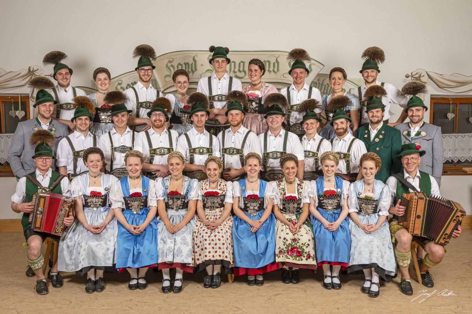Für viele Trachtlerinnen und Trachtler ist das Gautrachtenfest für die 23 dem Chiemgau-Alpenverband angeschlossenen Trachtenvereine der absolute Höhepunkt im Jahreslauf. Nach zwei Jahren Corona-Pause werden derzeit beim Trachtenverein „D´Gamsgebirgler“ in Schleching die Vorbereitungen für die Festwoche vom 28. Juli bis 7. August getroffen. Einen Tag vor dem Gaufestsonntag (31. Juli) findet im Festzelt traditionsgemäß der Gauheimatabend statt. Diesen gestaltet unter anderem die Gaugruppe des Verbandes. In dieser wirken die besten Dirndl-Dreherinnen und Plattler-Buam mit. Sie bereiten sich seit einigen Wochen abwechselnd in verschiedenen Trachtenheimen und Sälen auf die Tanz- und Plattler-Auftritte unter der Leitung der Gauvorplattler Thomas Stoib, Sepp Reiter und Max Irlinger sowie Gaudirndlvertreterin Marlies Huber vor. Bei der jüngsten Probe entstand diese Gruppenaufnahme von Fotograf Sepp Reiter im Chalet-Saal von Aschau i. Chiemgau.