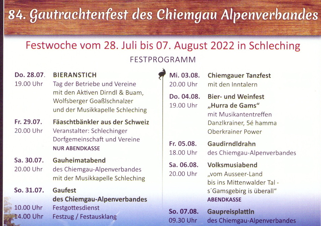 Anlage: Festprogramm Gautrachtenfest in Schleching 27.7.-7.8.22 - Foto: Josef Reiter