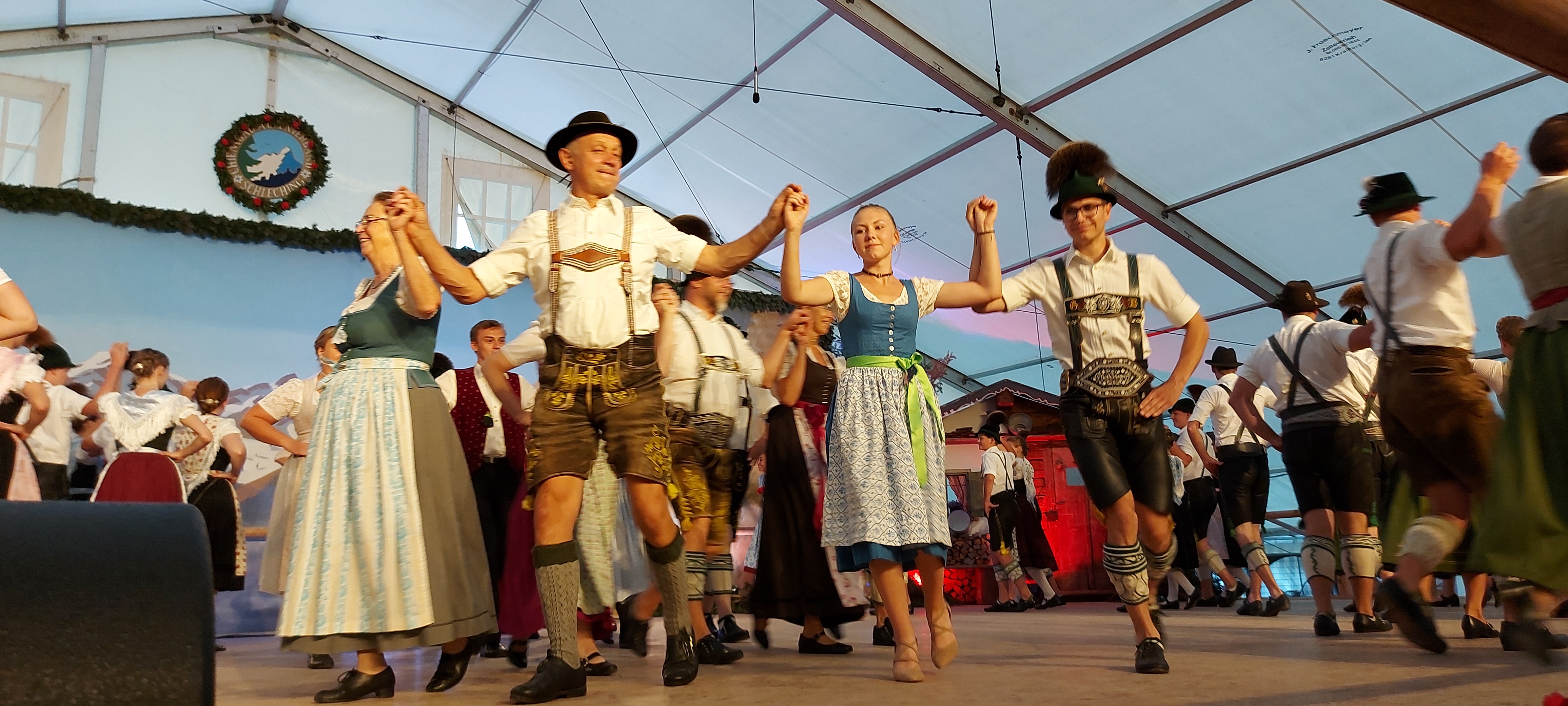 Nach zwei Jahren der Entbehrung kamen die Tänzer im Schlechinger Festzelt nicht zu kurz. Fleißig und flott spielten „die Inntaler“ auf, zwischen den Tanzrunden bot die Gaujugendgruppe mit Plattlern und Tänzen beste Unterhaltung .