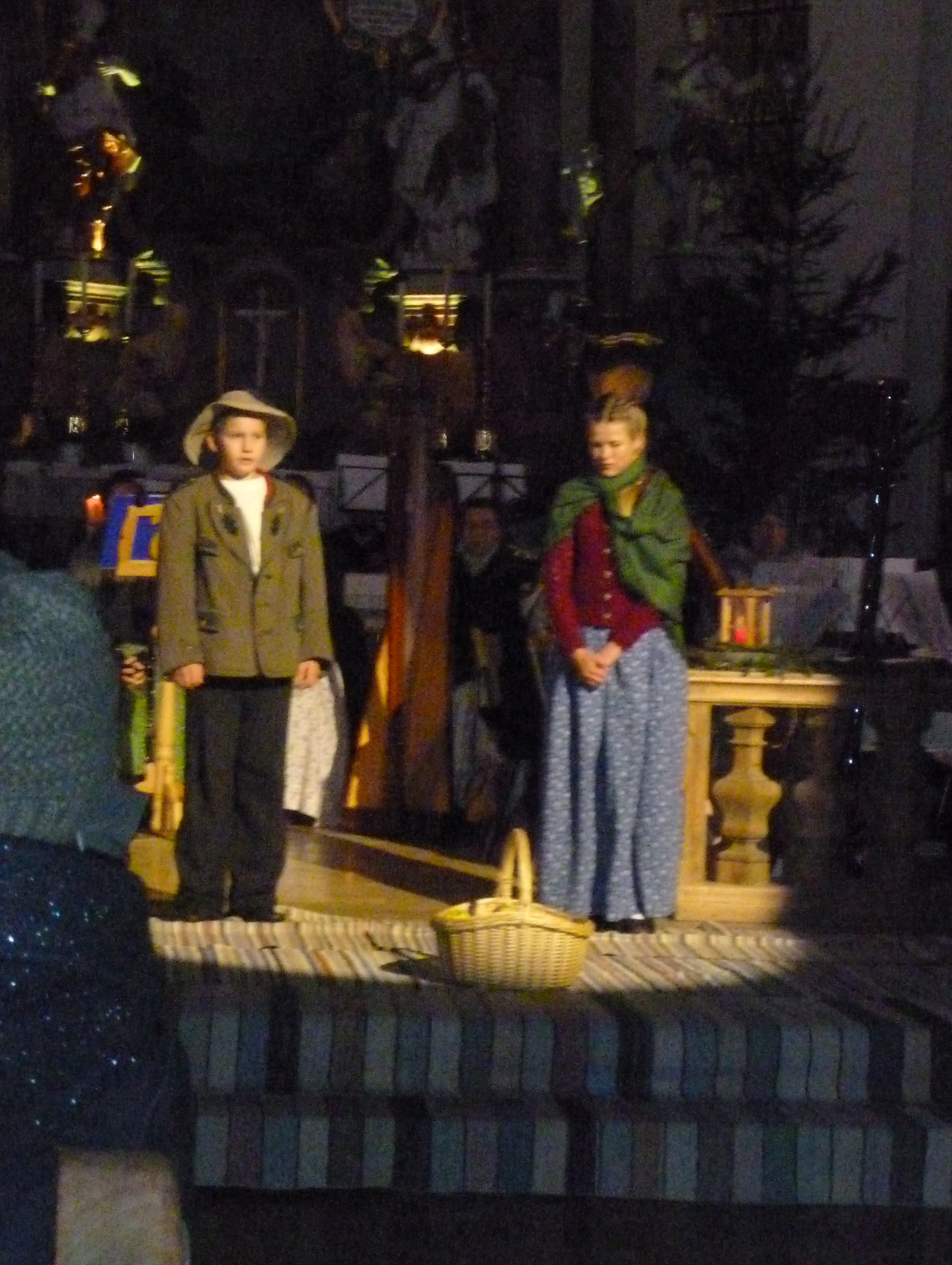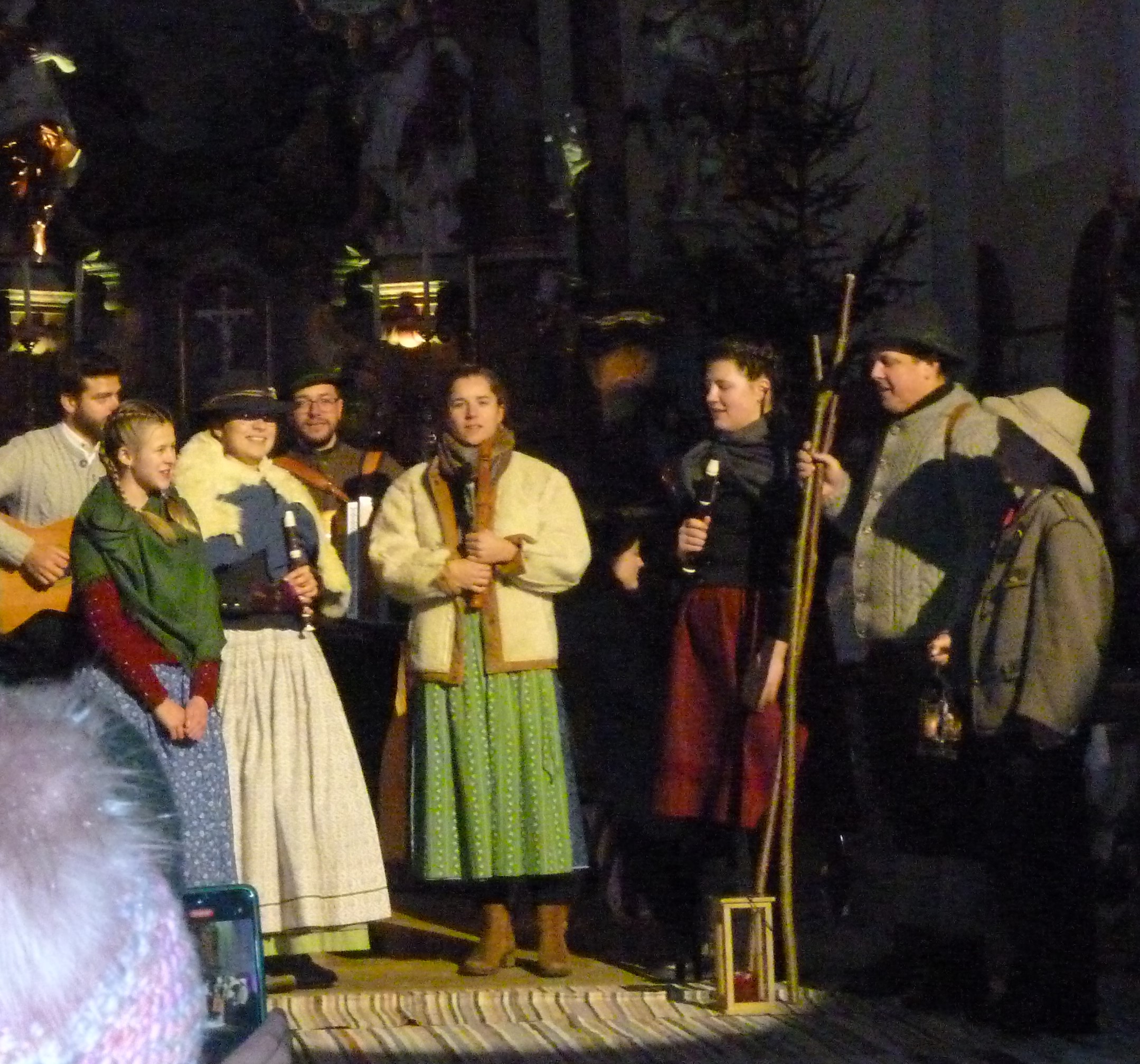 Die einzelnen Bilder wurden wunderschön umrahmt von der Oberlandler Stubenmusik, der Glühwein Musi, Florian Fleschhut an der Ziach, Michael Settele an der Orgel, dem Stöttner Dreigesang, der Hirtenmusik, den Stöttner Weisenbläser und Alphornbläser. Die musikalische Leitung hatte Stefan Höllthaler.