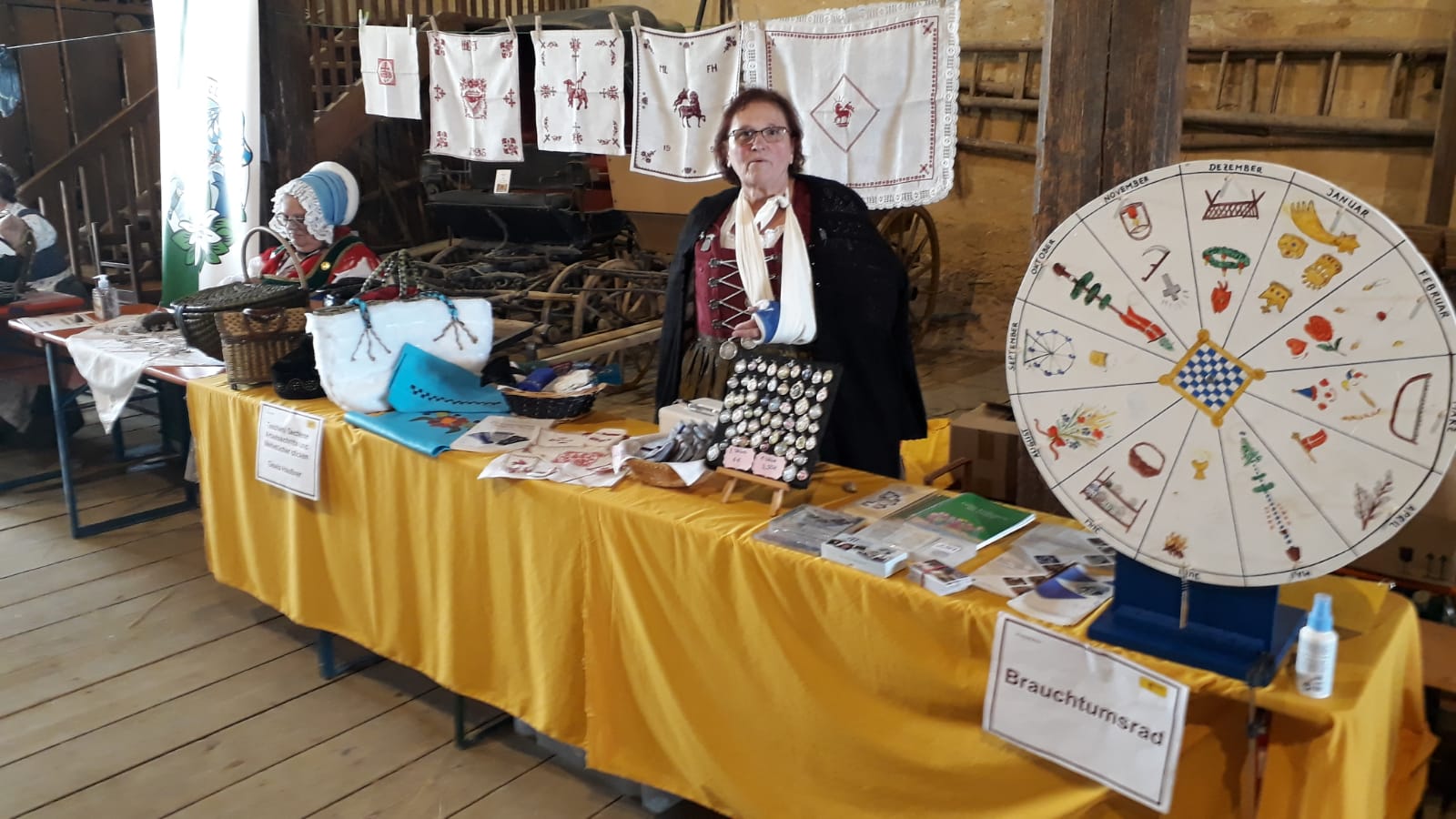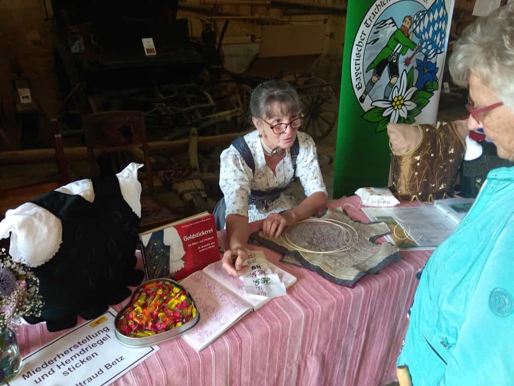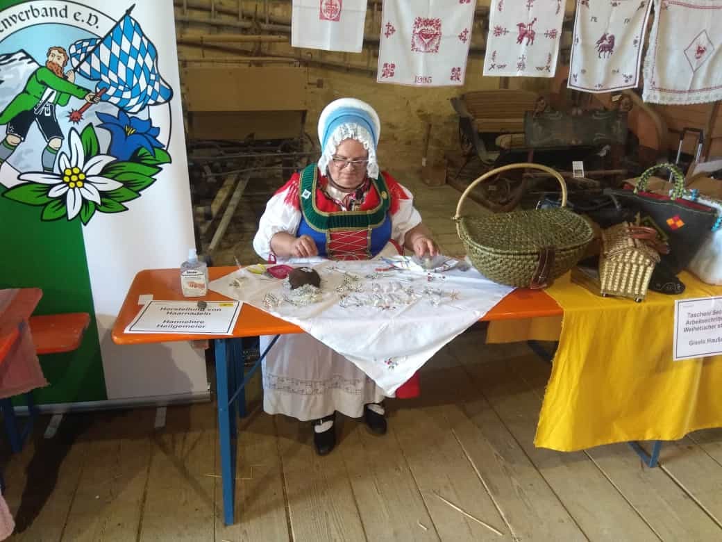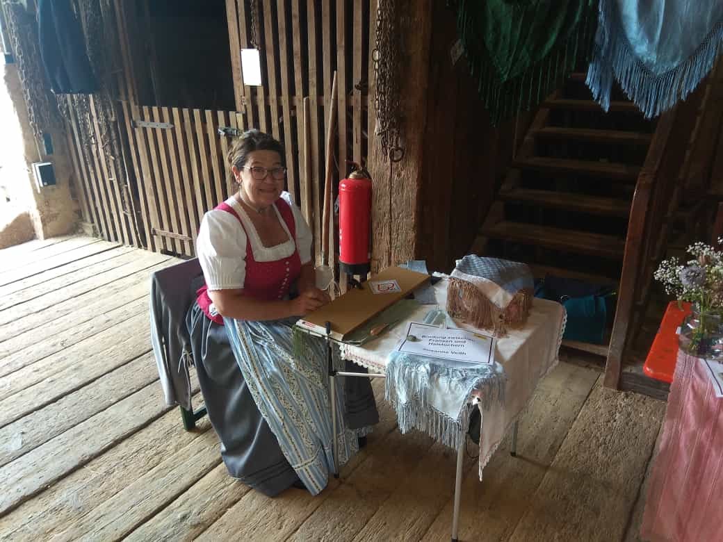 Wie Mieder, Haarnadeln und Fransen für Schultertücher hergestellt werden, konnten die Besucher dabei miterleben. Gezeigt wurden auch Pulswärmer, Filztäschchen, Kettenanhänger, Hemdriegel und Weihetücher. Am Brauchtumsrad, das regen Zulauf hatte, probierten sich Jung und Alt (und auch der Landrat!). Der Trachtenverein Gungolding tanzte halbstündlich mit der Volkstanzgruppe. Rundherum war es ein gelungenes Museumsfest trotz Coronaauflagen.
