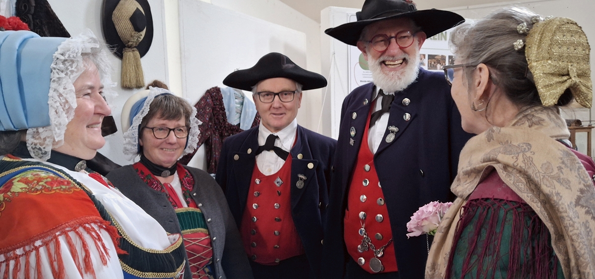 Der Donaugau-Trachtenverband informierte an einem Stand über seine Tätigkeit und vermittelte einen kleinen Eindruck über seine Geschichte. Der Verband umfasst derzeit 30 Vereine aus fünf Regierungsbezirken. Entsprechend groß ist die Vielfalt seiner Festtagstrachten, die in einer von Maria Jacob präsentierten schau gezeigt wurden.