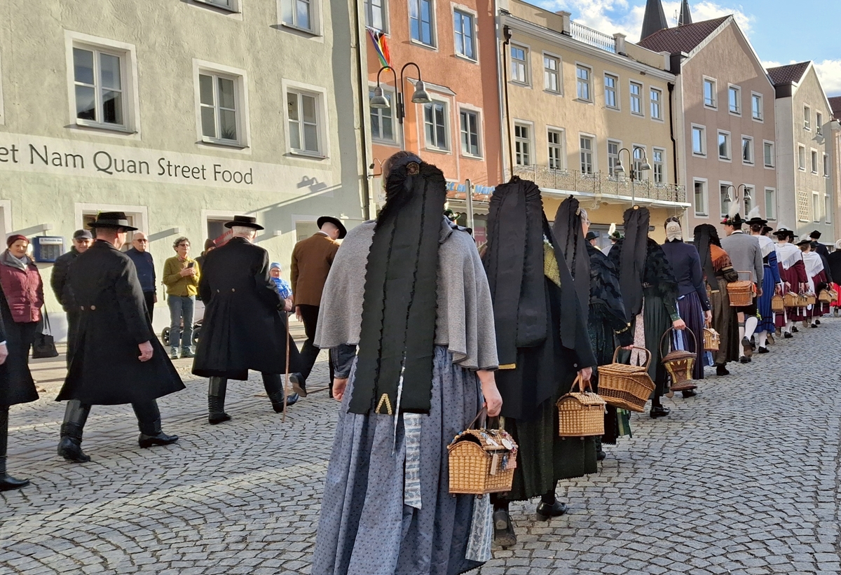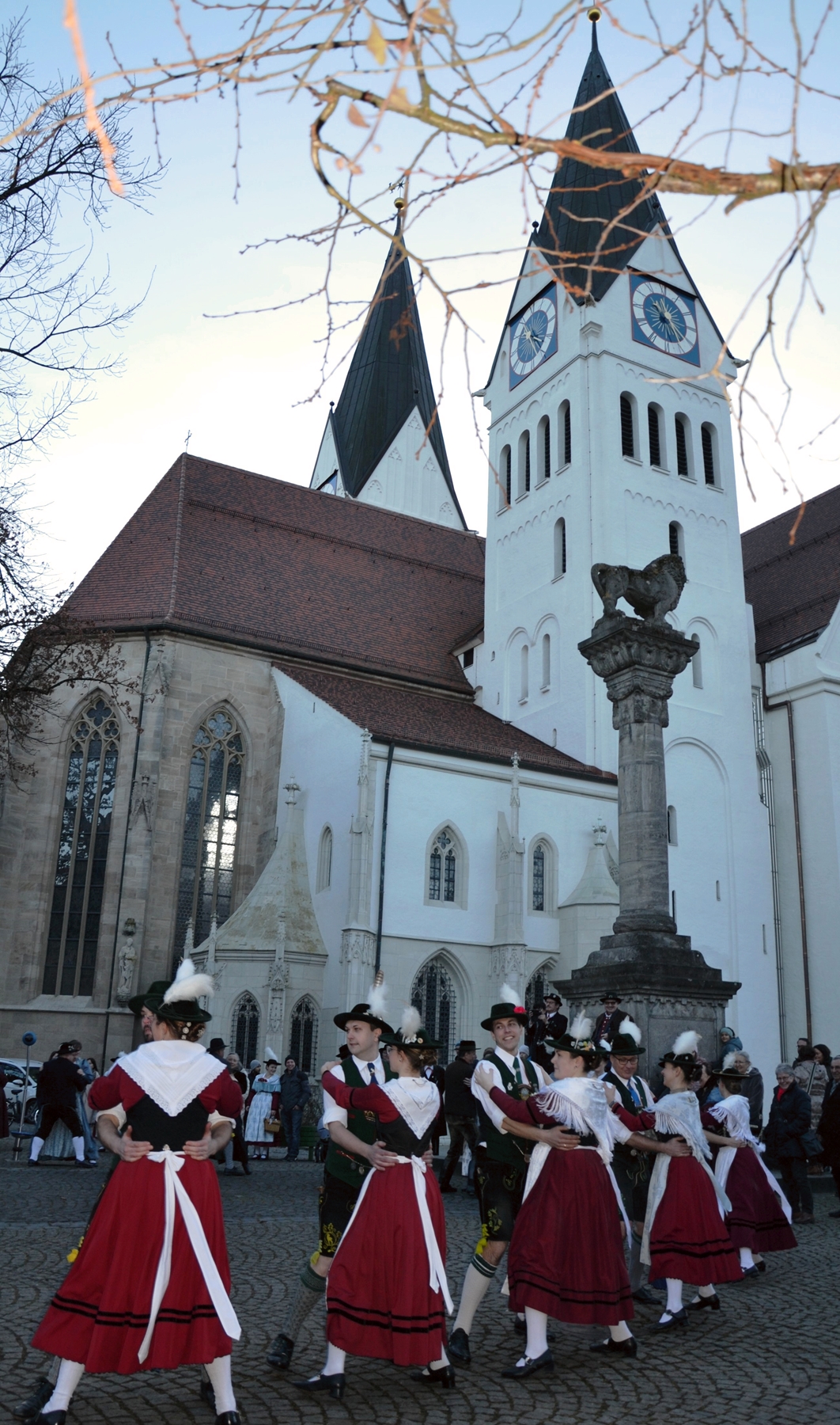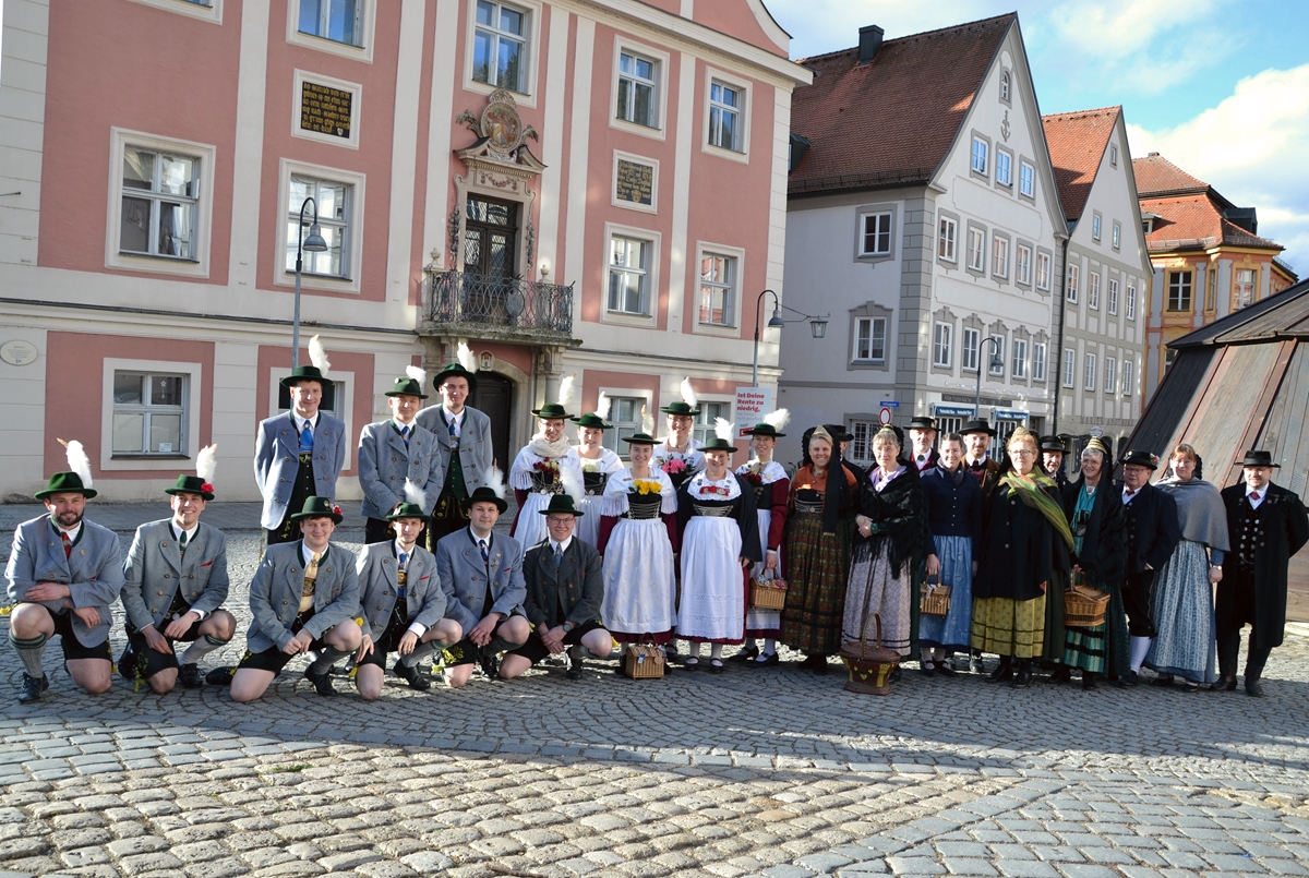 Während in der ehemaligen Johanniskirche am Eichstätter Domplatz die Festveranstaltung bereits in vollem Gange war, machten sich die Vertreter des Donaugau-Trachtenverbandes auf den Weg zum Eichstätter Rathaus und nahmen dort nicht nur zum termin Aufstellung.