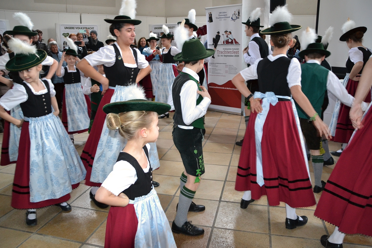 Während der Festreden nahmen die Kinder bereits Aufstellung für ihren großen Auftritt. Und da konnte man die Aufregung förmlich spüren. Schließlich hatten sie dafür „ganz viel“ geprobt, wie aus der Gruppe zu hören war. Und es waren auch einige „Neue“ dabei, was natürlich eine Extraportion Lampenfieber auf den Plan rief. Aber man konnte auch erfahren, dass bei den Treffen der Kinder- und Jugendgruppen nicht nur getanzt und geplattelt, sondern vieles andere geboten wird. Da wird erzählt von Ausflügen, vom Geoparkour auf dem Eichstätter Fossilienpfad , von der Schüttelbutter im Jura-Bauernhof-Museum Hofstetten, vom Bouldern in der Kletterhalle und man erfährt, dass „da echt jeder kommen kann und mitmachen darf“. Der Applaus war den Kindern dann auch gewiss. Souverän und gekonnt legten sie ihren Auftritt aus Parkett, gepaart mit einem Lächeln im Gesicht und Freude, die mitreißen.