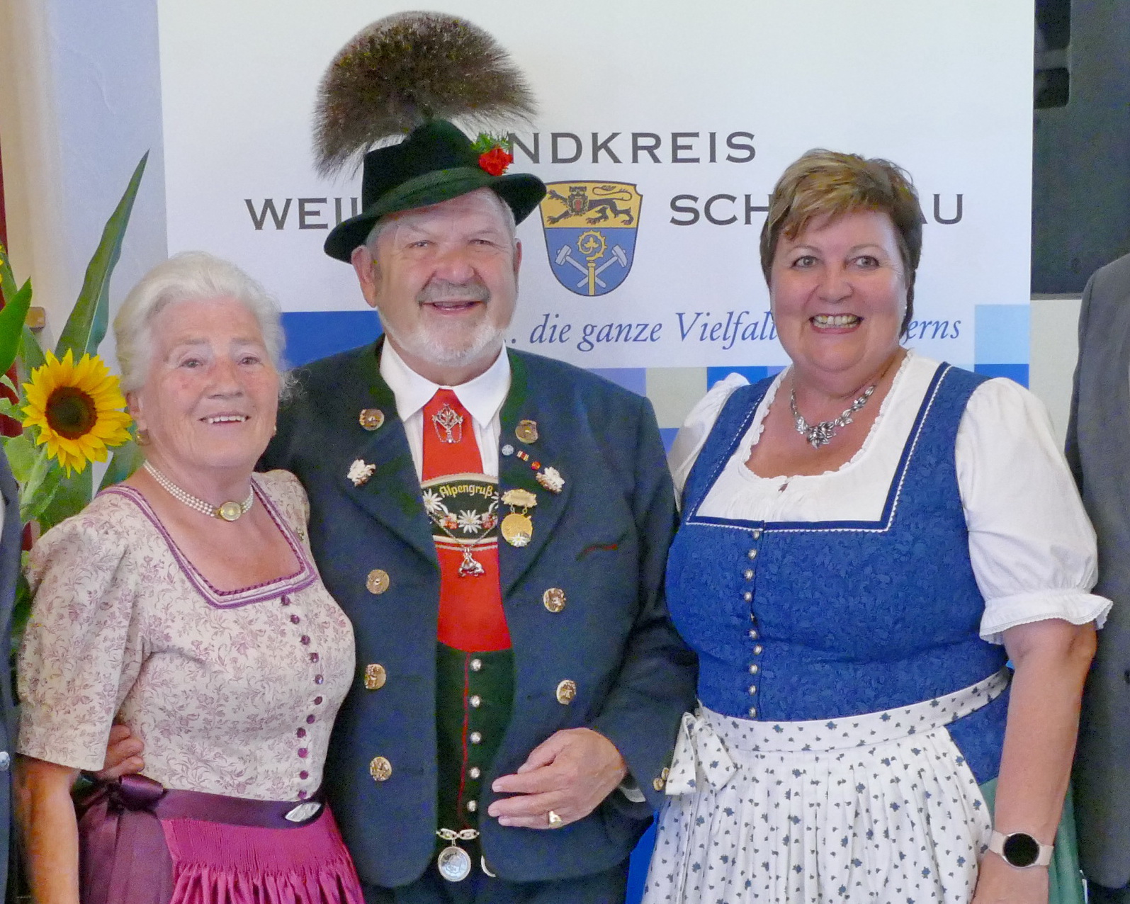 Bildunterschrift: von links: Annemarie Bertl – Max Bertl – Landrätin Andrea Jochner-Weiß