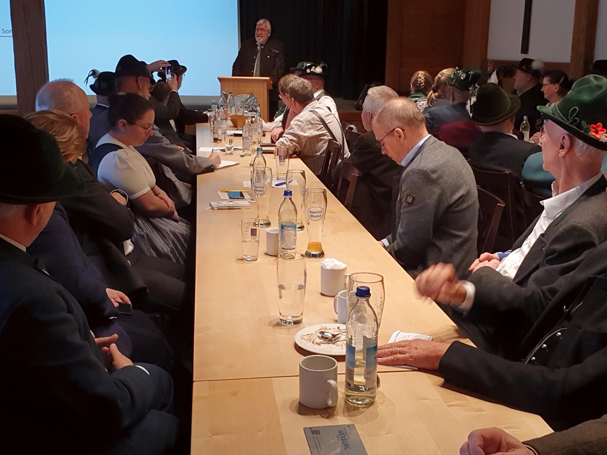 „Ehrenamt ist nicht bezahlbar“, so sagt Sebastian Friesinger in seinen Worten an die Trachtler. Danke für alle, die ein Ehrenamt ausüben und dass wir das Trachtenkulturzentrum haben. Mehr Anerkennung im Ehrenamt sollte es für kleine Vereine geben, z. B. für ein digitales Programm etc. Ferner sollten die ehrenamtlich Tätigen für ihre notwendigen Fortbildungen mit „Freizeit“ belohnt werden.
