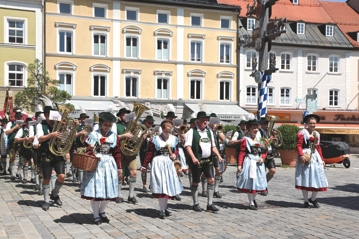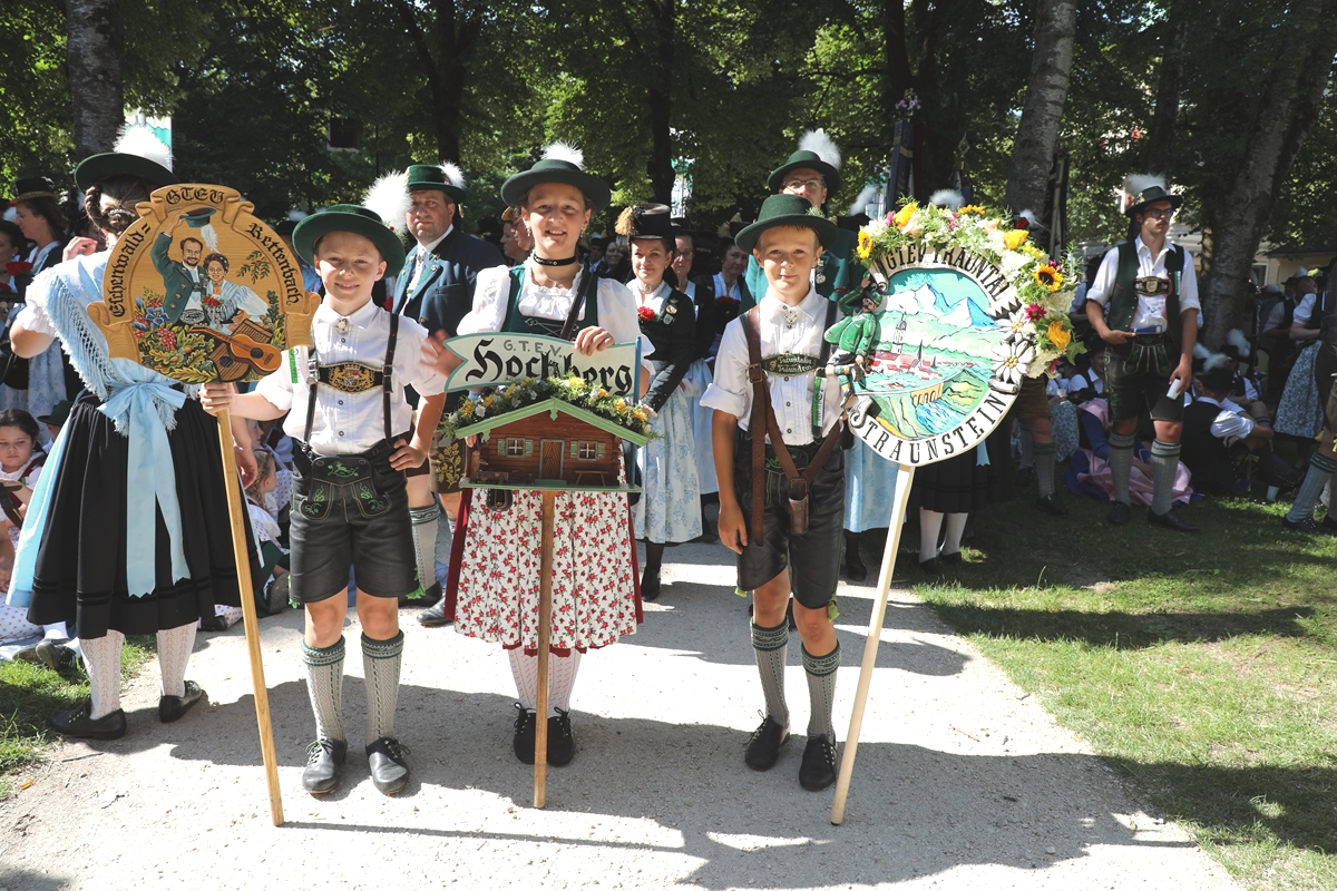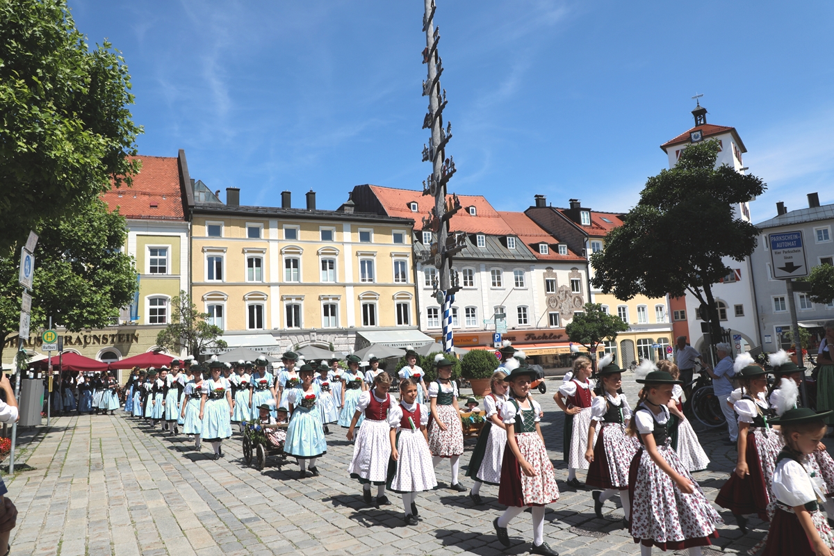 Traunstein. Hoamat, Brauchtum, Tradition – drei Worte, die bei Bayerns Trachtlerinnen und Trachtlern die Basis ihrer Überzeugung wiederspiegeln. Dass Gemeinschaftsgeist und der Zusammenhalt in den Vereinen sie alle zusätzlich zu einer großen „Trachtenfamilie“ vereint, demonstrierten sie beim 135. Gaufest Bayerns größten Gautrachtenverbandes, dem Gauverband I. Über 8.000 Kinder, jugendliche und erwachsene Trachtlerinnen und Trachtler kamen nach Traunstein, um gemeinsam den Festsonntag, den Jahreshöhepunkt, zu feiern. Der schattige Stadtpark mitten im Stadtkern, ein „Herrgottsfleckerl“ – so die Meinung einiger Gottesdienstbesucher. Den Festgottesdienst zelebrierte Stadtpfarrer Konrad Roider, doch die Predigt hielten er und Peter Bertram, Dekan des evangelisch-lutherischen Dekanatsbezirks Traunstein, gemeinsam. Nach dem Evangelium der beiden ungleichen Schwestern Martha und Maria stellten Bertram und Roider fest, dass man ein aktives Leben nicht gegen ein kontemplatives Leben ausspielen sollte, sondern beides muss sich ergänzen. Es braucht Hand und Kopf, die Arbeit und das Feiern. Es gilt im Leben immer offen zu sein und die Talente des Einzelnen anzuerkennen. Dennoch dürfen auch Momente der Ruhe, Momente für Gott nicht fehlen, sonst fehlt die Kraft um das Leben zu gestalten.