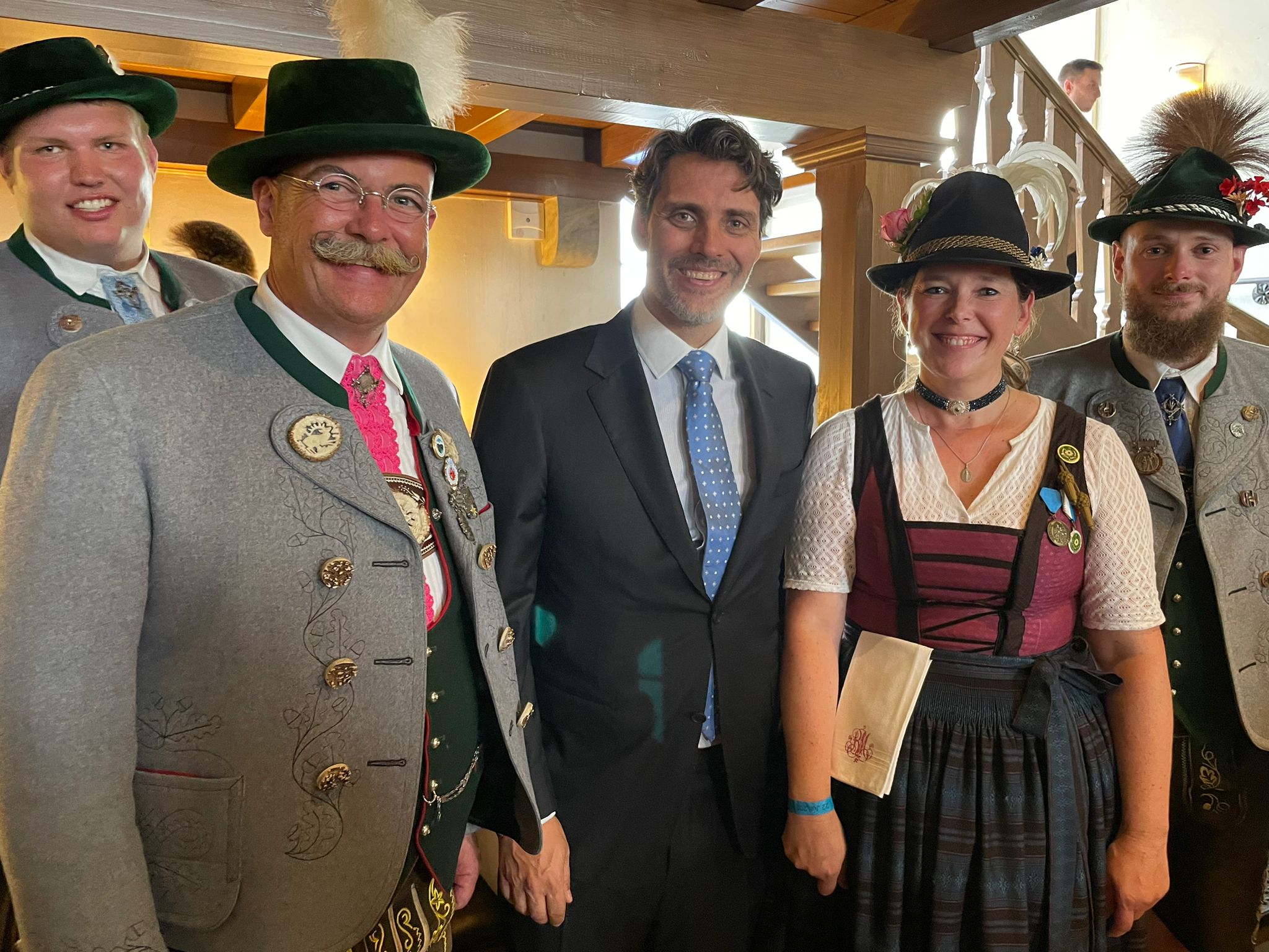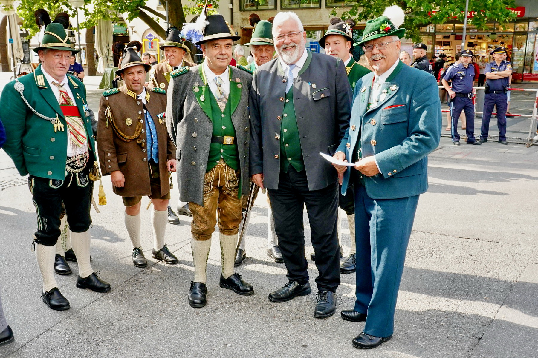 - Landesvorsitzender vom Bayer. Trachtenverband Günter Frey (re.) und Bayernbund-Landesvorsitzender Sebastian Friesinger (daneben) mit Landeshauptmann Martin Haberfellner vom Bund Bayerischer Gebirgsschützen mit weiteren Gebirgsschützen (Foto: Lutzenberger).