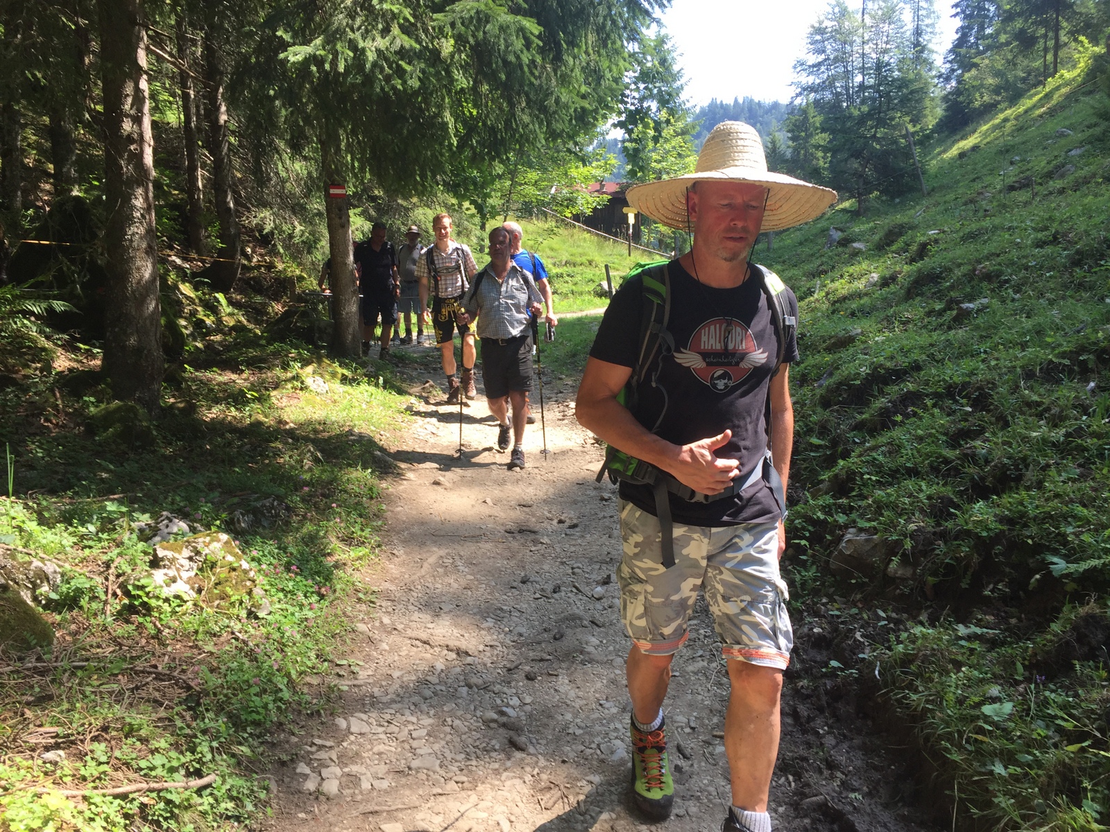 Manch gute Idee findet ihren Ursprung im Gespräch an einer Bar. Am Gaufest Sonntag 2014 in Staudach-Egerndach erfuhr Gauvorstand Miche Huber, dass sich eine kleine Gruppe Münchener dort zum „Gaufest-Urlaub“ einquartiert hatte. So entfällt die lästige Hin- und Rückfahrt und man kann bei den Veranstaltungen des Gastvereins ausgelassen mitfeiern. Auf die Frage was denn so zwischen den Tagen gemacht werde, fand sich gleich ein gemeinsames Interesse: Ausflüge in die Chiemgauer-Berge. Und so ging es drei Tage später auf dem Drahtesel von Marquartstein los, hoch Richtung Hochplatten, um den Staffen und über die Moieralm nach Rottau. Im Jahr drauf, beim Gaufest in Prien, führte die Tour bereits mit einer größeren Gruppe, teils auf dem Radl von Rottau aus, teils zu Fuß von Aschau aus, auf die Kampenwand mit Einkehr in der Steinling Alm. Jahr für Jahr ging es seither so weiter – eine schöne Tradition war entstanden und von Jahr zu Jahr wuchs die kleine Gruppe.