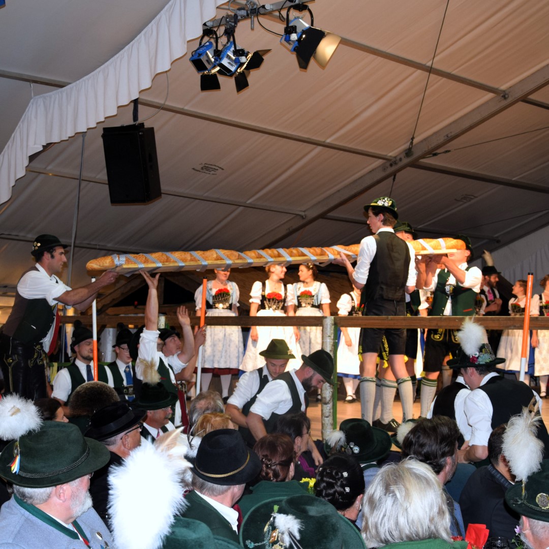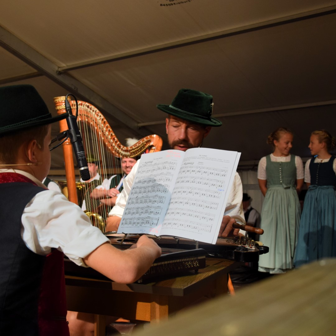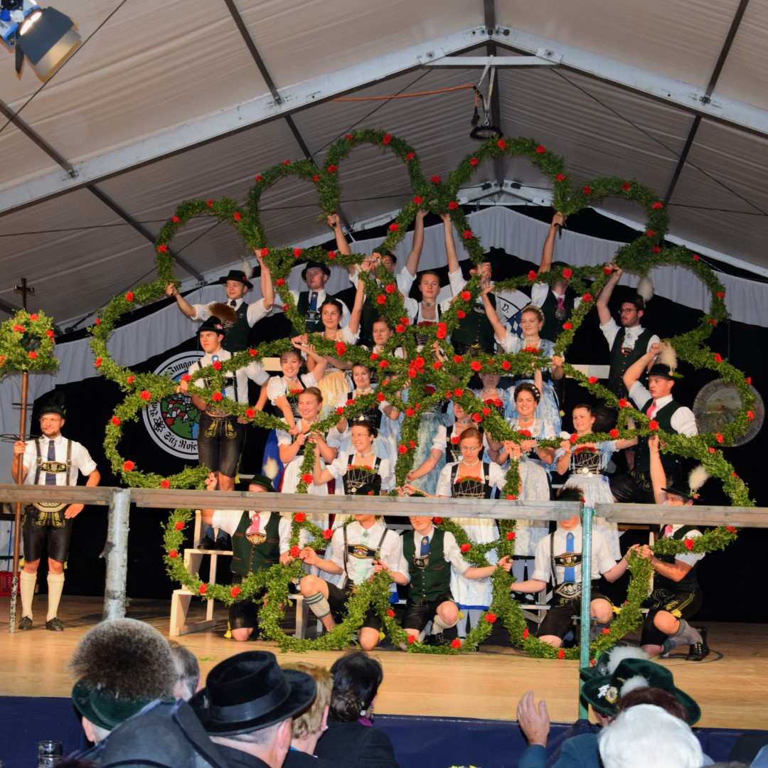 Der Heimatabend der Landestagung des bayerischen Trachtenverbandes brachte den begeisterten Zuschauern das Leben eines Inngautrachtlers „von der Wiege bis zur Bahre“ näher. Der Inngaugeist, gespielt von Martin Wollmann, begleitet das Leben des kleinen Hanse, dessen Eltern zur Geburt nach gutem Brauch einen Weisertwecken erhalten. Im Anschluss erleben die Zuschauer die ersten Musik -und Plattlproben, gespielt von Hans Baumgartner mit seinen Kindern und der Oberaudorfer Kindergruppe mit dem Dätscher.