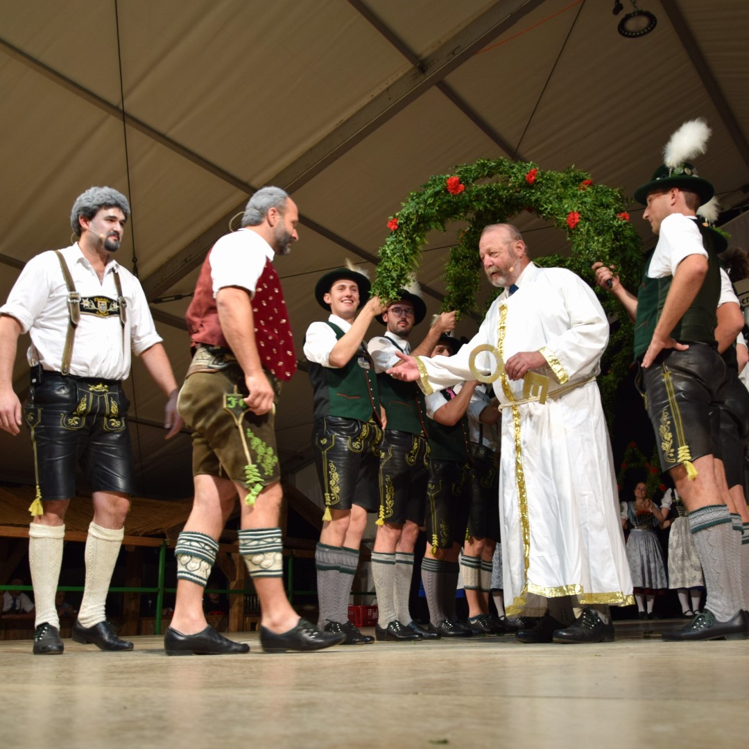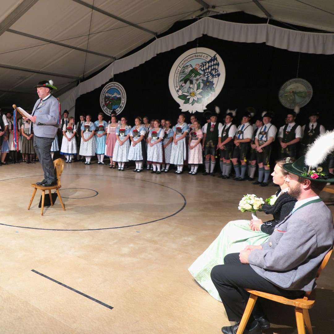 1. Gauvorplattler Sepp Brem bedankt sich nach der großen Schlussfigur bei allen Mitwirkenden und kann zu Recht stolz auf diesen außergewöhnlichen Heimatabend zurückblicken, der allen noch lange in Erinnerung bleiben wird. Zum Ausklang spielt die Mitteroim-Musi, die auch den Heimatabend musikalisch umrahmt hat, noch zu einigen Tanzrunden auf.