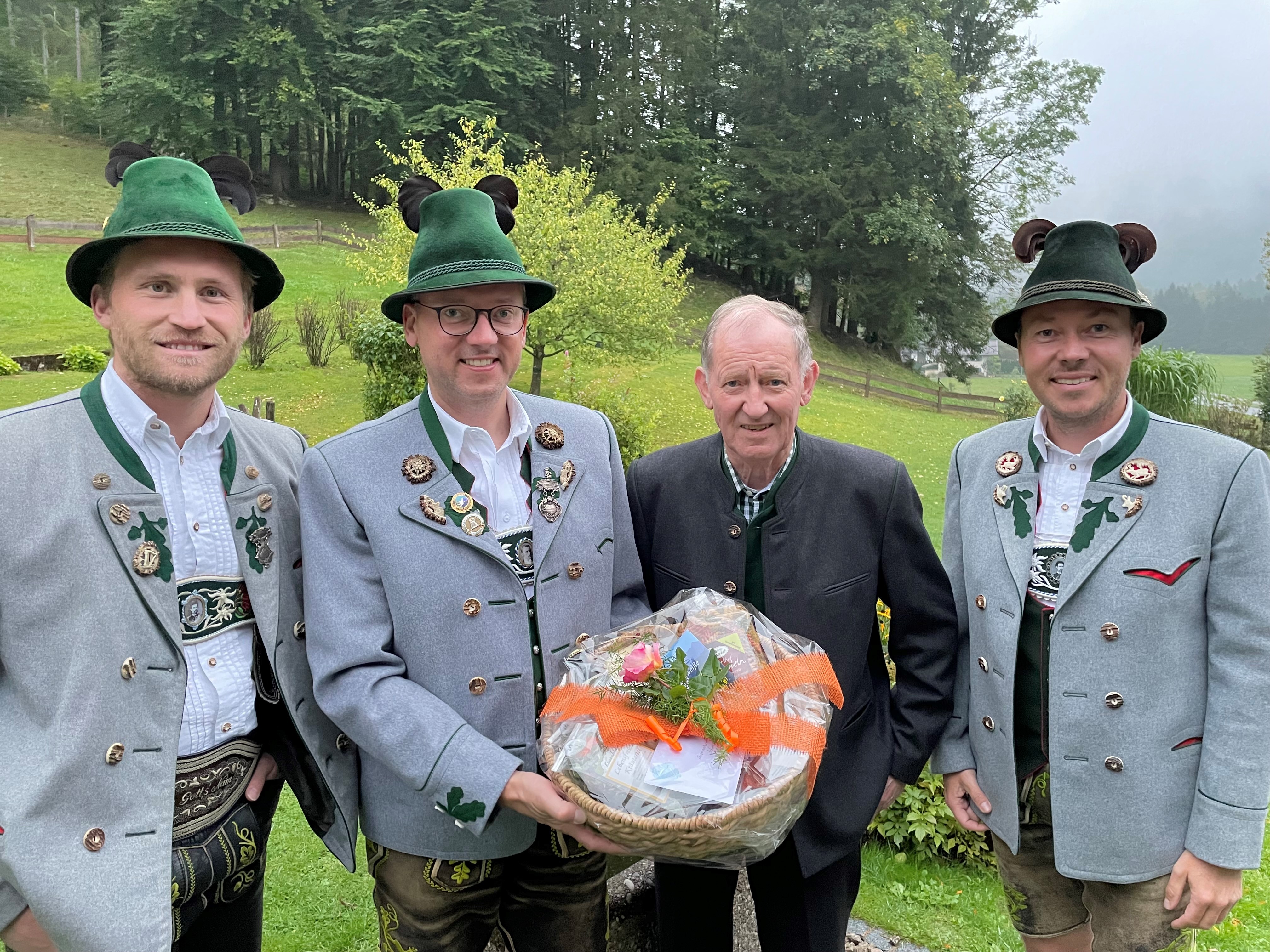 Hohenaschauer Trachtler gratulieren zum 80. Geburtstag ihrem Ehrenvorstand Schorsch Pfaffinger