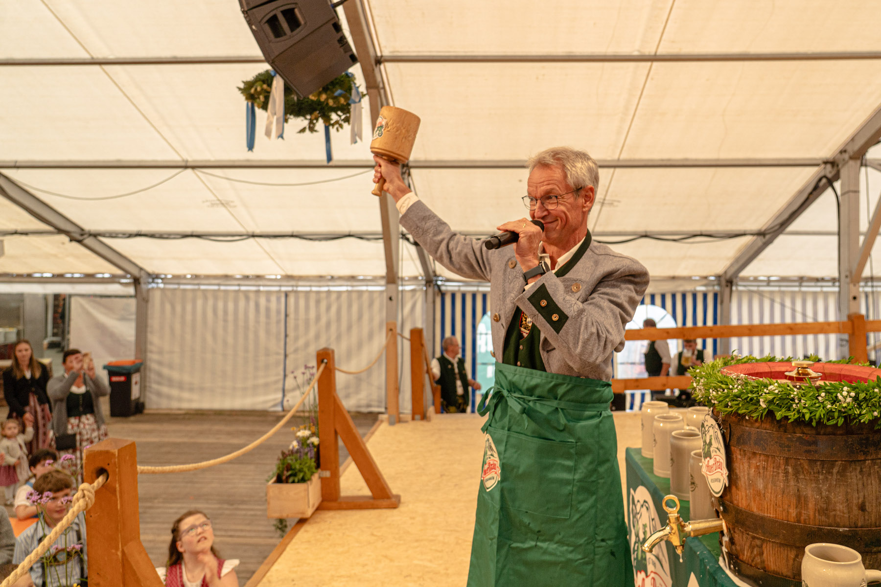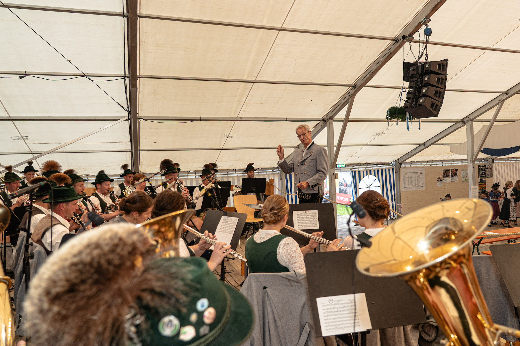 Dass Matthias Jokisch ebenfalls von der bärigen Stimmung im Zelt erfüllt war, war ihm anzumerken, etwa an der Freude, mit der er nach dem Bieranstich für ein Stück lang die Brannenburger Blasmusik dirigierte. Von Herzen kam sicher auch sein Dank an all die Trachtler und Feuerwehrler die sich im Grunde bereits seit Juni 21 auf das jetzige Gaufest und auch das Feuerwehrjubiläum vorbereiteten: Denn damals hatte man sich auf dem Gaufest in Nussdorf offiziell beworben und auch den Zuschlag bekommen. Ein Dank, mit dem er ganz bestimmt für alle Besucher des Bieranstichs sprach, denn wie gesagt, eines scheint sicher: Die nächsten Tage werden ein Ereignis, das in Brannenburg lange im Gedächtnis bleiben wird.