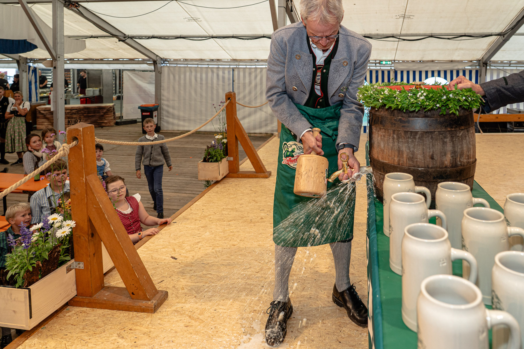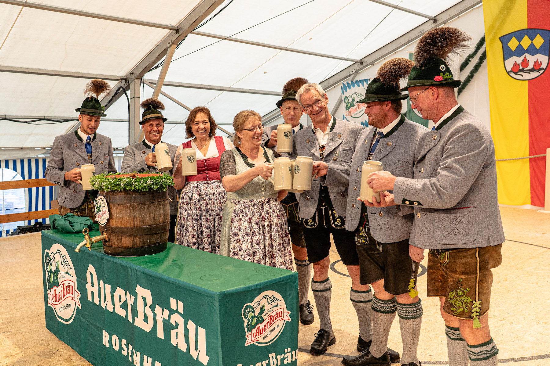 Eigentlich steht es jetzt schon fest: Das Doppeljubiläum des GTEV D’Sulzbergla und der Feuerwehr Brannenburg wird ein Riesenerfolg. Zumindest wenn man seinen Start, den Bieranstich durch Brannenburgs Bürgermeister Matthias Jokisch zum Maßstab nimmt. Denn obwohl das Bierzelt mit Platz für über 6000 Menschen wirklich riesig ist, war es schon am ersten Tag richtig gut gefüllt.