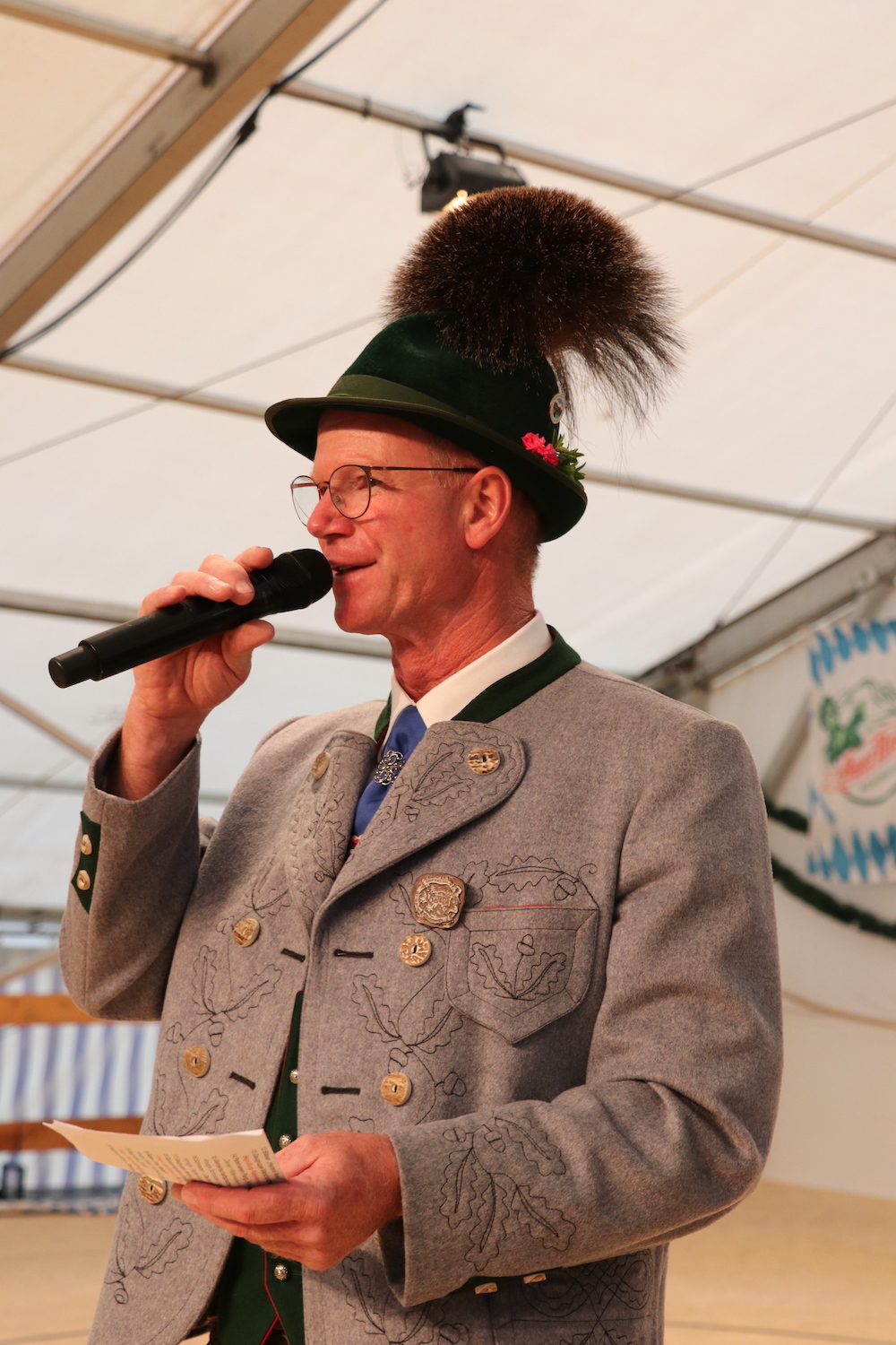 Landesvorsitzender Günter Frey vom Bayerischen Trachtenverband betonte in seiner kurzen Ansprache die Wichtigkeit des Zusammenhaltes im Dorf: "nur so sind solche Fest überhaupt möglich". Der Zusammenhalt ist der "Kitt, der unsere Gesellschaft zusammenhält." Außerdem wie er darauf hin, dass die Hingabe und das Bekenntnis zur Heimat die Trachtler ausmacht. "Wir leben Heimat und Brauchtum und geben das auch an unsere Kinder weiter" so Frey, bevor er zum Schluß noch an den Tag der Tracht, der am kommenden Montag, 14. Juli bayernweit in Zusammenarbeit mit dem Landesverein für Heimatpflege und dem Staatsministerium der Finanzen und Heimat stattfindet. Jeder ist aufgerufen, an diesem Tag Tracht zu tragen und somit seine Verbundenheit zur bayerischen Tradition und Heimat zu zeigen.