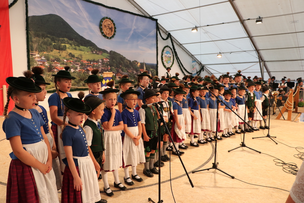 Nach dem Totengedenken fand am Freitag, den 12. Juli im vollen Brannenburger Festzelt der diesjährige Gauheimatabend statt. Traditionell starteten die Kinder und Jugendlichen nach dem "Gruß an Oberbayern" der Festmusi, der Musikkapelle Brannenburg" mit dem Auftanz in den Heimatabend, durch den Maria Gasteiger und Sepp Bliemetsrieder führten.