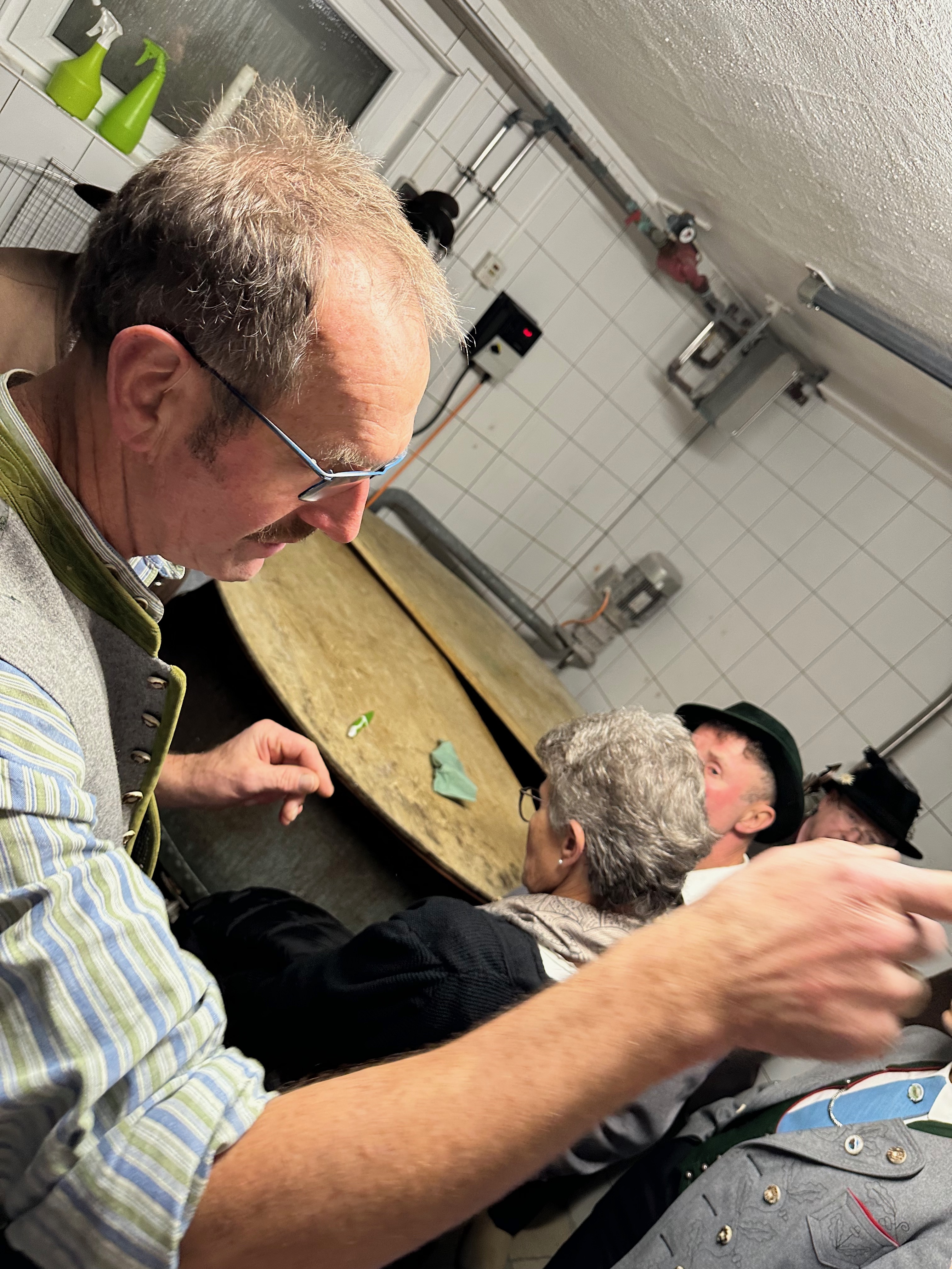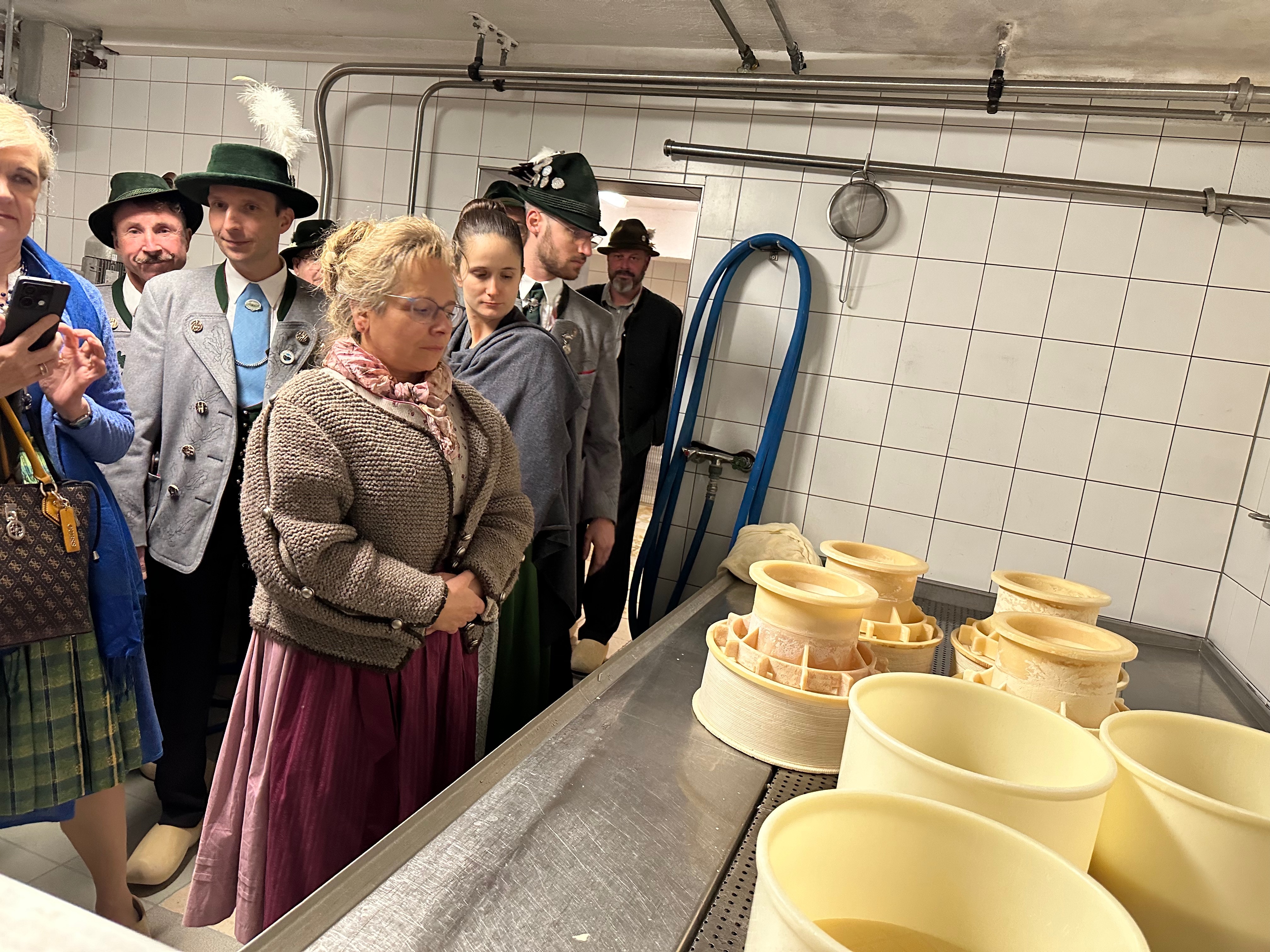 Kurzweilig und sehr anschaulich führte Leonhard Neuner durch die Hofkäserei: dort wird seit 25 Jahren Rohmilchkäse aus Milch der 30 hofeigenen Kühe verarbeitet und bis hin zu München vertrieben und auf Bauernmärkte zum Verkauf angeboten. Im Salettl, daß seit einigen Jahren jeweils donnerstags für den Publikumsverkehr geöffnet ist, fand im Anschluß die Versammlung der Brauchtumswarte statt.