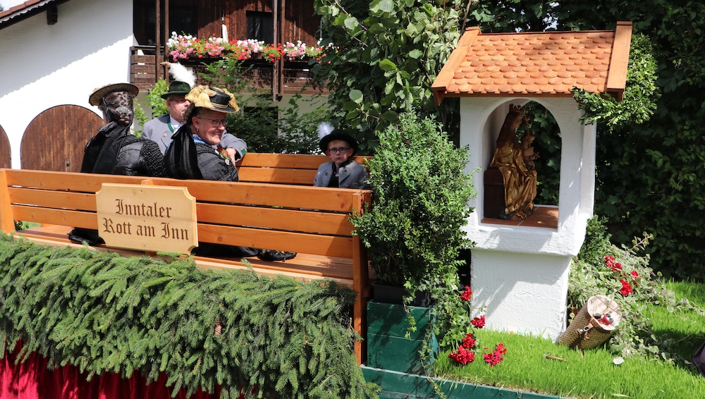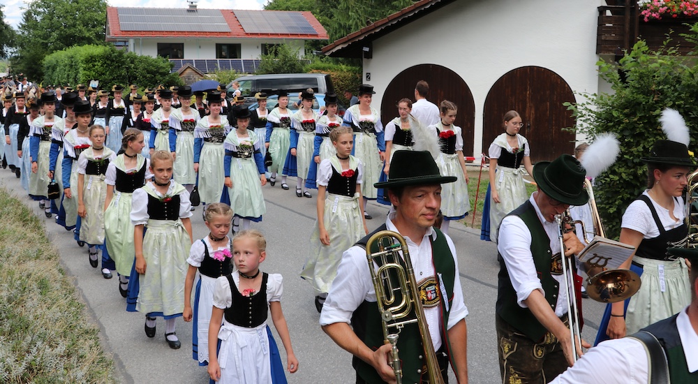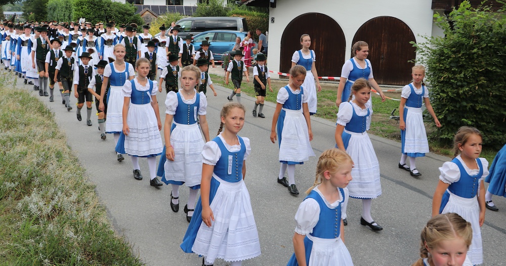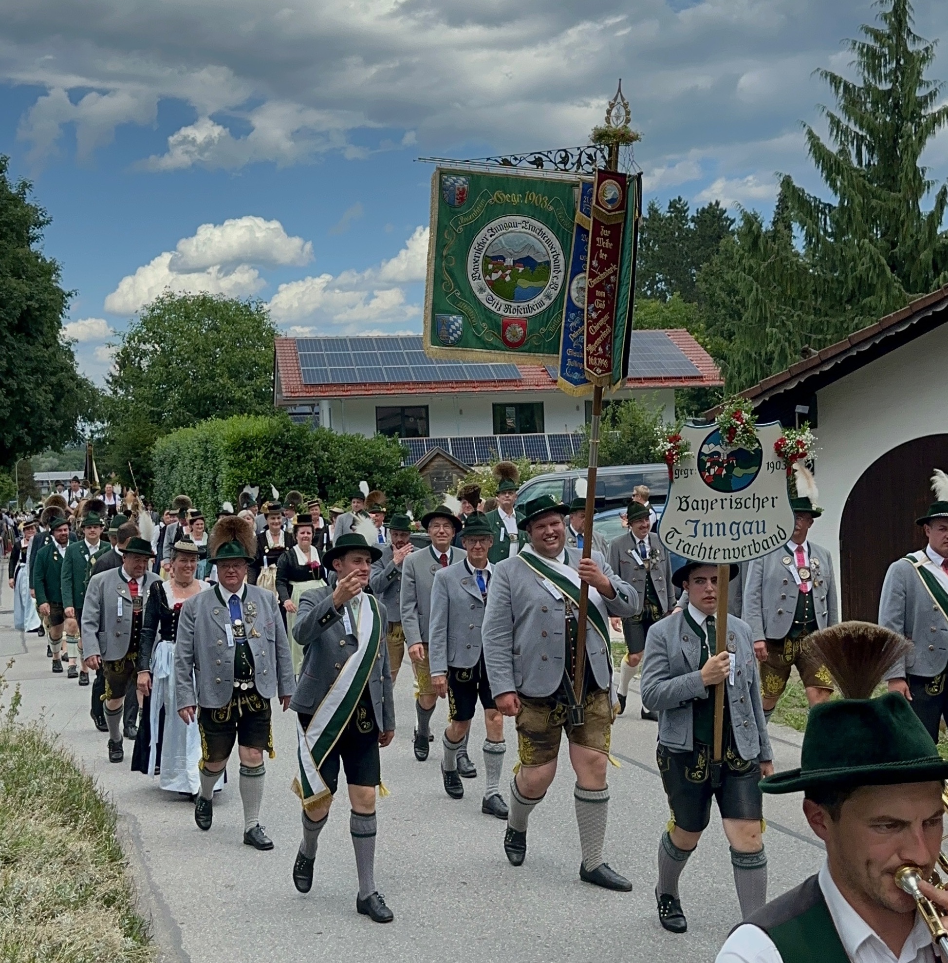 Der Wettergott meinte es gut mit den Inngau-Trachtlern: fand das Totengedenken am Freitag, 11. Juli noch wetterbedingt in der Kirche statt und war der Rückweg wegen eines Regengusses teilweise nur motorisiert möglich, gab es am Gaufestsonntag, 13. Juli beim Kirchenzug und der anschließenden Heiligen Messe sowie auch beim Festzug am Nachmittag einen wunderschönen bayerischen weiß-blauen Himmel bei angenehmen Temperaturen.