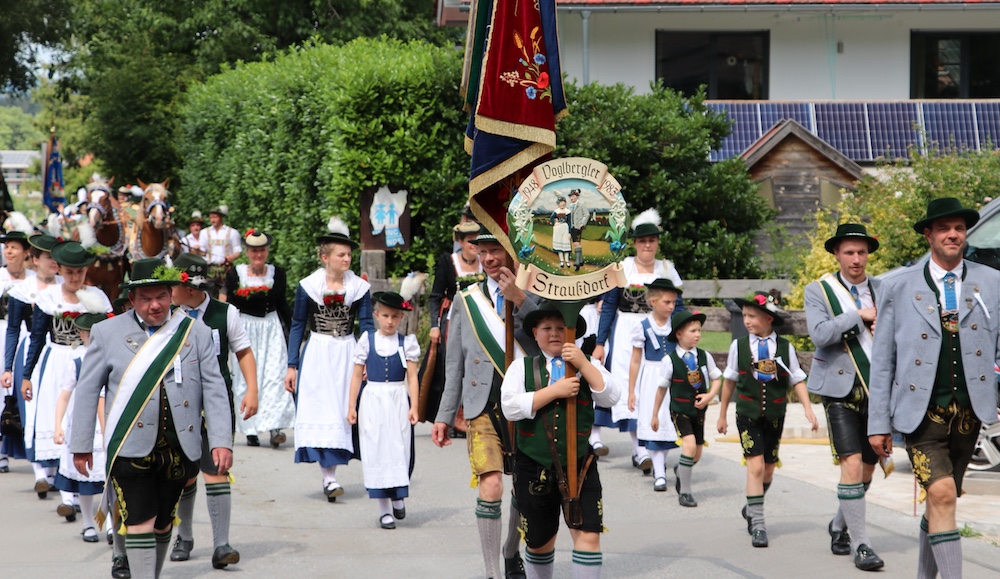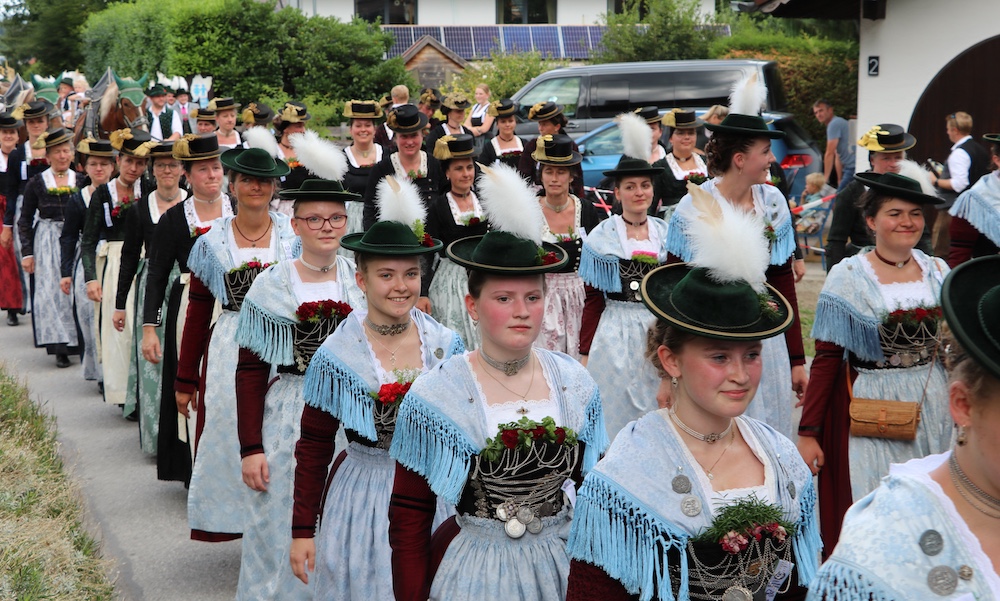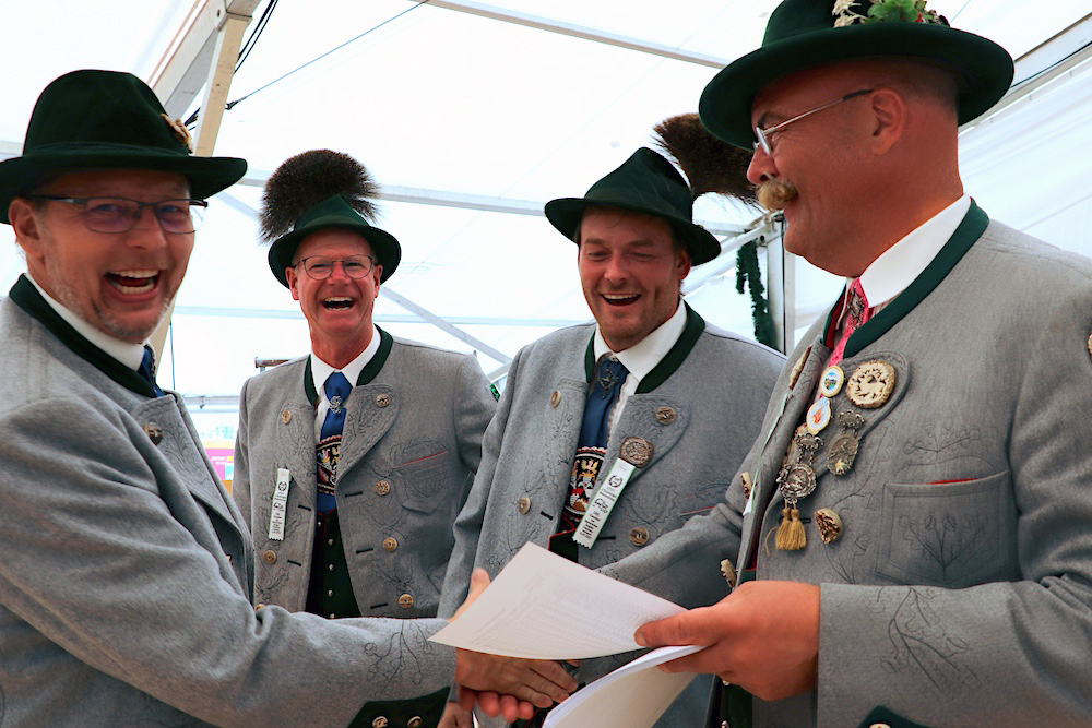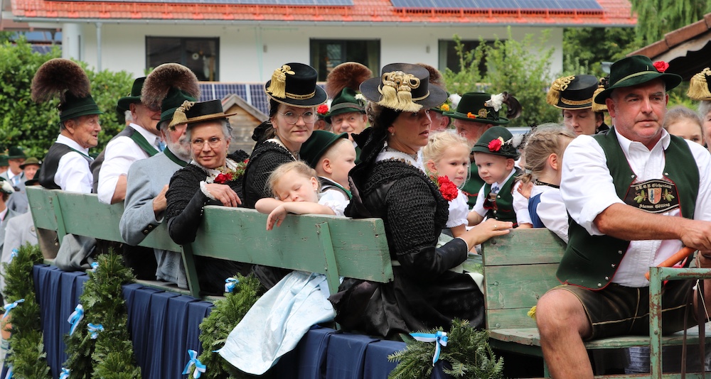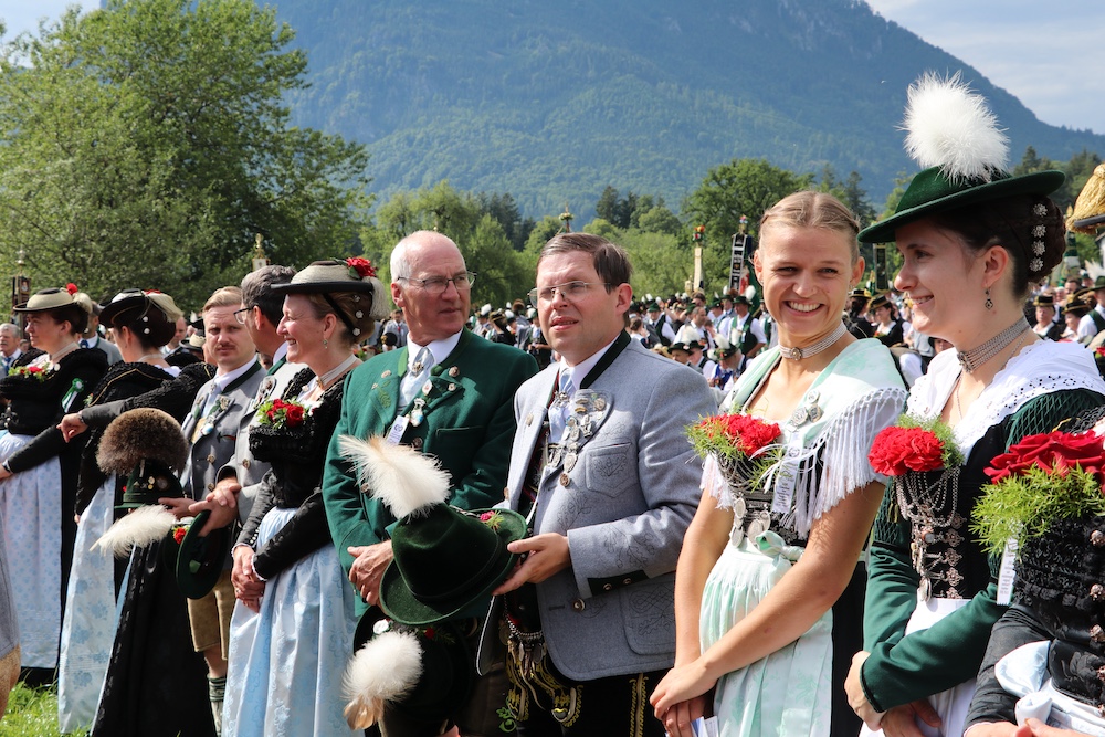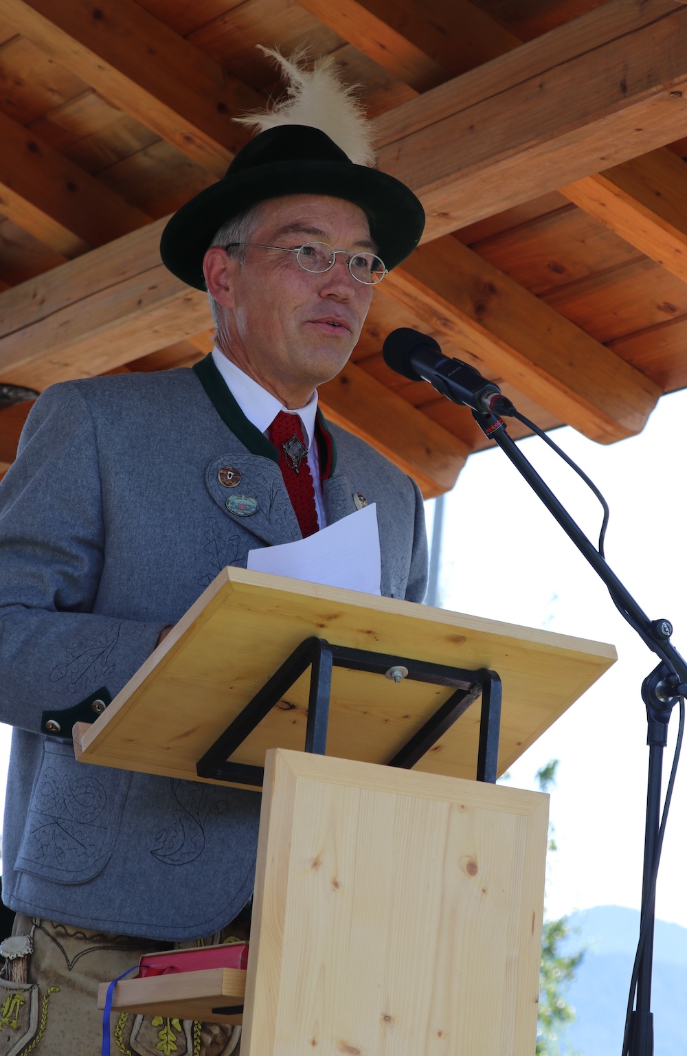 Landrat Otto Lederer begann sein Grußwort mit der freudigen Mitteilung, daß nicht nicht nur das Gaufest heute gefeiert werden kann, sondern auch, dass das Schloß Herrenchiemsee und überhaupt die Königsschlösser nun Weltkulturerbe sind. „Vier Generationen Landräte hat des gebraucht, dass wir das erreicht haben“ sagt er. „Ähnlich ist’s mit dem Erbe, das wir als Trachtler und Trachtlereinnen übernommen haben, mit unserem Brauchtum und unser Tradition. Es ist für uns heute Verpflichtung, dass wir dieses Erbe auch in die Zukunft weitergeben.“ Diese Weitergabe soll auch im Alltag sichtbar werden, und so freut er sich besonders, daß am Montag, 14. Juli der „Tag der Tracht“ in ganz Bayern stattfindet. „An diesem Tag können wir die Vielfalt und die Einzigartigkeit unserer Tracht zeigen. Das Allerwichtigste, was wir dabei den Menschen in Bayern mitgeben können, ist, dass wir die Tracht lebendig halten, dadurch dass wir sie tragen und vor allem dadurch, dass wir hinter den Werten stehen, die unsere Tracht symbolisiert“ schloß er seine Ansprache.