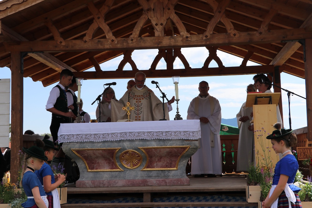Nach dem vom Kirchenchor und der Brannenburger Musikkapelle umrahmten Gottesdienst dankte Bürgermeister Matthias Jokisch in einer kurzen Ansprache allen, die da sind, um Tracht, Brauchtum und Tradition zu feiern und weiterzutragen. Außerdem dankte er allen, die die Verantwortung für die Festtage übernommen haben und allen die mithelfen und mitgeholfen haben - und auch bis zum Abbau dabei sein und tatkräftig anpacken werden.
