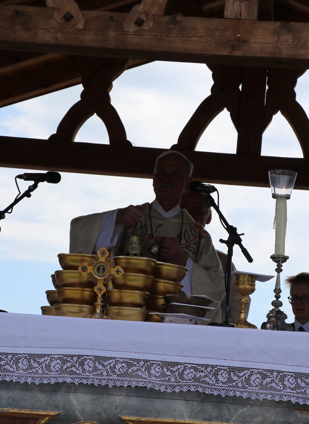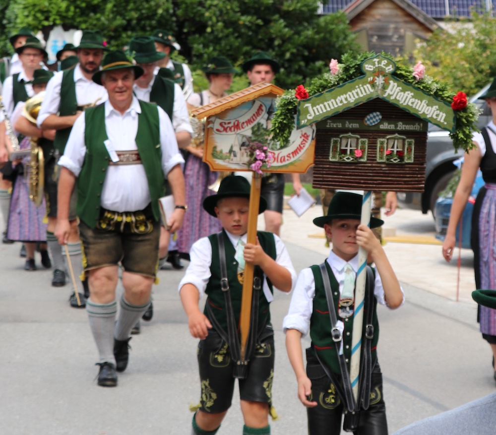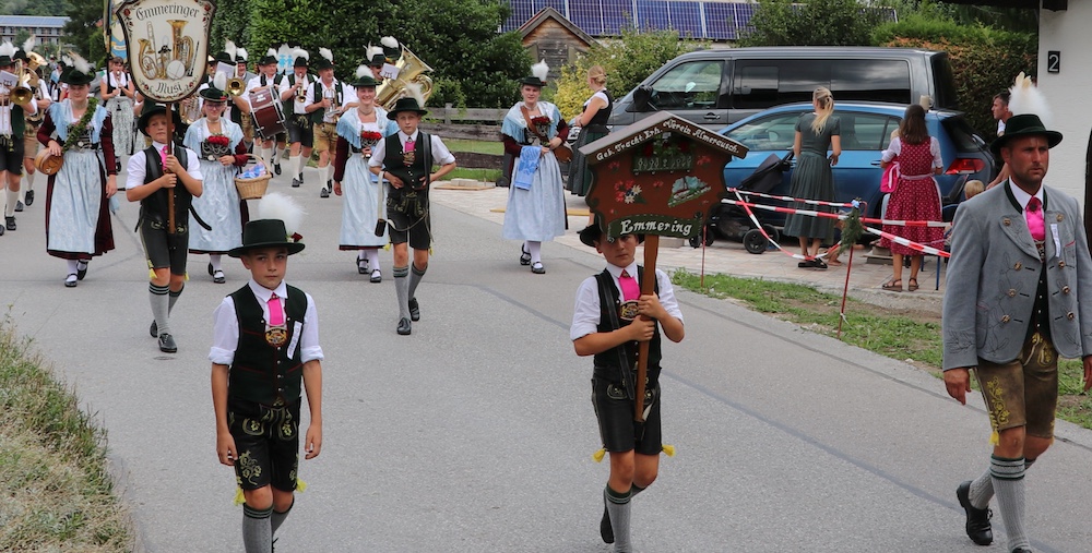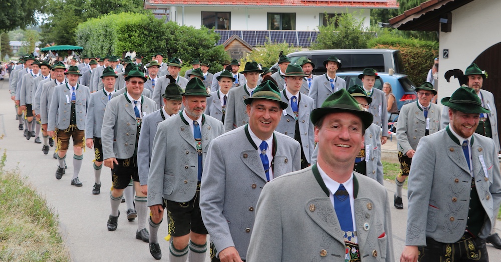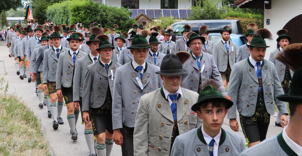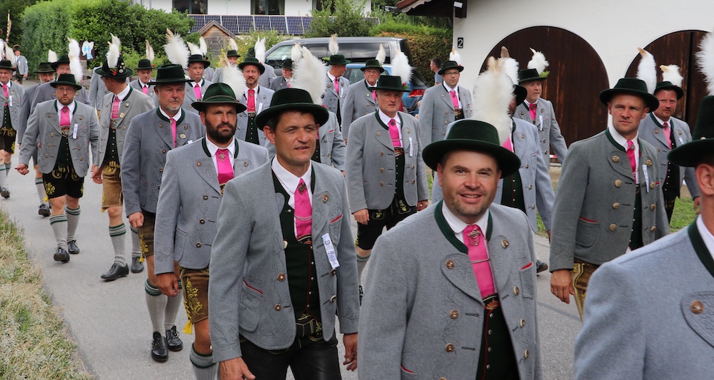 In der folgenden Heiligen Messe startete der Brannenburger Pfarrer Kraus seine Predigt mit dem Phänomen, dass nicht neu ist, aber zunimmt: dass an Unfallorten fotographiert wird, anstatt zu helfen und sogar die Rettungskräfte blockiert werden, nur um ein außergewöhnliches Bild zu haben, das man in den sozialen Medien posten kann. „Haben die Menschen ihre Sensibilität und ihr Mitgefühl verloren?“ fragt er „haben sie noch ein Gespür für die Notleidenden und wie würden sie die Situation beurteilen, wenn sie selber die Verunfallten wären?“ Er betont, daß die Sichtweise, aus der etwas heraus beurteilt wird, von großer Bedeutung ist und schlägt damit den Bogen zum Tagesevangelium vom barmherzigen Samariter: im bekannten Gleichnis von Jesu gehe zwei Gelehrte an einem Notleidenden vorbei, weil das Gesetz es ihnen verbietet, sich durch die Hilfe unrein zu machen. Erst ein Mann aus Samarien hilft dem Verunfallten. „Bevor wir die ersten beiden verurteilen, sollten wir uns fragen: haben wir nicht selbst oft genug Angst, uns unrein zu machen und fallen uns nicht selber oft genug Entschuldigungen ein, warum wir das eigentlich Notwendige nicht tun können?“ Dass im Gleichnis ausgerechnet der in der Gesellschaft aussenstehende Samariter hilft, nimmt Pfarrer Kraus als mahnenden Hinweis an die anwesenden Trachtler: „auch wir stecken gern Grenzen und grenzen damit aus: der „hinter der anderen Seite vom Inn“, der „Preiß“, der „uns nicht Zugehörige“, „derjenige der nicht in unser Denkschema passt“ - und ausgerechnet der schenkt Nähe.“ Jesus fordere, dass nicht falscher Standesdünkel oder sonstige Unzulänglichkeit der menschlichen Nähe und Hilfe im Wege stehen. Zum Schluß seiner Predigt betont er, dass der bayerische Satz „I mog Di“ als Maxime gelten kann: „vollständig heißt der Satz „I mog di leiden“ - ich zeige Mitglied mit dir: wir brauchen keine Gaffer, wir brauchen takträftige Helfer, die zu den Leuten sagen: „i mog di“".