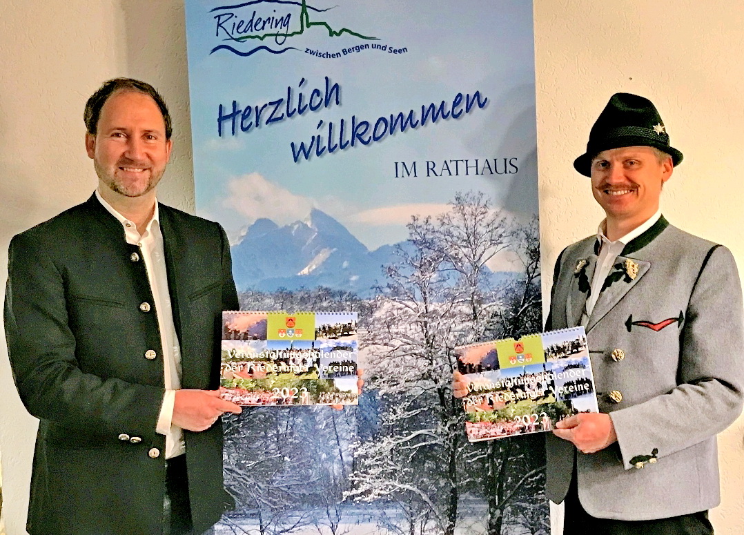 Erstmals gibt es für die gesamte Gemeinde Riedering einen Jahreskalender, in dem alle bislang bekanntenn Termine, Versammlungen und Veranstaltungen der Gemeinde und der Ortsvereine gibt. Das erste Exemplar übergab als Initiator Trachtenvorstand Florian Niedermaier an Ersten Bürgermeister Christoph Vodermaier mit den Worten: „Der Grundgedanke war, dass wir Termin-Überschneidungen innerhalb der eigenen Gemeinde vermeiden wollen und dass wir zwischen den verschiedenen Gemeindeteilen noch besser informiert sind. Nach diesem Pilot-Projekt soll der Kalender weiter verfeinert und in Zukunft in jedem Jahr erscheinen. Interessant ist auch, dass über einen QR-Code der Kalender auf dem Handy abrufbar ist und dabei die Aktualisierungen zu erfahren sind“. Den Kalender gibt es gegen freiwillige Spenden, der Erlös aus dem Verkauf kommt dem Solzialwerk Simssee zugute. Erhältlich ist der Kalender in Riedering bei der Volksbank-Raiffeisenbank, im Rathaus, im Papierladen, beim Alten Wirt, bei der Bäckerei Gmeiner, bei Irmis Hoamat, bei der Metzgerei Gassner, beim Gasthaus Hilger in Hirnsberg, beim Gasthaus Hirzinger in Söllhuben und beim Seewirt in Ecking.