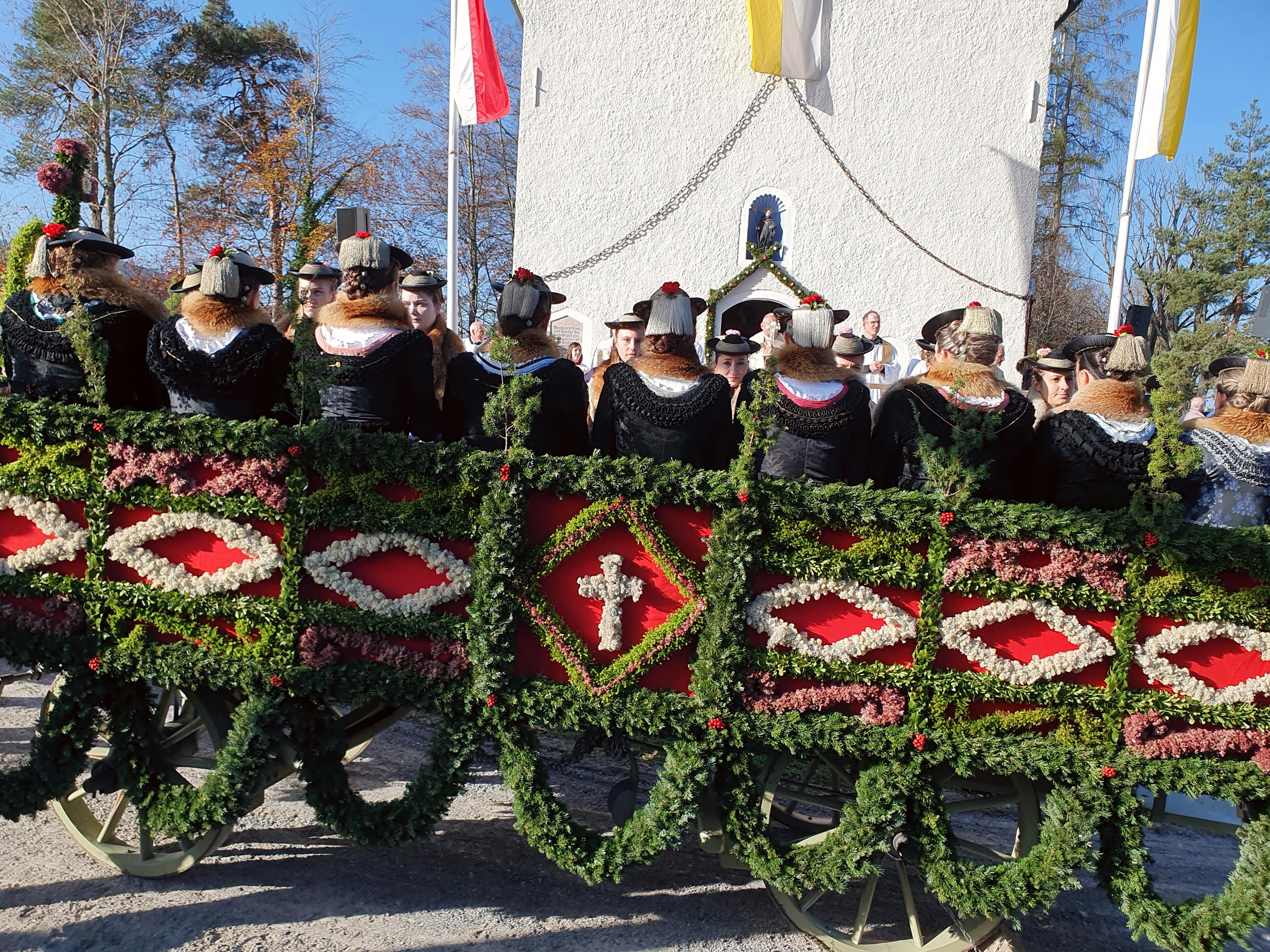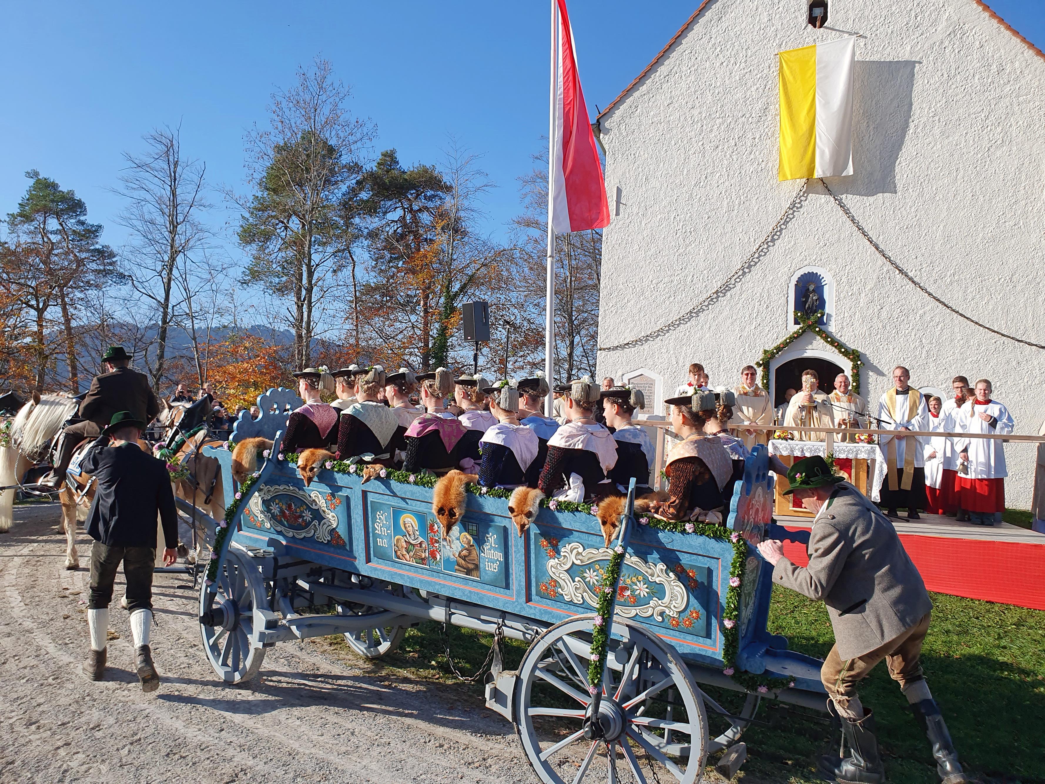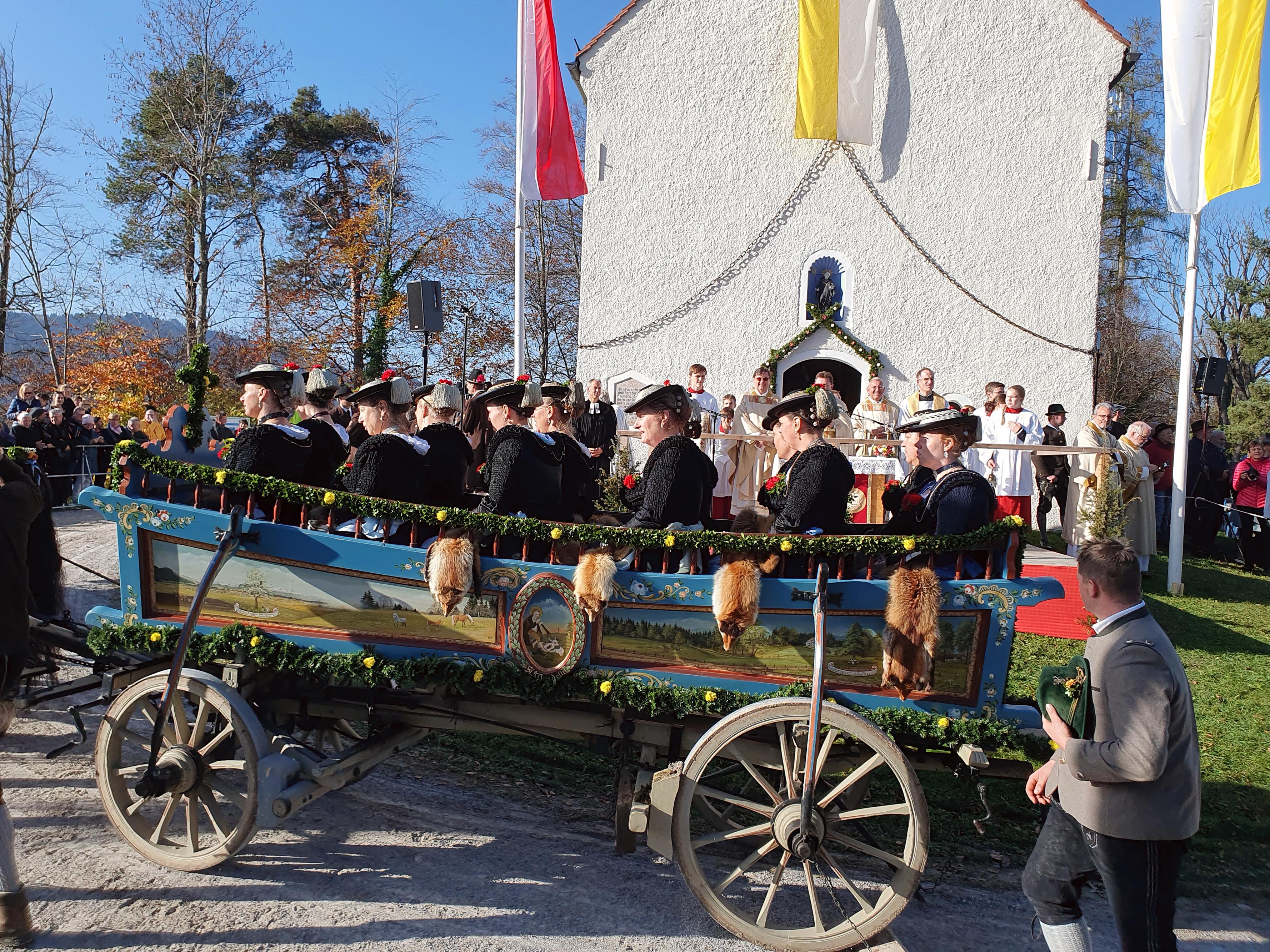 6. November 2024 - ein herrlicher „Leahards“-Tag in Bad Tölz bei Sonnenschein und gut gelaunten Wallfahrern zum Heiligen Leonhard. 72 Wägen mit Vierspännern und Vorreitern sowie die Fußwallfahrer zogen hinauf auf den Tölzer Kalvarienberg und feierten mit Pfarrer Peter Demmelmair die Wallfahrtsmesse, begleitet von der Tölzer Stadtkapelle.