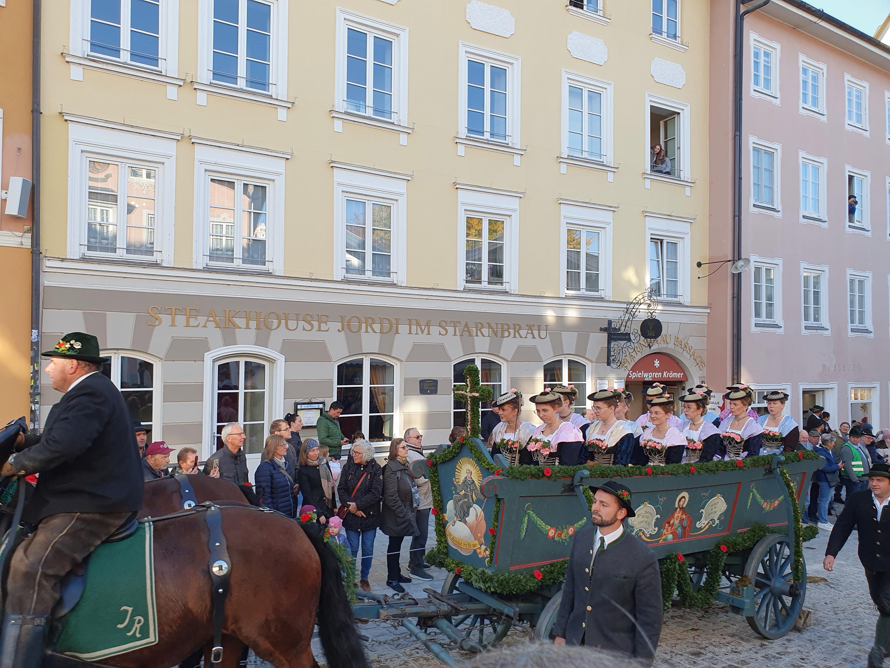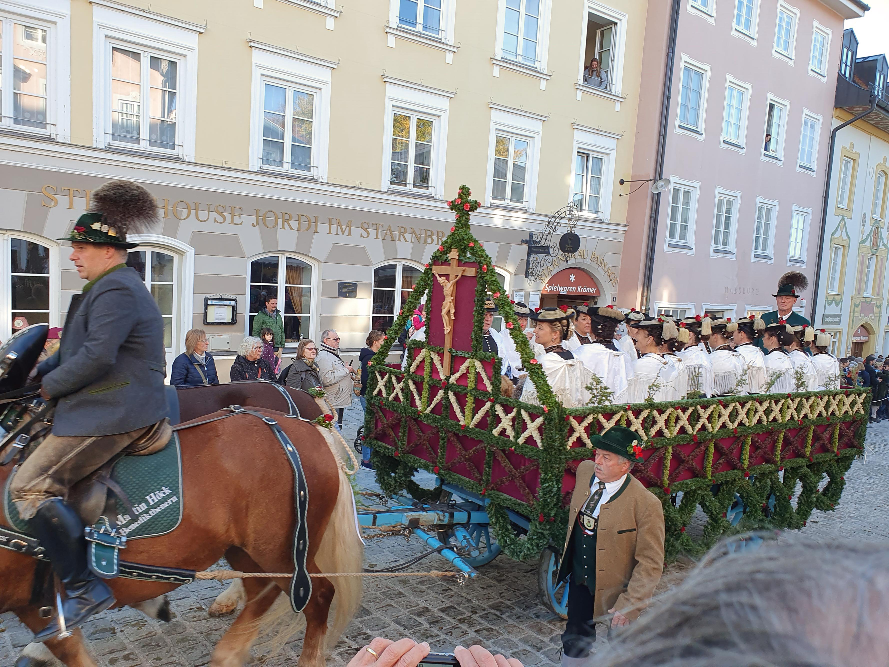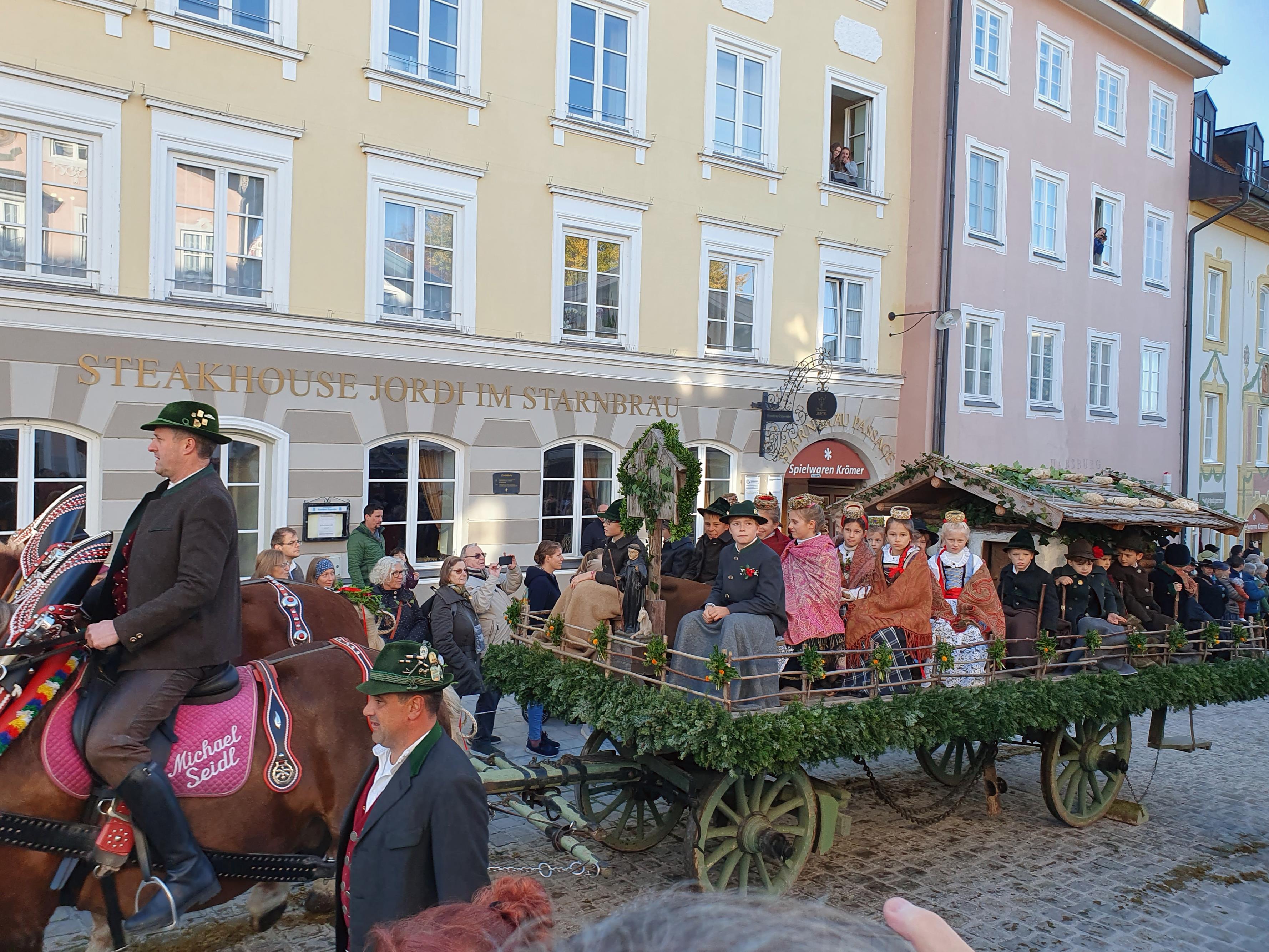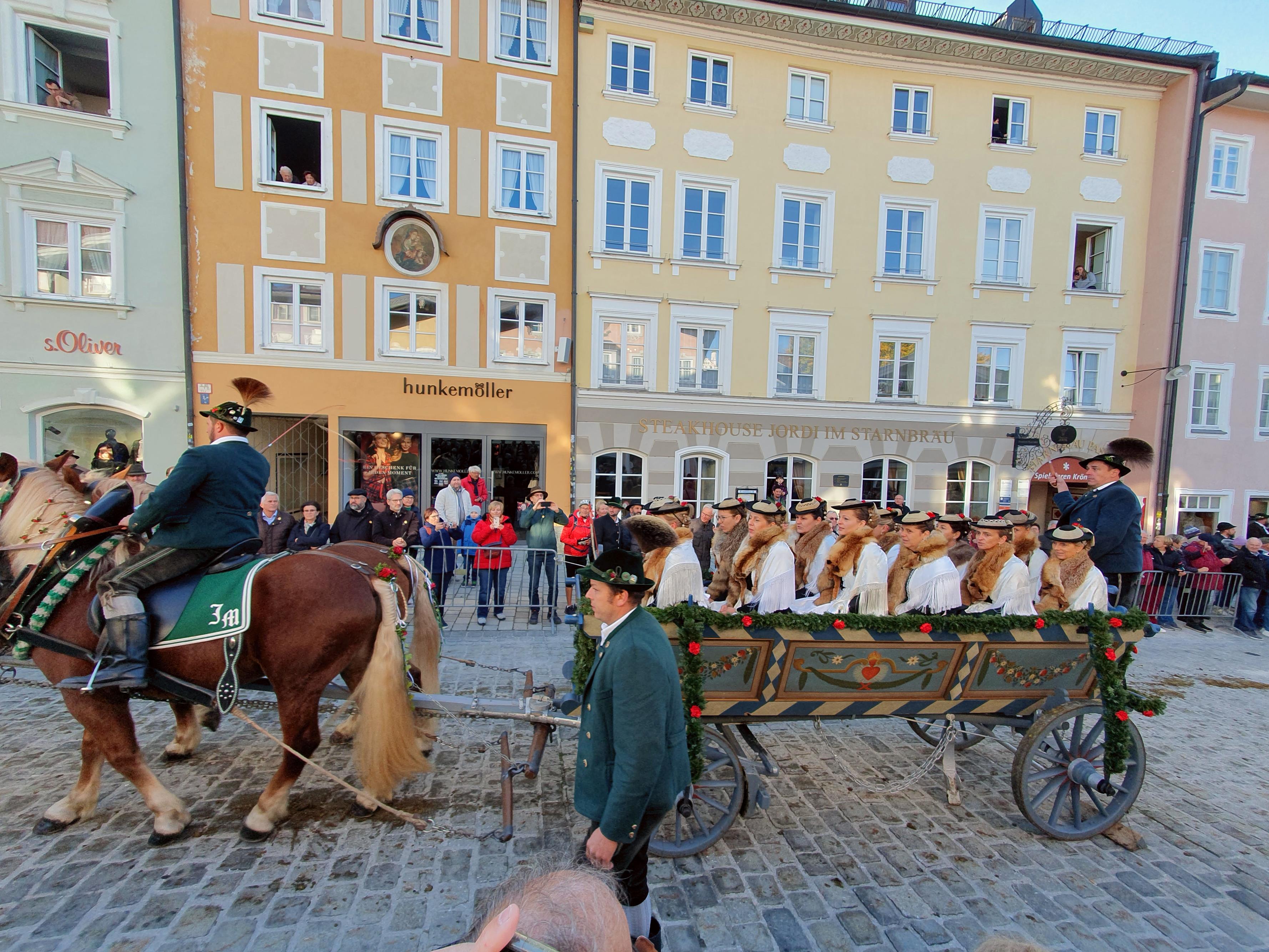 6. November 2024 - ein herrlicher „Leahards“-Tag in Bad Tölz bei Sonnenschein und gut gelaunten Wallfahrern zum Heiligen Leonhard. 72 Wägen mit Vierspännern und Vorreitern sowie die Fußwallfahrer zogen hinauf auf den Tölzer Kalvarienberg und feierten mit Pfarrer Peter Demmelmair die Wallfahrtsmesse, begleitet von der Tölzer Stadtkapelle.