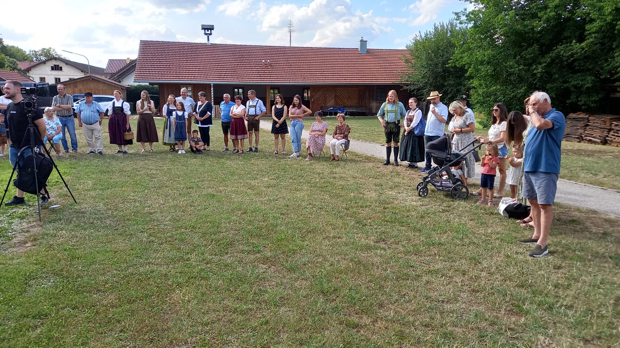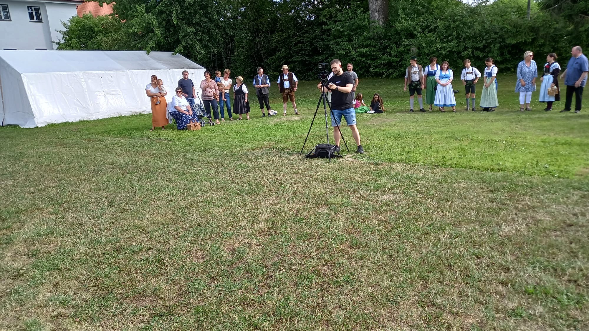 So wurde kurzerhand für den 6. Juli nach Statisten gesucht und es kamen viele nach Holzhausen zum Filmdreh. Mit dabei waren "Zuschauer" mit und ohne Tracht, mit Kinderwagen und mehr -- eben ein typischer Zuschauersaum, wie man ihn beim Festzug kennt.