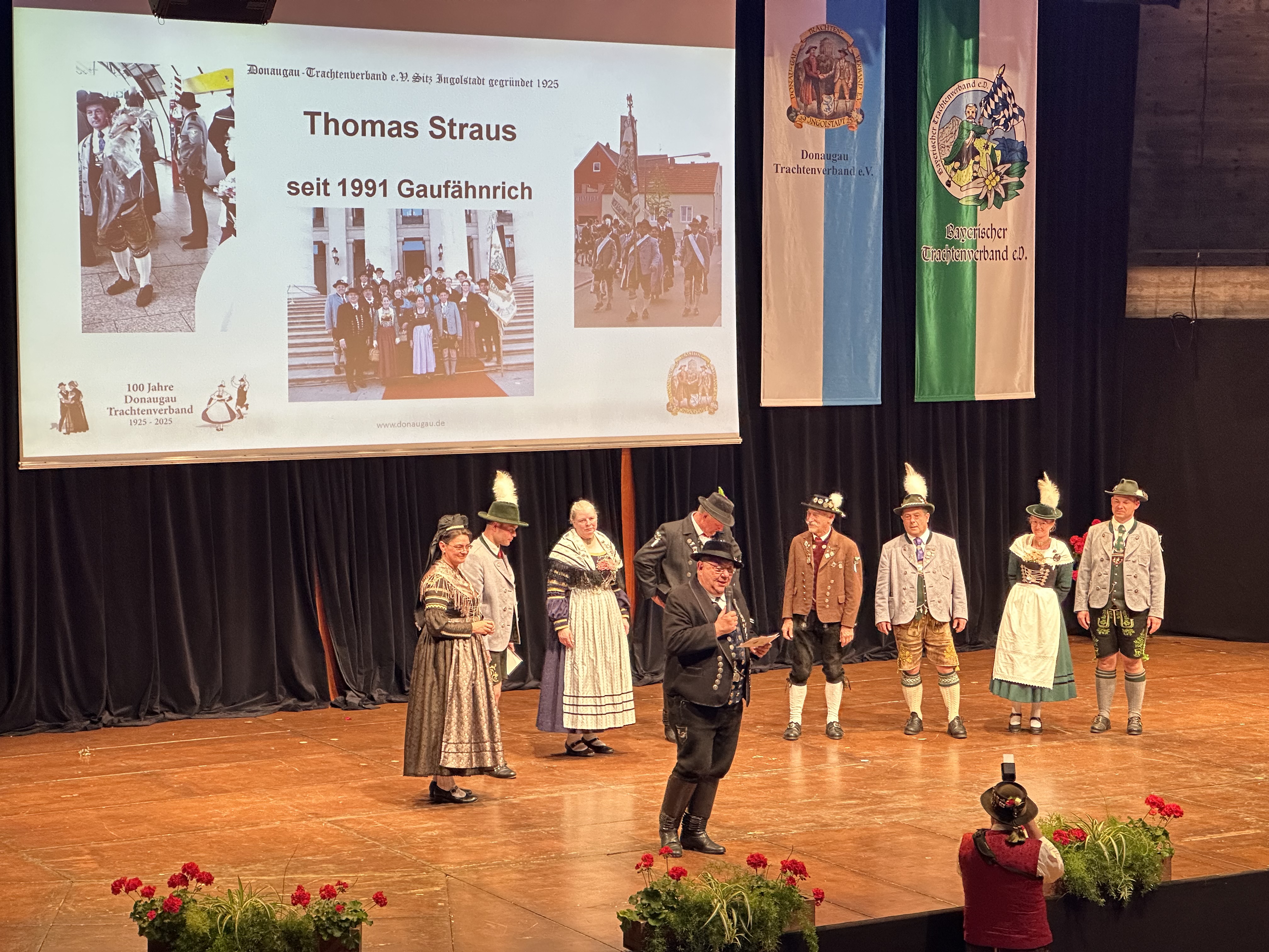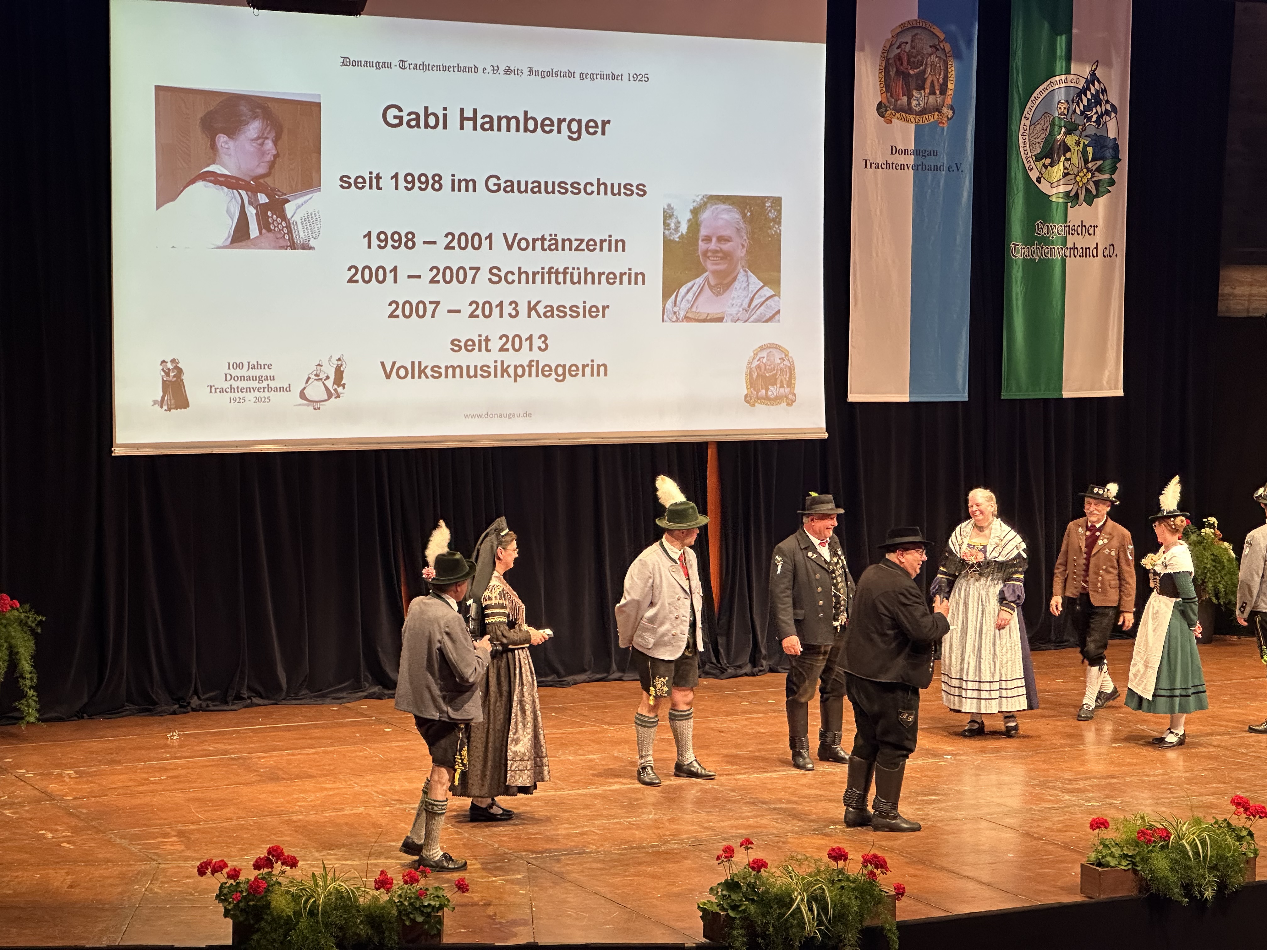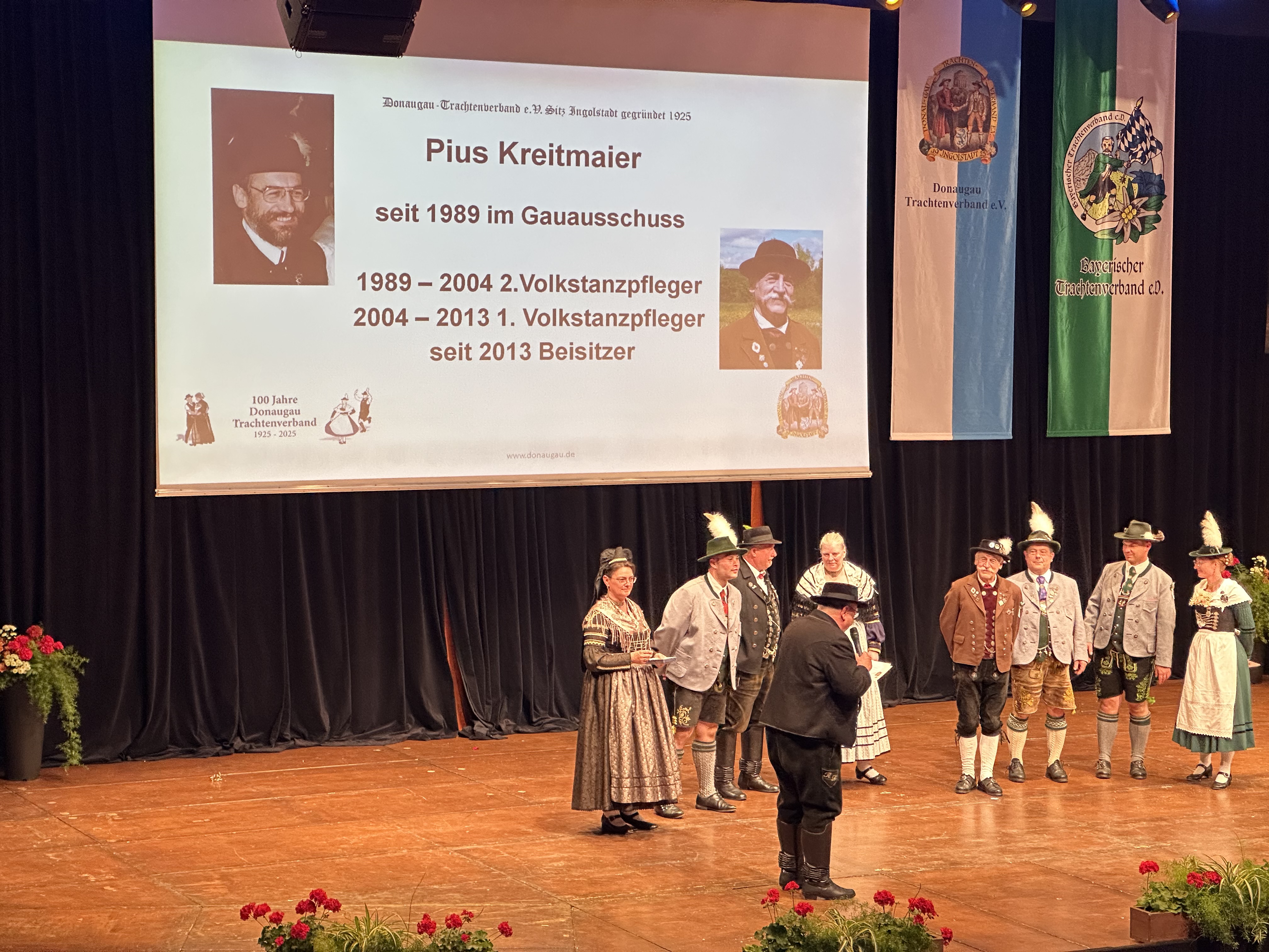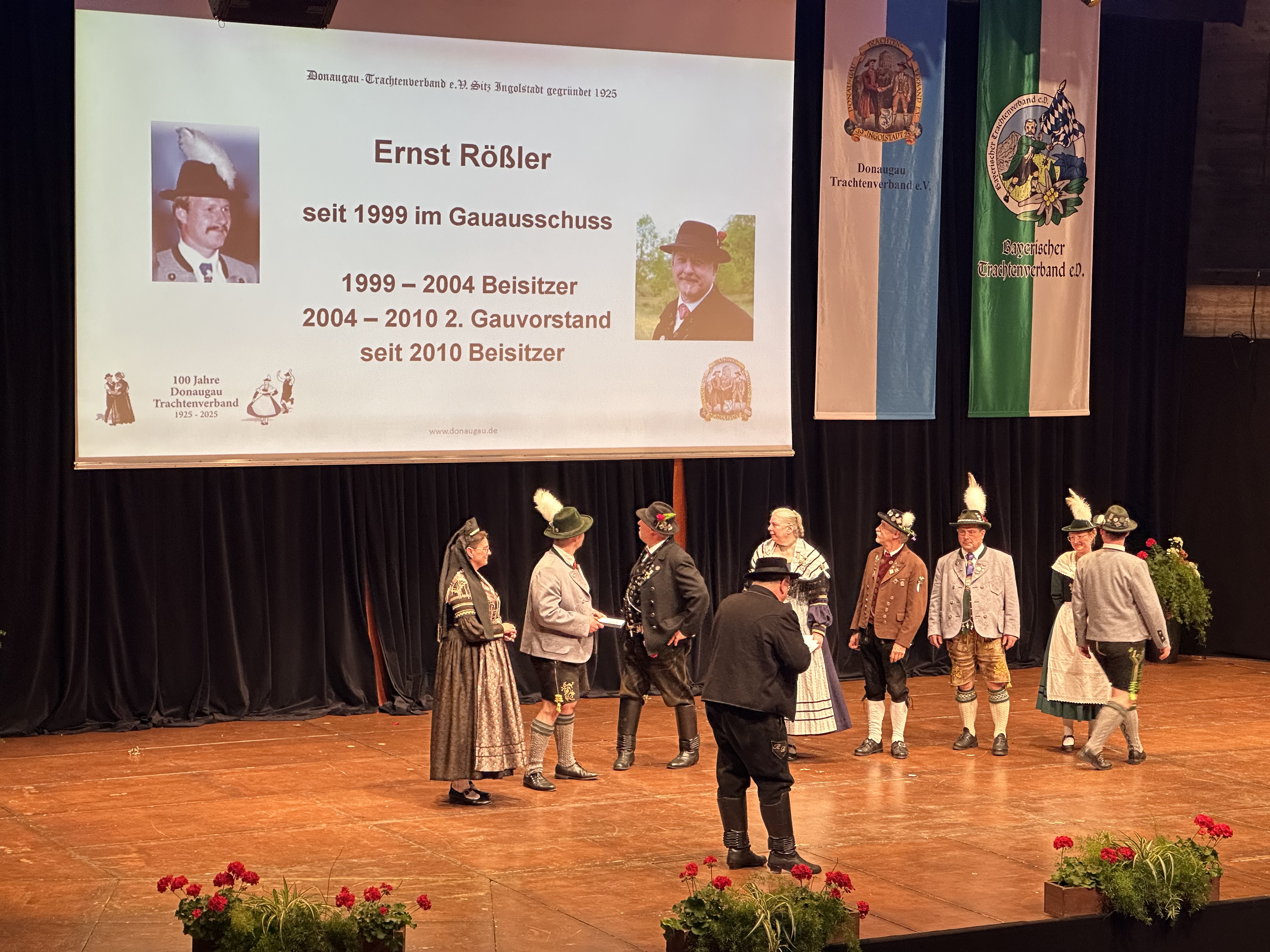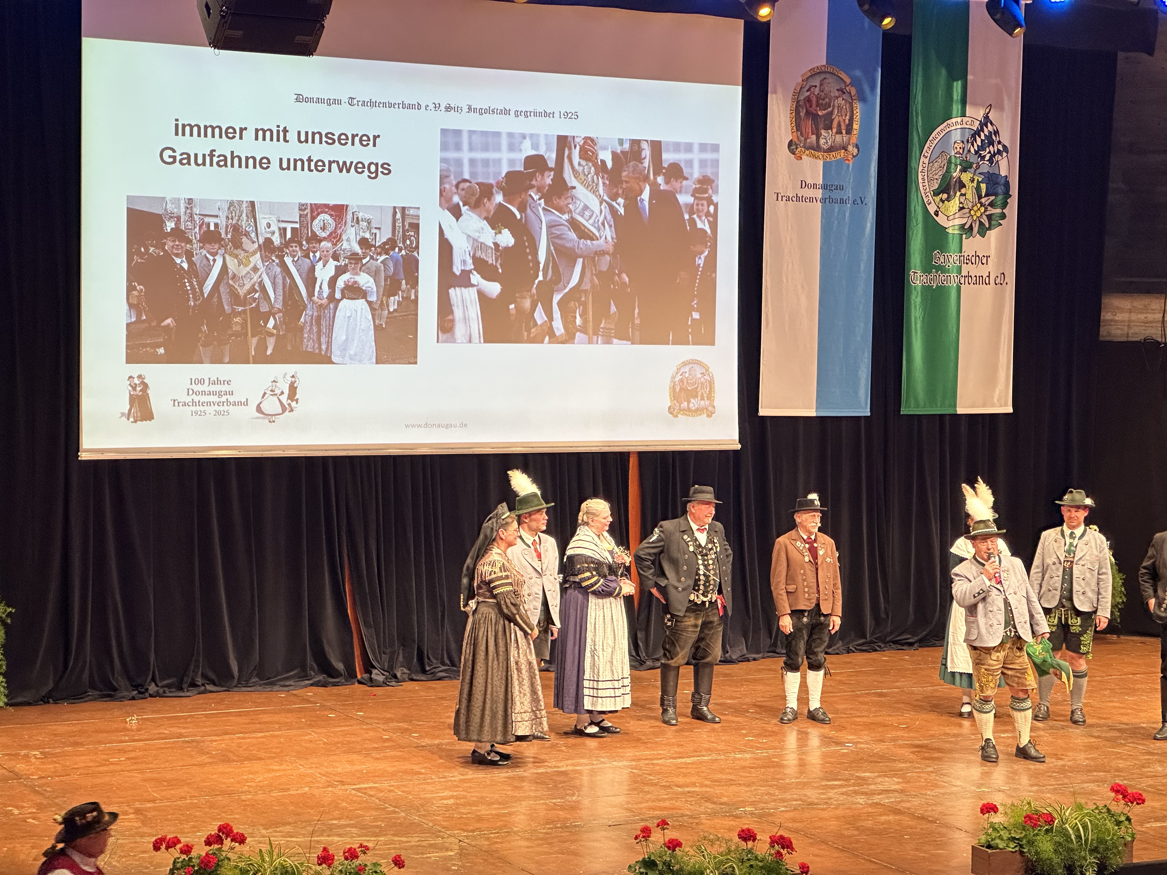 Der Jubiläumsabend zum 100-jährigen Bestehen des Donaugaus war der würdige Rahmen für die Ernennung verdienter Trachtlerinnen und Trachtler zu Ehrenmitgliedern: