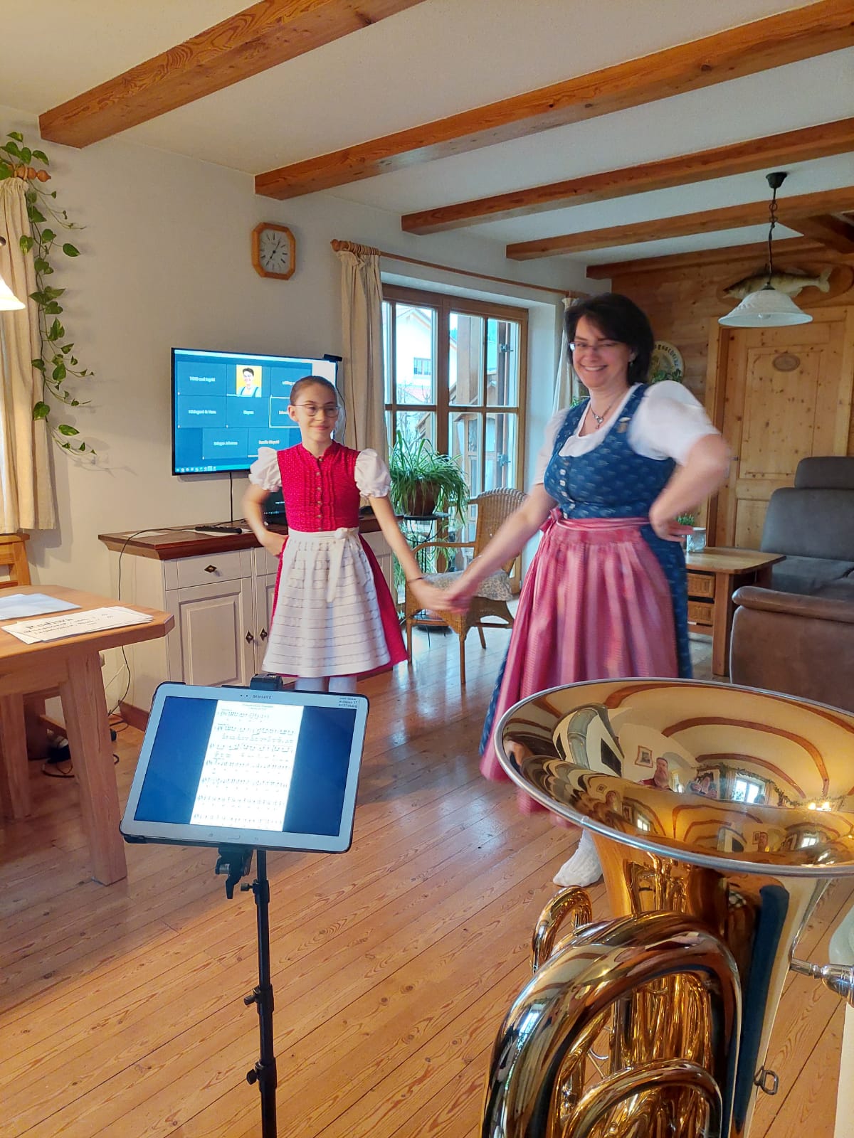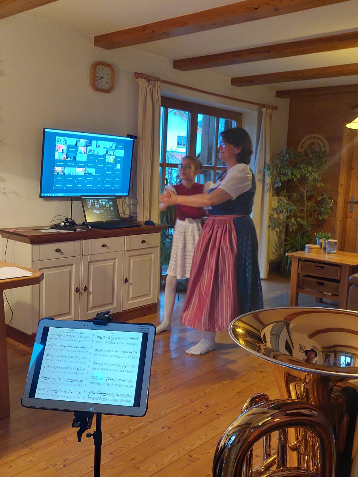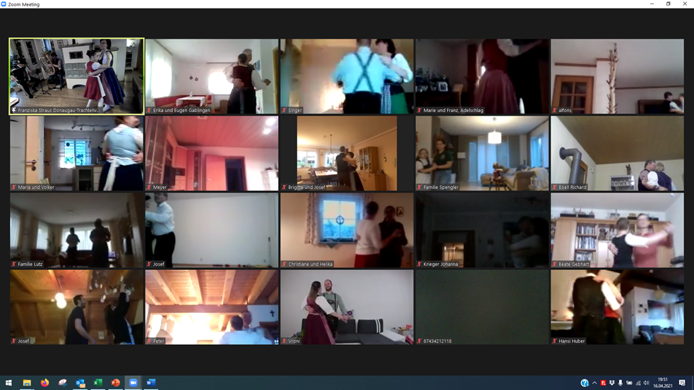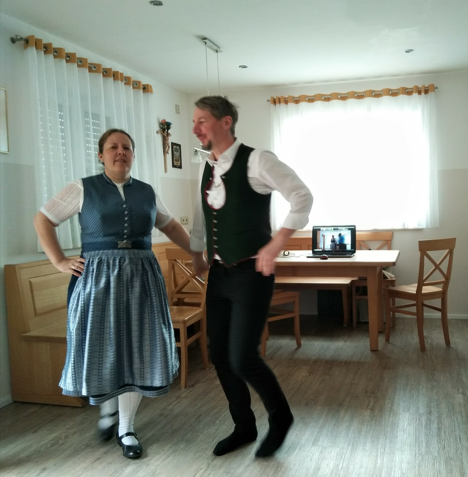 Unter dem Motto „Zwoaraloa tanzen“ wagten es die Volkstänzer aus Nah und Fern an das Erlernen oder Auffrischen von Zwiefachen und Volkstänze mit Taktwechsel. Zu den Klängen von Josef und Alexander und unter Anleitung von mir, schwangen die 130 Teilnehmer ihr Tanzbein im heimischen Wohnzimmer. Vom Trachtlerkind bis zum Seniorvolkstänzer, alle tanzten fleißig und hatten Spaß.