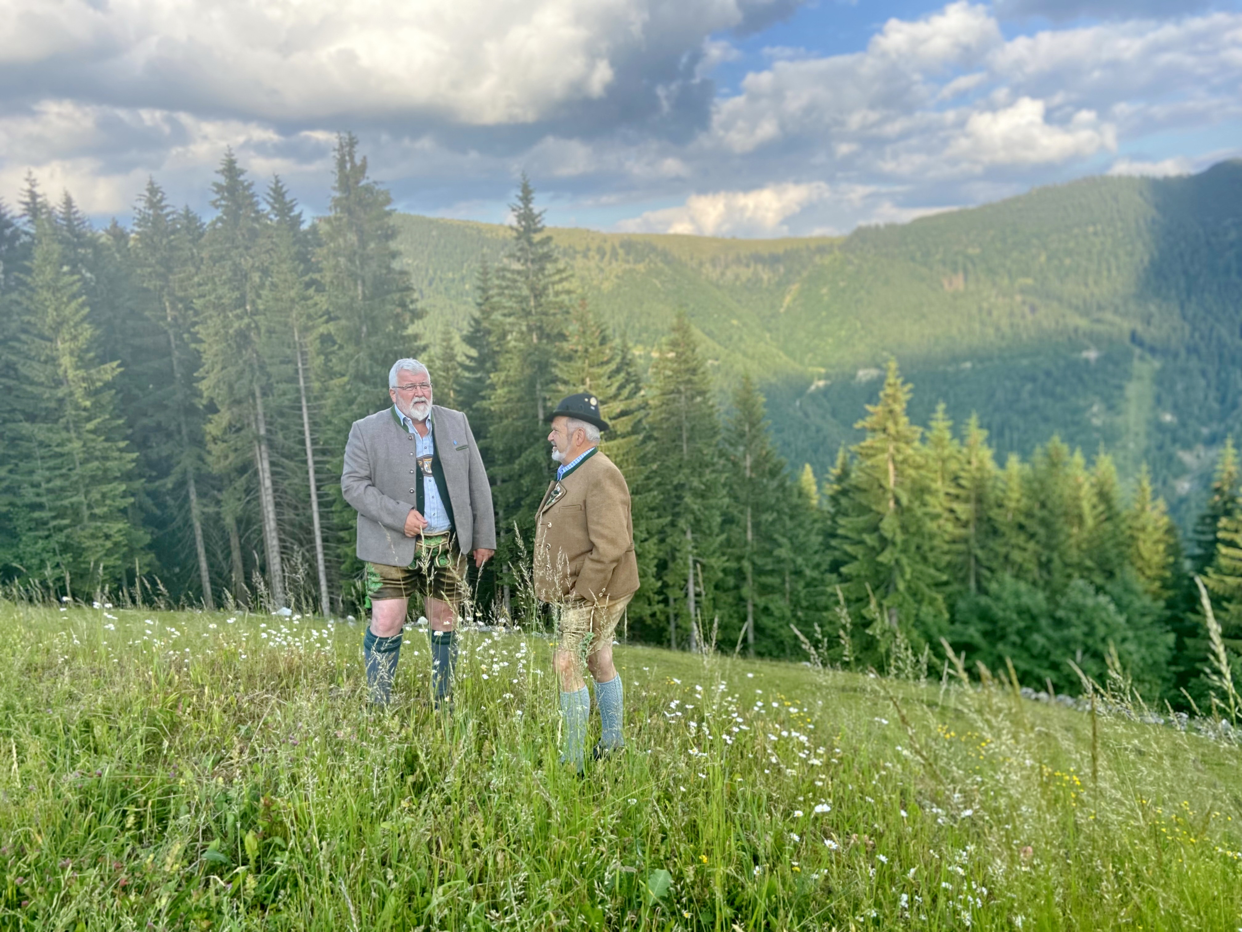 Es ist schon eine jahrelange Gepflogenheit, dass sich Vertreter des Bayerischen Trachtenverbandes und des Bayernbundes zu einem sommerlichen Gedankenaustausch auf der Feichteckalm am Samerberg treffen. Ziel ist es dabei, aktuelle und kommende Termine abzustimmen sowie sich zu einigen Themen auszutauschen.