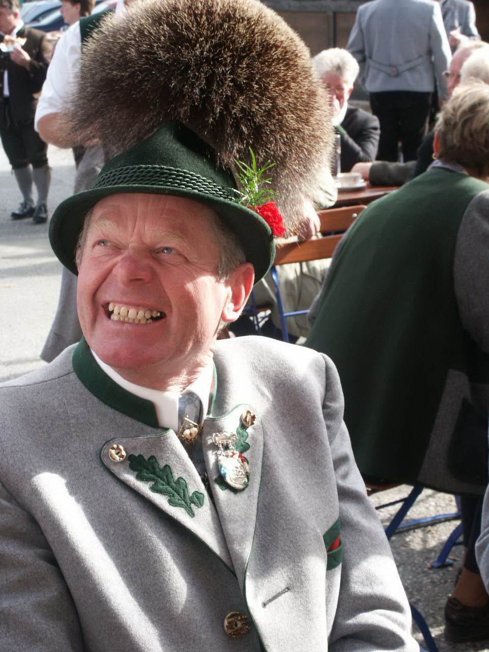 „Mit der Lederhose auf die Welt gekommen bin ich nicht“, so beginnt Peter Eicher bei unserem Gespräch in seinem Haus auf dem Jochberg und er fährt fort: „Als ich erstmals mit unseren Urlaubsgästen im Alter von gut 16 Jahren zu einem Almtanz des Weißbacher Trachtenvereins im dortigen Alpenhotel kam, da war ich vom Schuhplatteln fasziniert. Mit Weißbachs Vorplattler Hans Holzner ging es schon bald mit den Proben los, so dass ich zwischen Weihnachten und Neujahr bei einem Gäste-Abend erstmals auftreten sollte, doch Zahnschmerzen und ein geschwollenes Gesicht verhinderten dies“. Der erste öffentliche Auftritt mit der Tracht war damit 1962 beim Maibaumaufstellen in Weißbach, dabei durfte er mit seinem Vorplattler als einer der beiden Vorreiter dabei sein.
