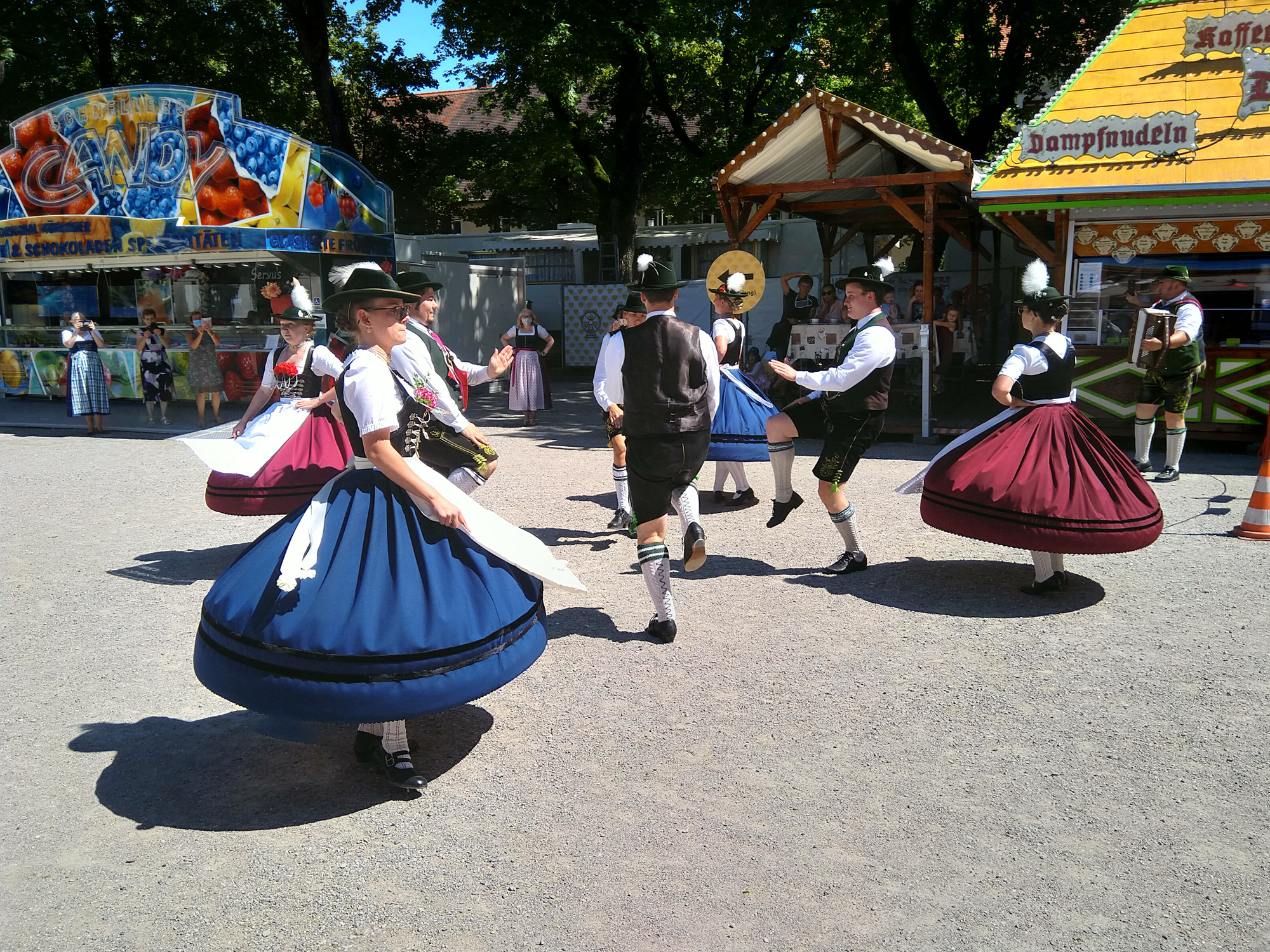 Kurzfristig übernahm der Isargau für den Trachtenverein Unterwössen den Auftritt am 16.08.20 am Maria-Hilf-Platz. Mit 4 Paaren wurden im Bereich der Schausteller mehrere Volkstänze und Schuhplattler dargeboten.